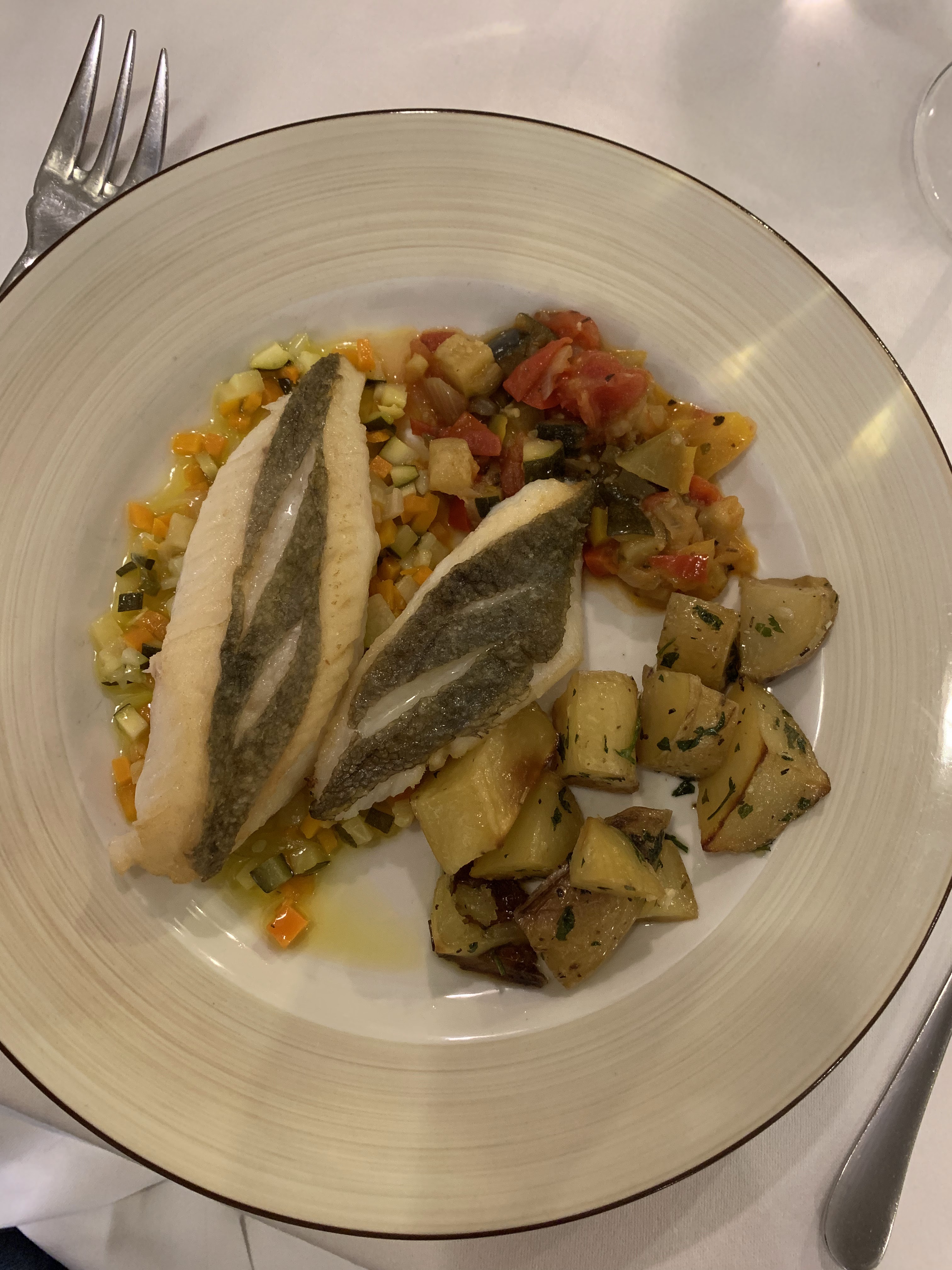 Bon dîner de poisson à un prix très intéressant. Le vin est également bon bien que plus cher