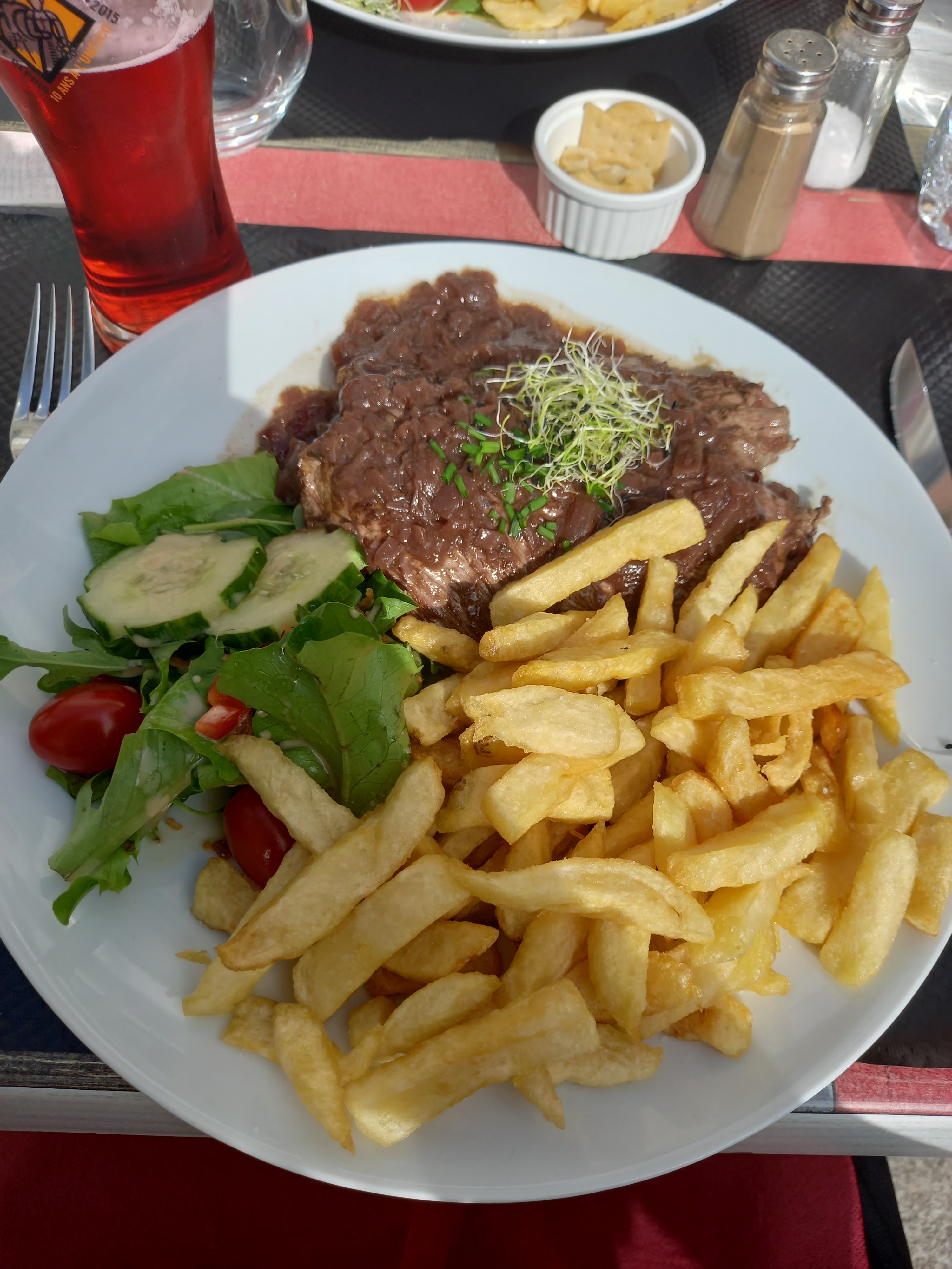 Un peu déçue car trop de rupture, plus de menthe pour un virgin mojito, pas de bière sans alcool, vous commander vos plats, une personne de ma famille voulait un tartare de boeuf frais qui était noté sur la carte et le serveur nous annonce qu'il n'en ont plus. Heureusement qu'il y avait le sympathique serveur avec la croix dans le cou (tatouage) sinon nous serions partis. Et je rajoute aussi que les frites étaient trop sèches et dures. C'est dommage, ce n'est plus pareil qu'avant, nous étions déjà venues 2x dans ce restaurant il y a 7-8 ans quand c'était les anciens propriétaires et nous n'avons jamais eu ce genre de problème.