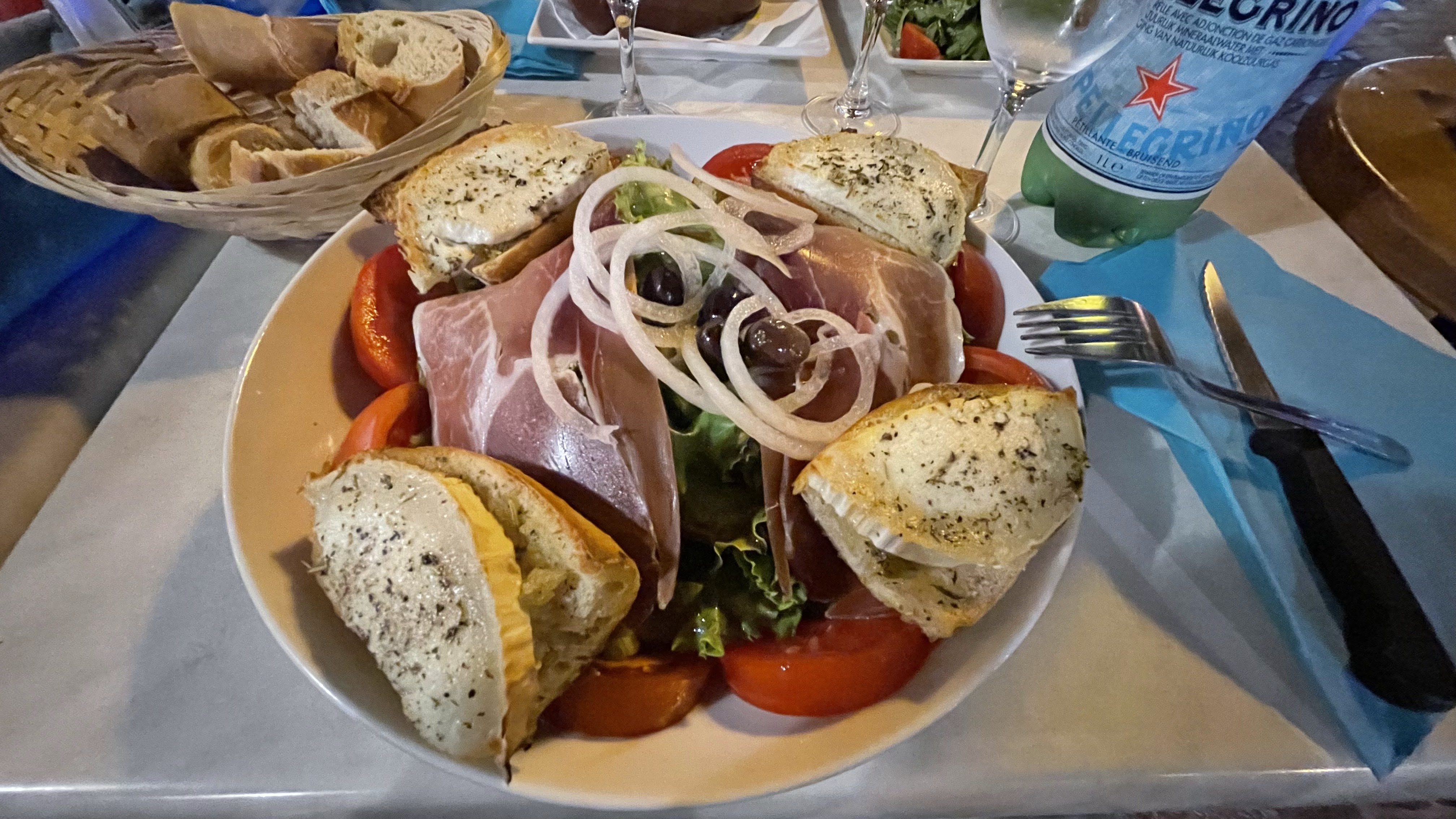 Beau restaurant servant un mélange de plats italiens et français, service très personnalisé de la charmante propriétaire/serveuse. Produits de haute qualité et nourriture d'un bon rapport qualité prix. Nous avons tout aimé. Ma femme avait une pizza Margarita, j'avais la pizza Super Reine aux champignons, jambon et roquette. Très bon vin rouge bio. J'y suis retourné le lendemain, un vendredi soir chargé partout. Elle m'a fait de la place pour nettoyer une table et m'a fait asseoir avec une carafe ou du rouge et l'attente ne me dérangeait pas car je suis arrivé à 20 heures. 30 heures, l'heure la plus chargée. Je le recommande vivement, veuillez visiter, vous ne serez pas déçu. Apparemment, d'après la serveuse, je suis aussi l'enfant amoureux d'un boatie anglais qui vit dans le port car je lui ressemble 😅, je ne sais pas comment le dire à mon vrai père😇
