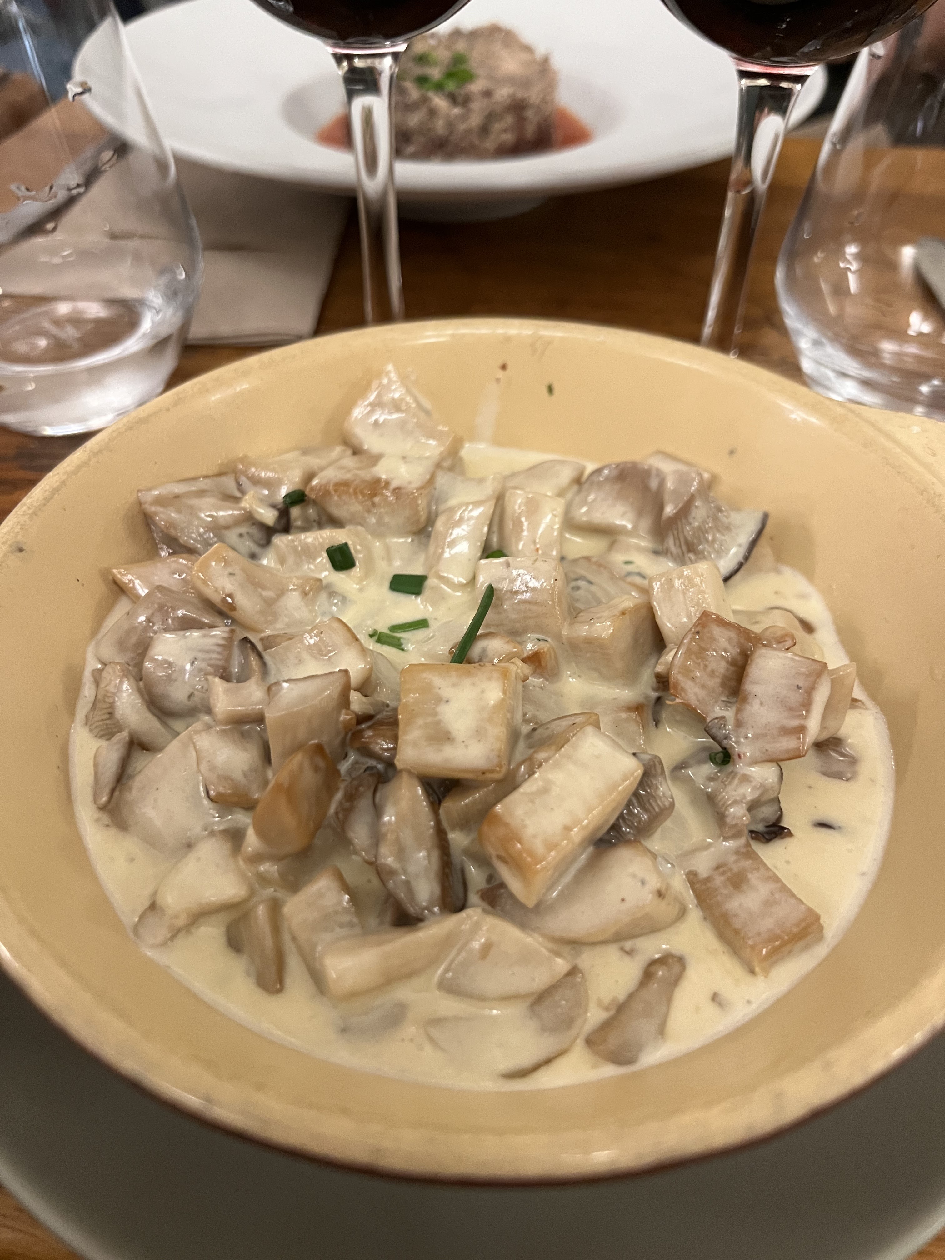 Une expérience incroyable : un restaurant dans son jus, qui se transmet au sein d’une famille depuis 5 générations. Et ça se sent ! Spécialisé dans le champignon apparemment Un restaurant avec des produits de grande qualité et un accueil et un service irréprochables. Tout était à tomber par terre : l’os à moelle, l’agneau, le canard, les desserts.. La qualité est dans l’assiette, vraiment.