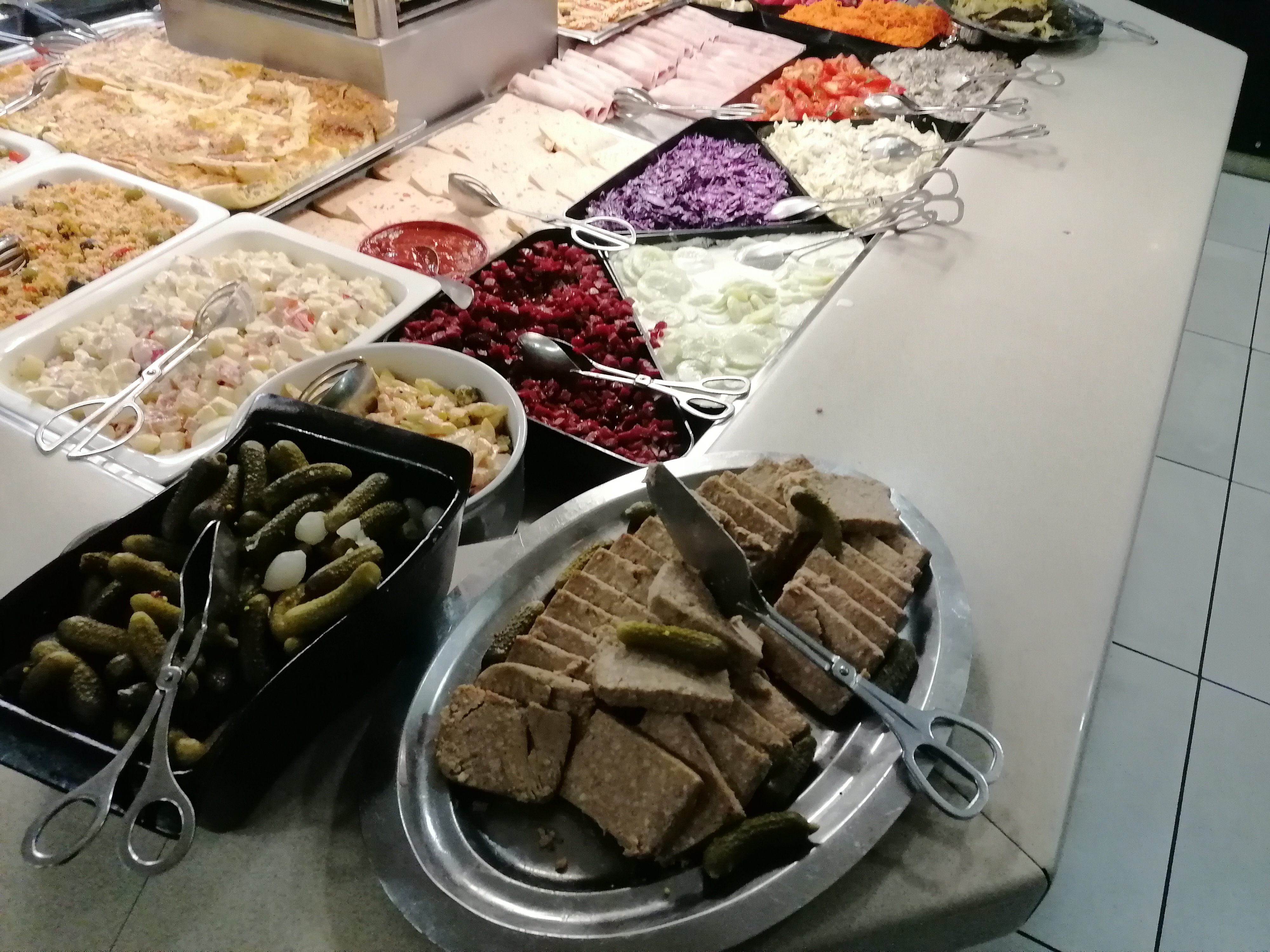 Un immense choix d'entrée et de dessert a volonté ! choisir un buffet a volonté ou plat du jour pour seulement 2€ a peu prêt de plus ! Excellent plats frais et tendre ! Les dessert tout se qui etais chocolat cetais vraiment bof un goût bizarre de chocolat en poudre au lieu d'une tablette ou alors une fabrication d'un autre pays car vraiment pas le goût de chez nous ! Pour le reste serveuse très dynamique , souriante et serviable même si on en voyez casiment qu'une seule ! Beaucoup de monde ! Possibilité douche !
