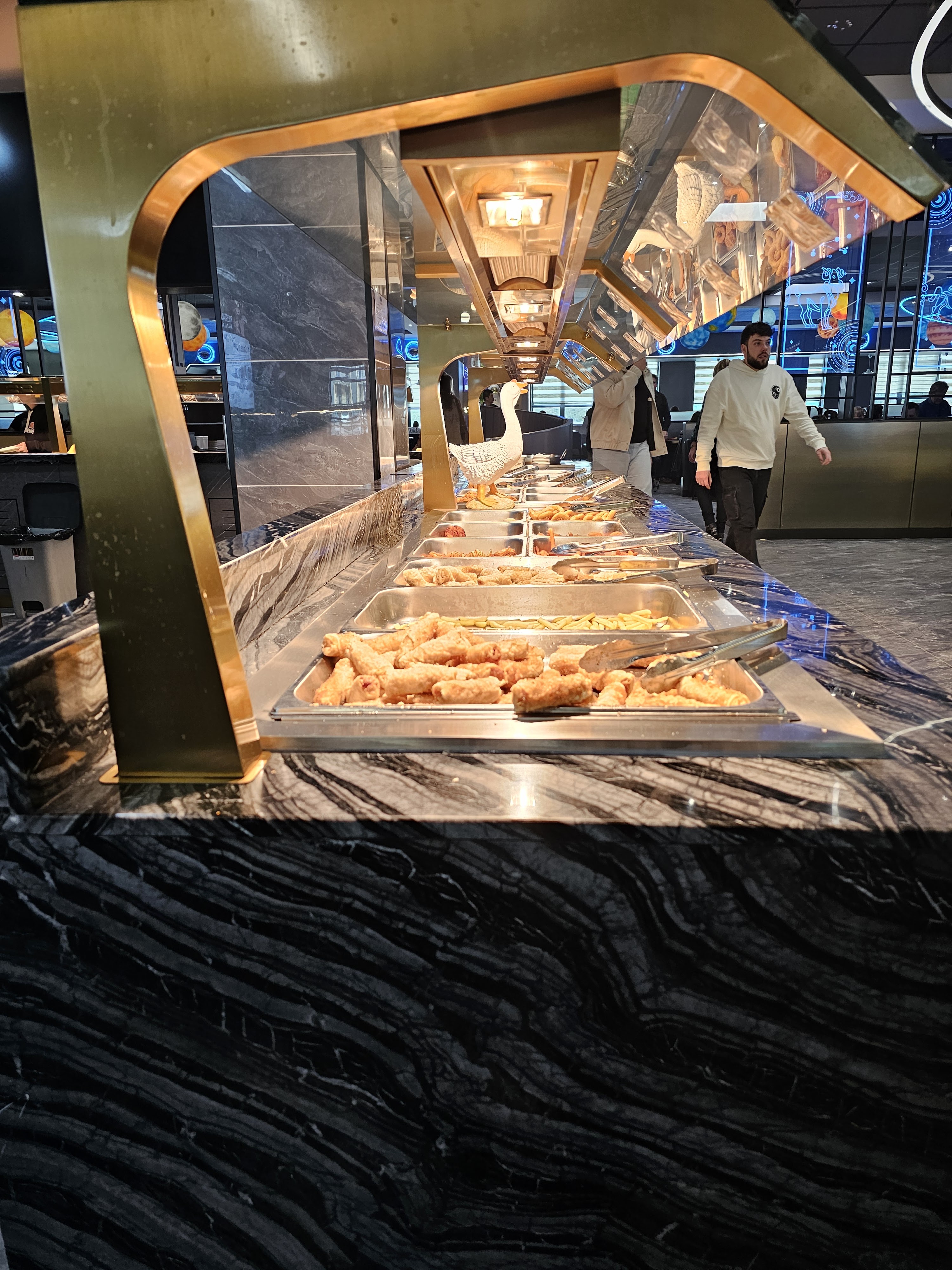 Un mot :Décevant! honnêtement c'est comme tout les autres restaurants du même genre. Le buffet et les desserts reste la même chose qu'ailleurs, mise à part la grandeur et la décoration du restaurant. Les sushi et saumon cru ne sont pas frais. Gare au intoxication alimentaire. Éviter ce qui est cru.