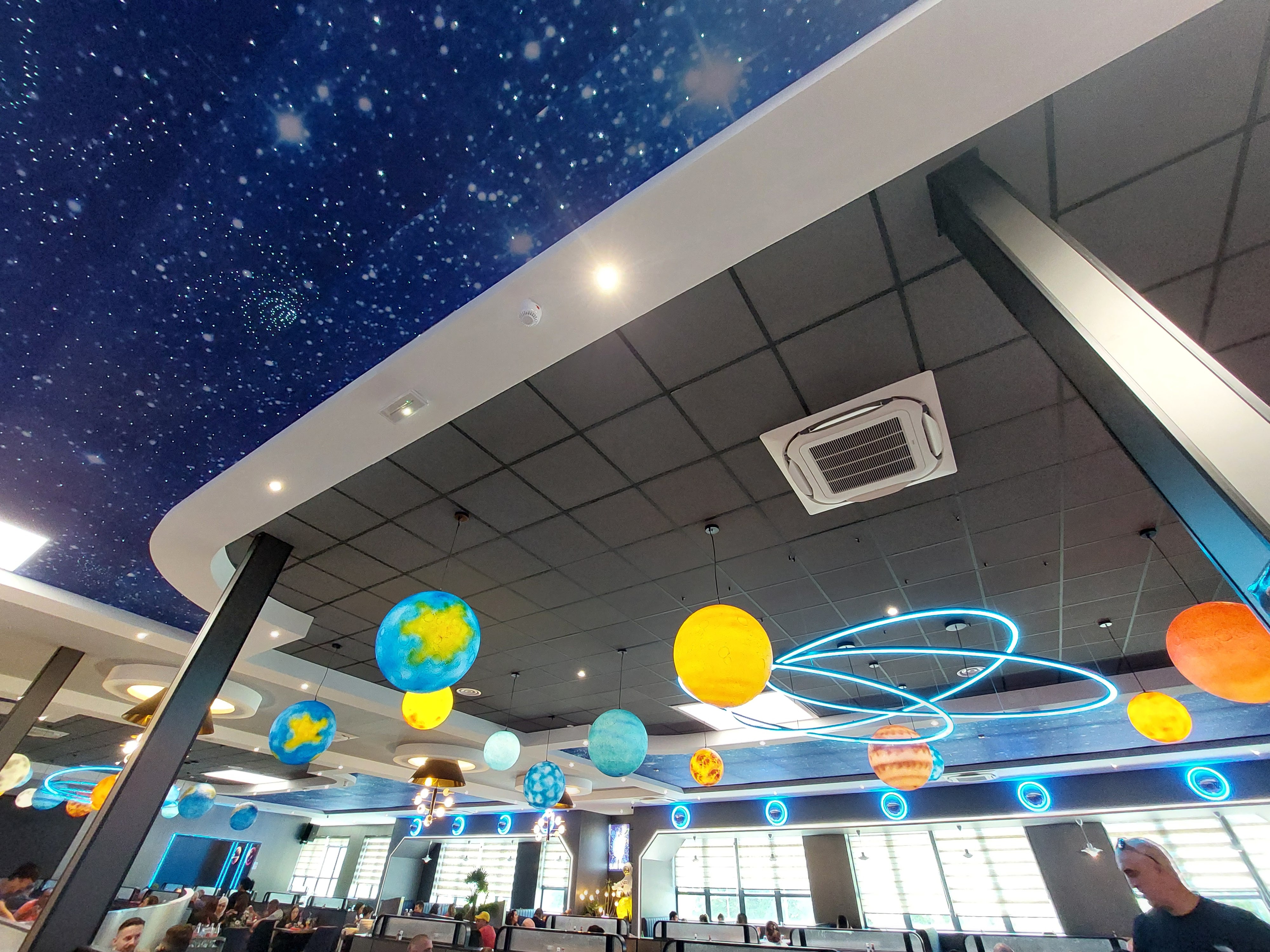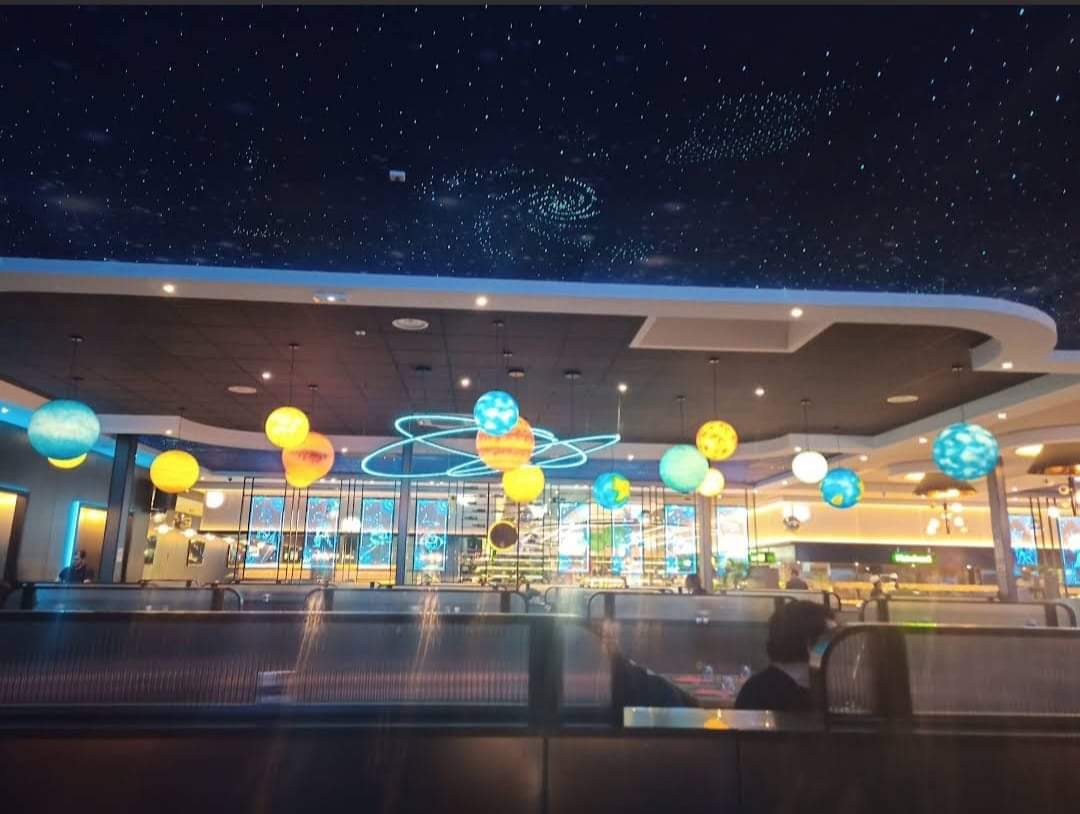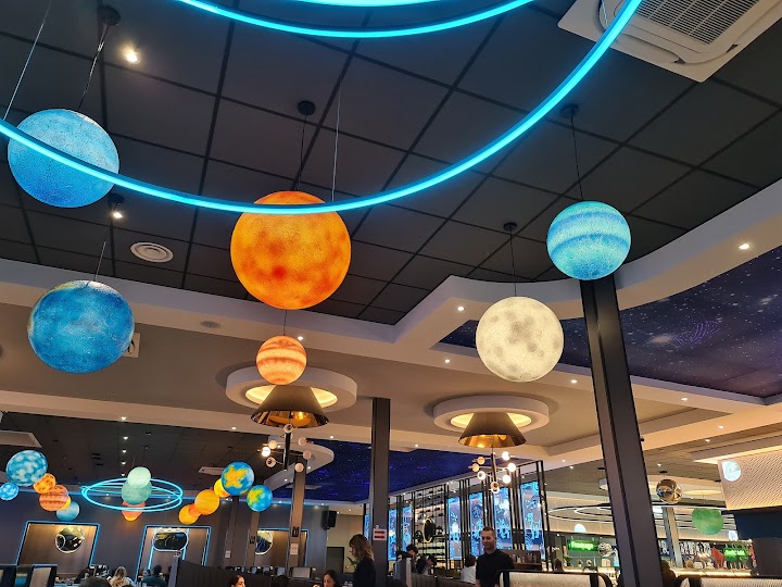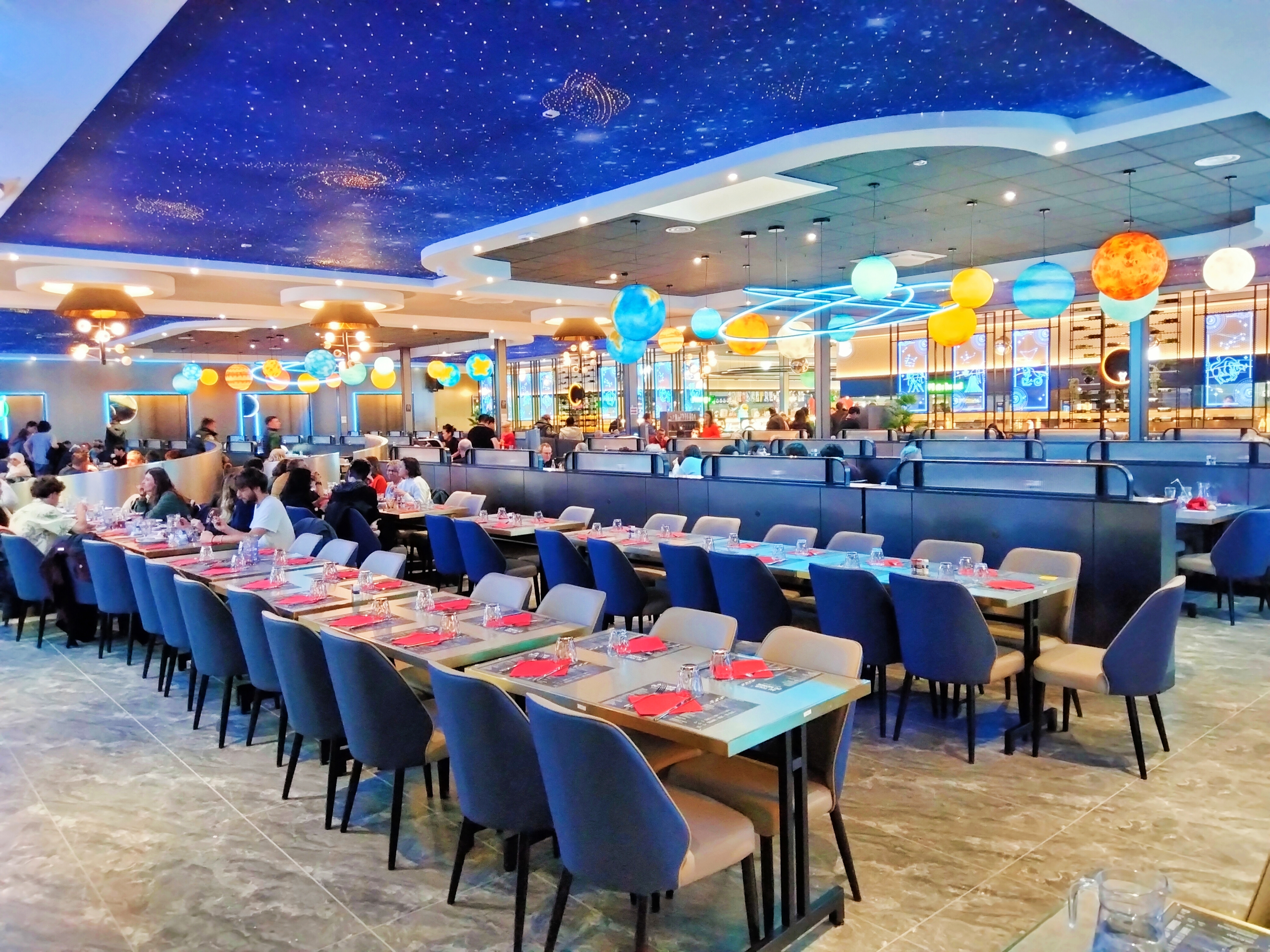 Un voyage dans un autre univers? Paraît pour le décollage. Buffet à volonté pour un prix franchement raisonnable, vous en avait pour tout les goûts. Viande, poisson, charcuterie, multiples salade et plats sans compter les desserts !!! Vraiment j'ai été transporter par mille et une saveur !!! Le personnel est très serviable, et la décoration vous met des étoiles dans les yeux grâce à leurs décoration sur le thème de l'espace. Fait pour les petits comme pour les grands.