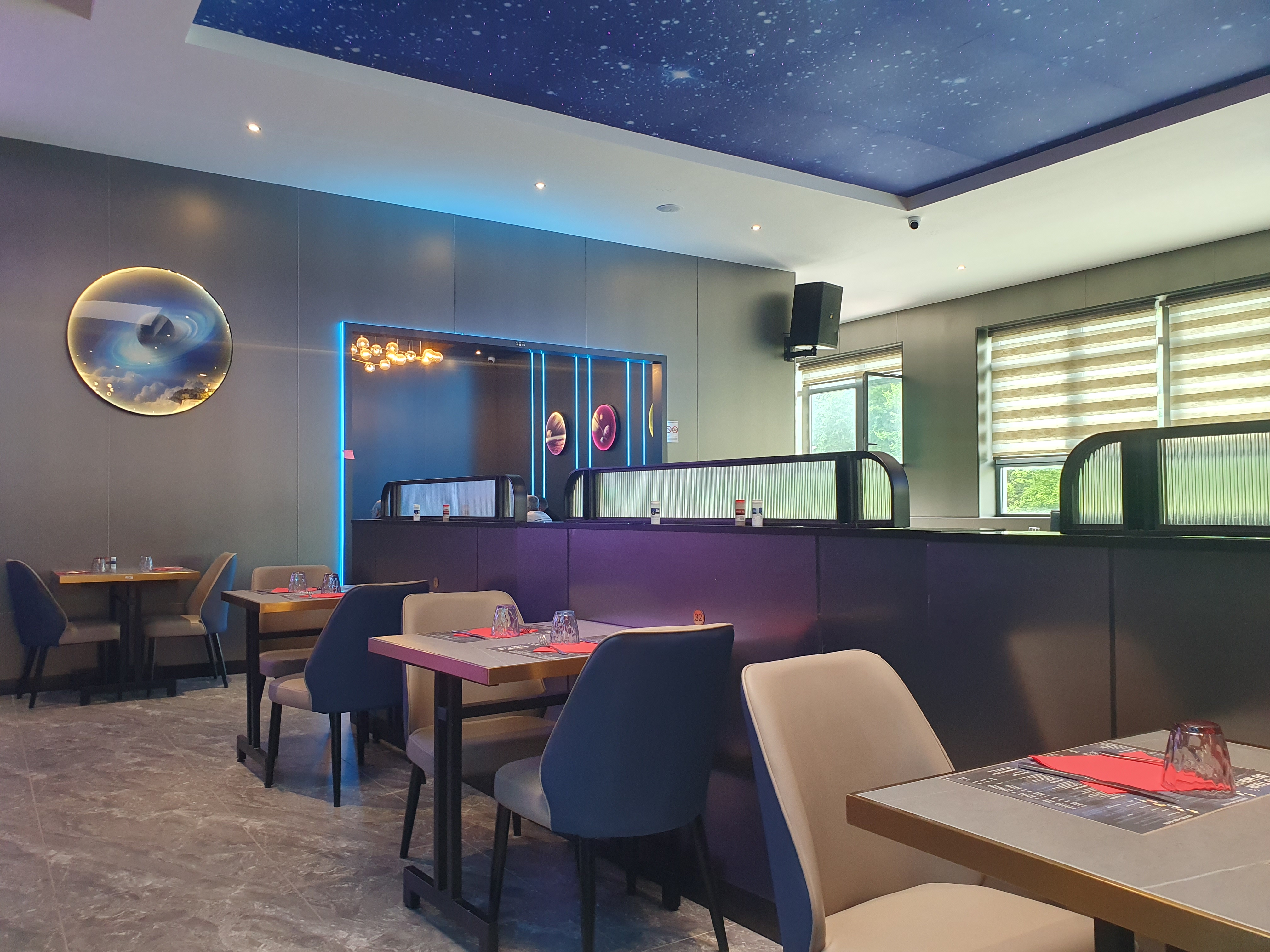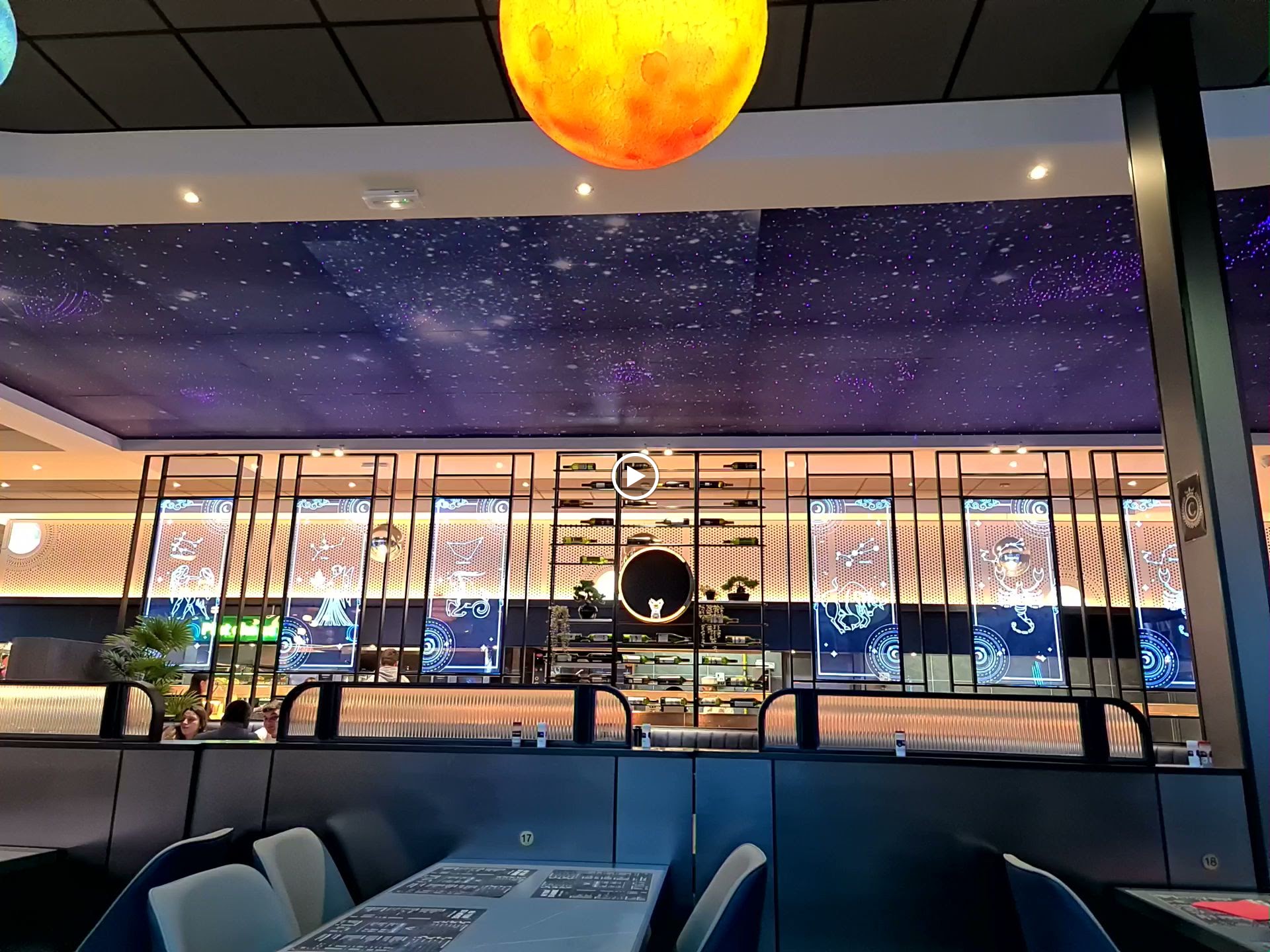 Premier repas dans ce restaurant très récemment installé rue de Vesoul. Dès l'entrée, nous avons été agréablement accueillies et orientées vers notre table. Le décor reflète le nom du lieu. Des planètes, un beau ciel bleu nuit étoilé. Le menu au choix est délicieux, diversifié : suchis, fruits de mer, viandes, légumes, fromages et desserts à profusion. Le service est assez rapide. Prix convenable par rapport à la qualité et à la diversité des plats. Je recommande vivement ce lieu de restauration.