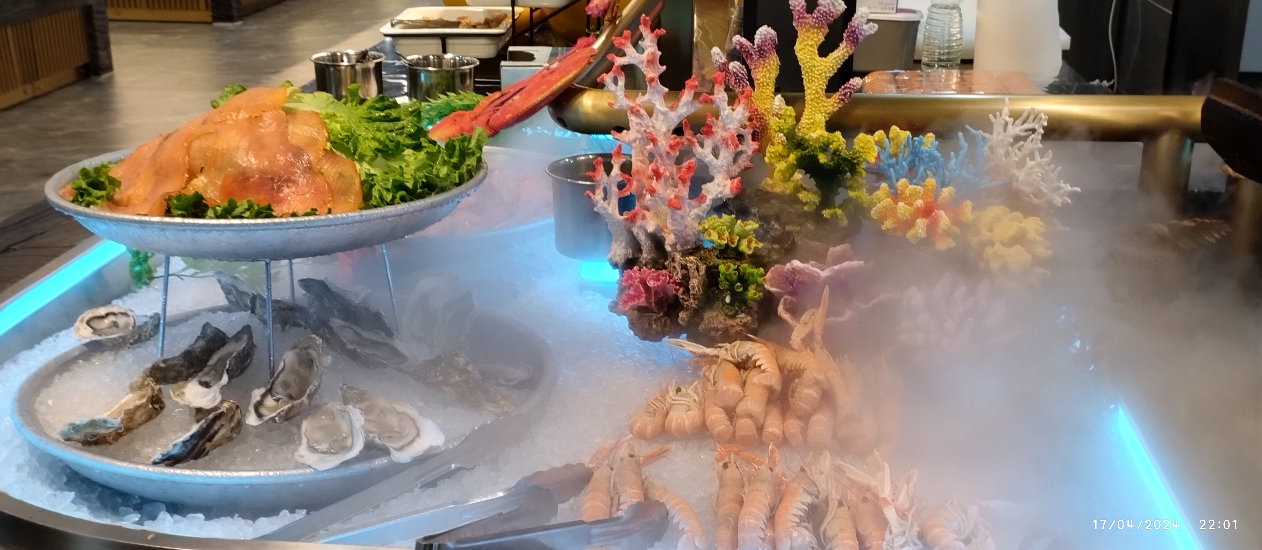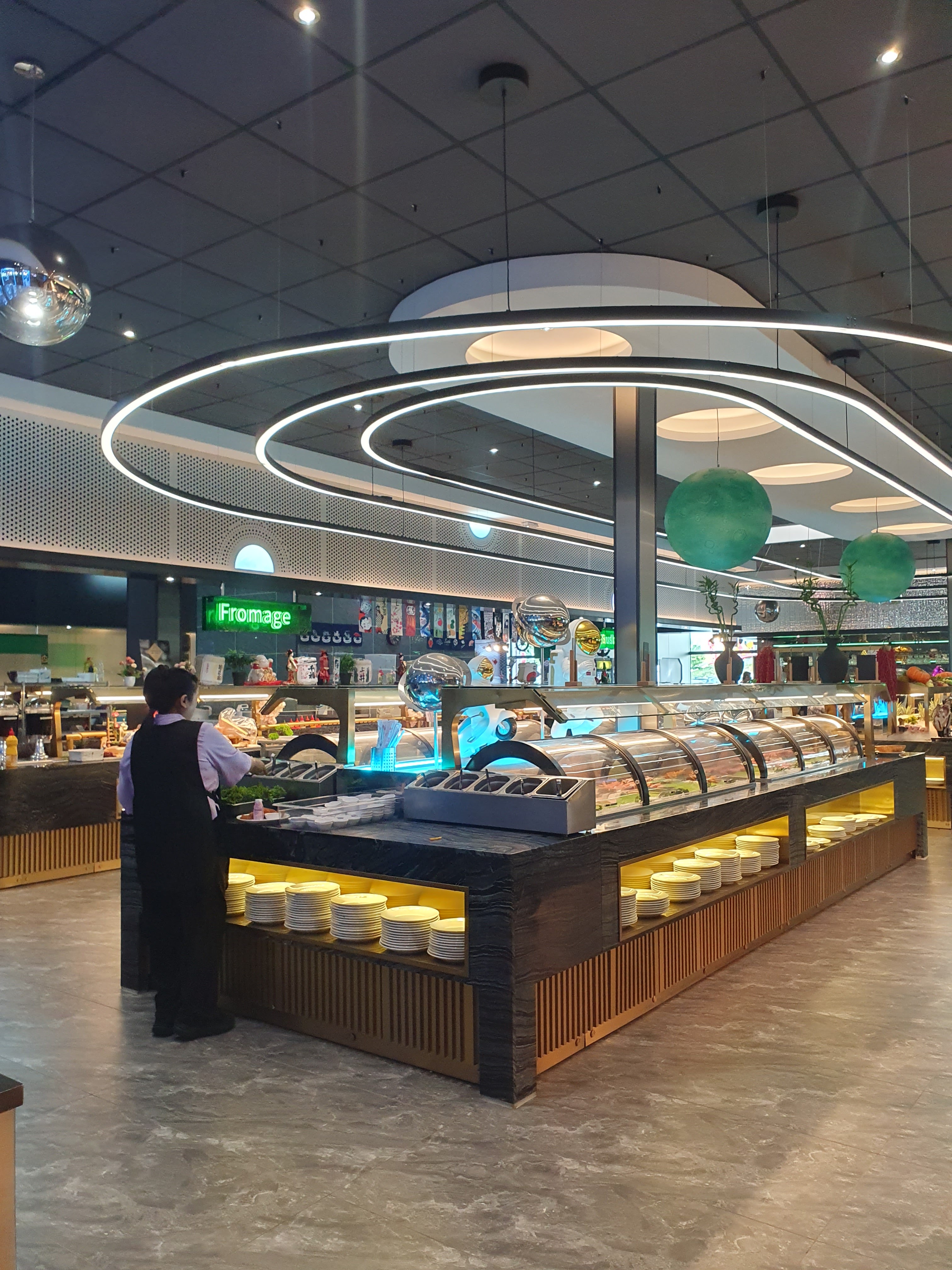 Quand le beaucoup côtoie le trop - un restaurant immense, qui s'apparente à un hall de gare - Le choix est en effet gargantuesque mais au detriment de la qualité individuelle des ingrédients - La viande et les poissons ne sont pas très bien conservé, en prouve mon intoxication alimentaire a la suite de ma visite - le rapport qualité prix n'est pas bon du tout ( comptez 26 euros par tête) Le restaurant n'accepte pas les titres restaurants