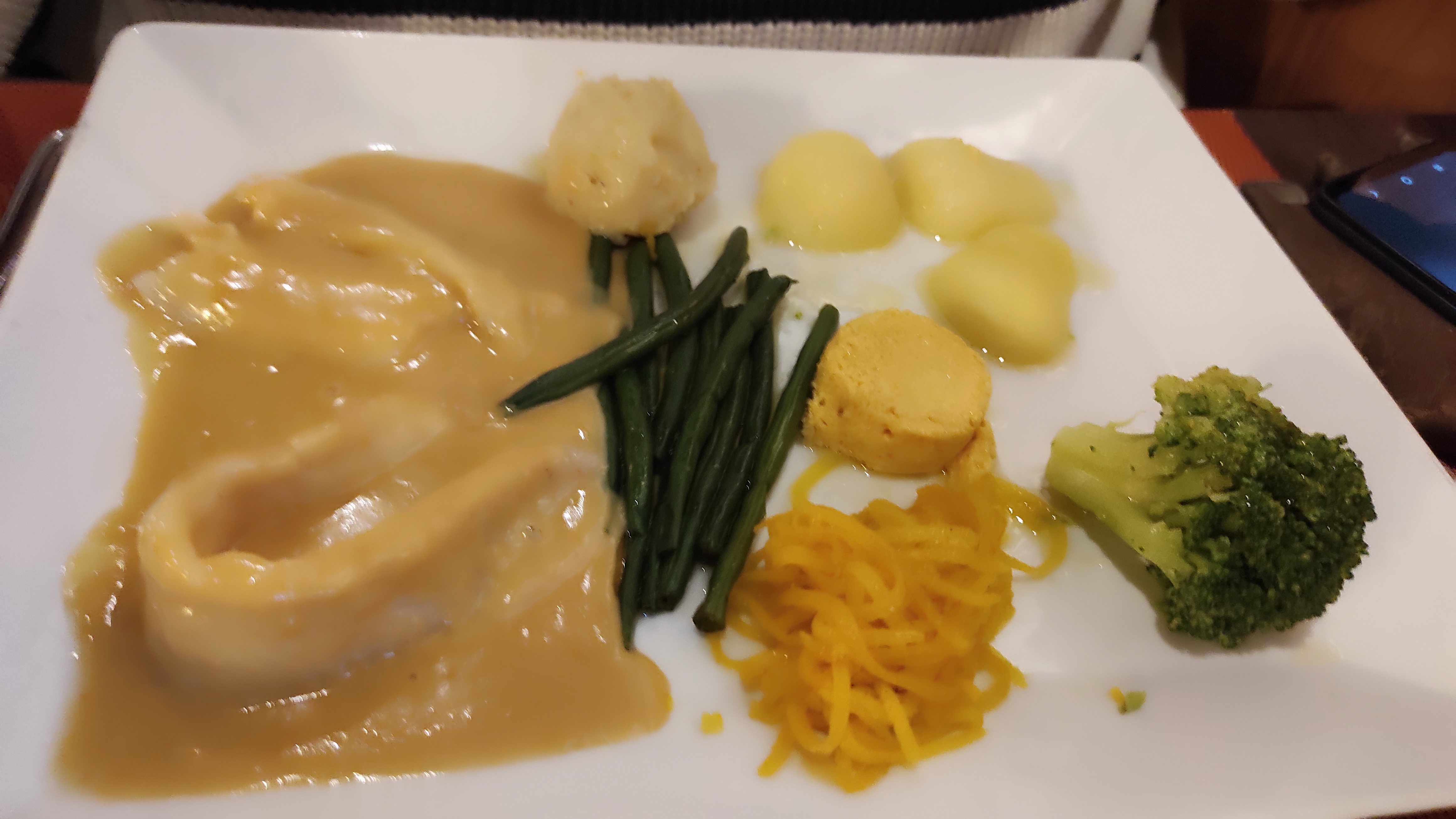 L'entrée est super jolie avec les decos de Noël, les plats sont bien garnis. L'escalope de veau est délicieuse. Le service est top et le personnel sympathique. Je recommande vivement