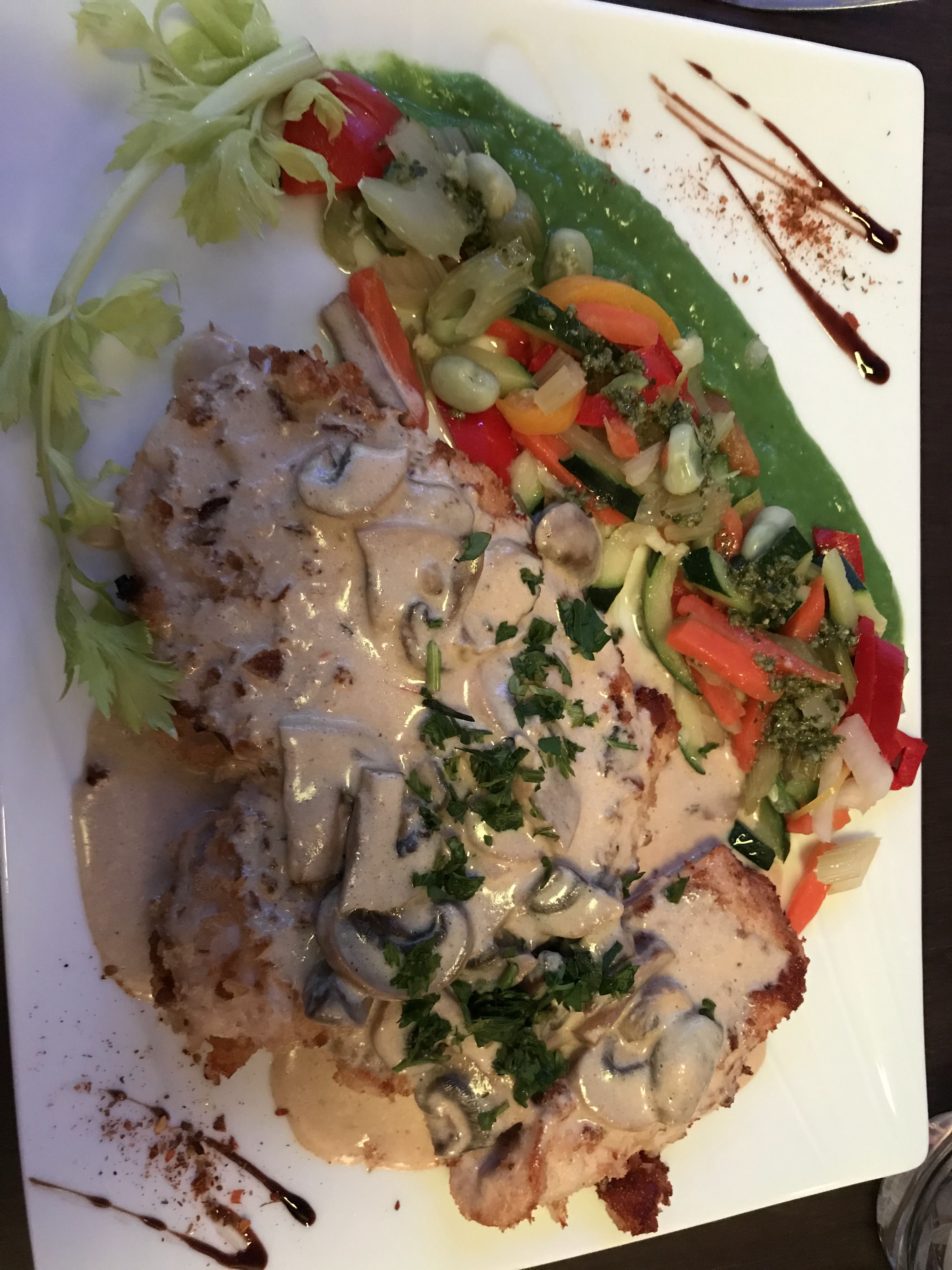 Le saumon était excellent, de la sauce aux légumes aux galettes de pommes de terres. Mes conviées avaient pris le boeuf Wellington. Ils se sont régalés . Juste les spatzles un peu trop salés. Le petit bémol le temps entre le plat et le dessert. Sinon les serveuces étaient très sympathique . Elles ont même marqué le coup. Merci encore
