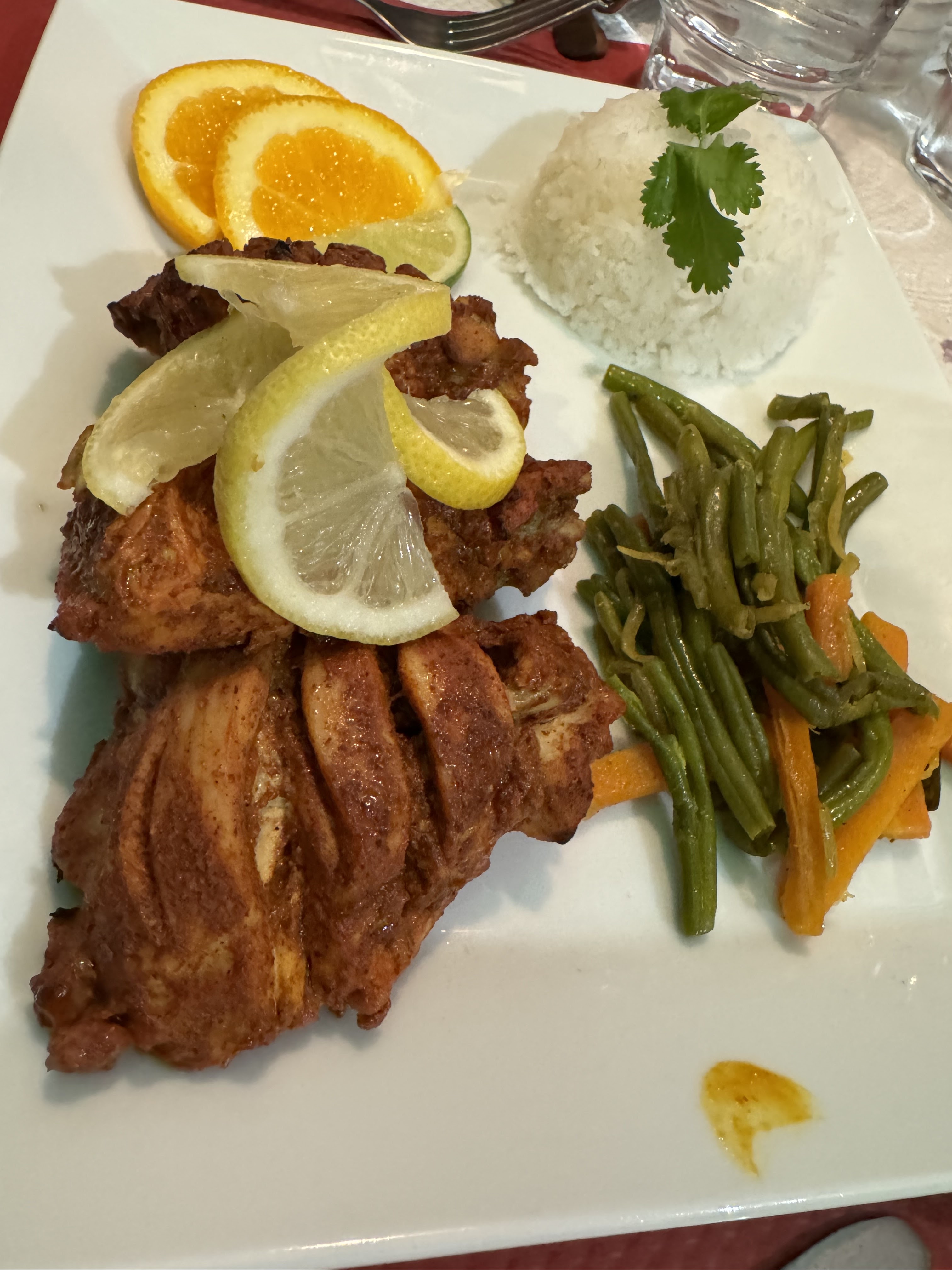 Accueil chaleureux, plats délicieux, 100% satisfaits :) (poulet curry vandoori/poulet tandoori/mousse mangue/pains traditionnels....)