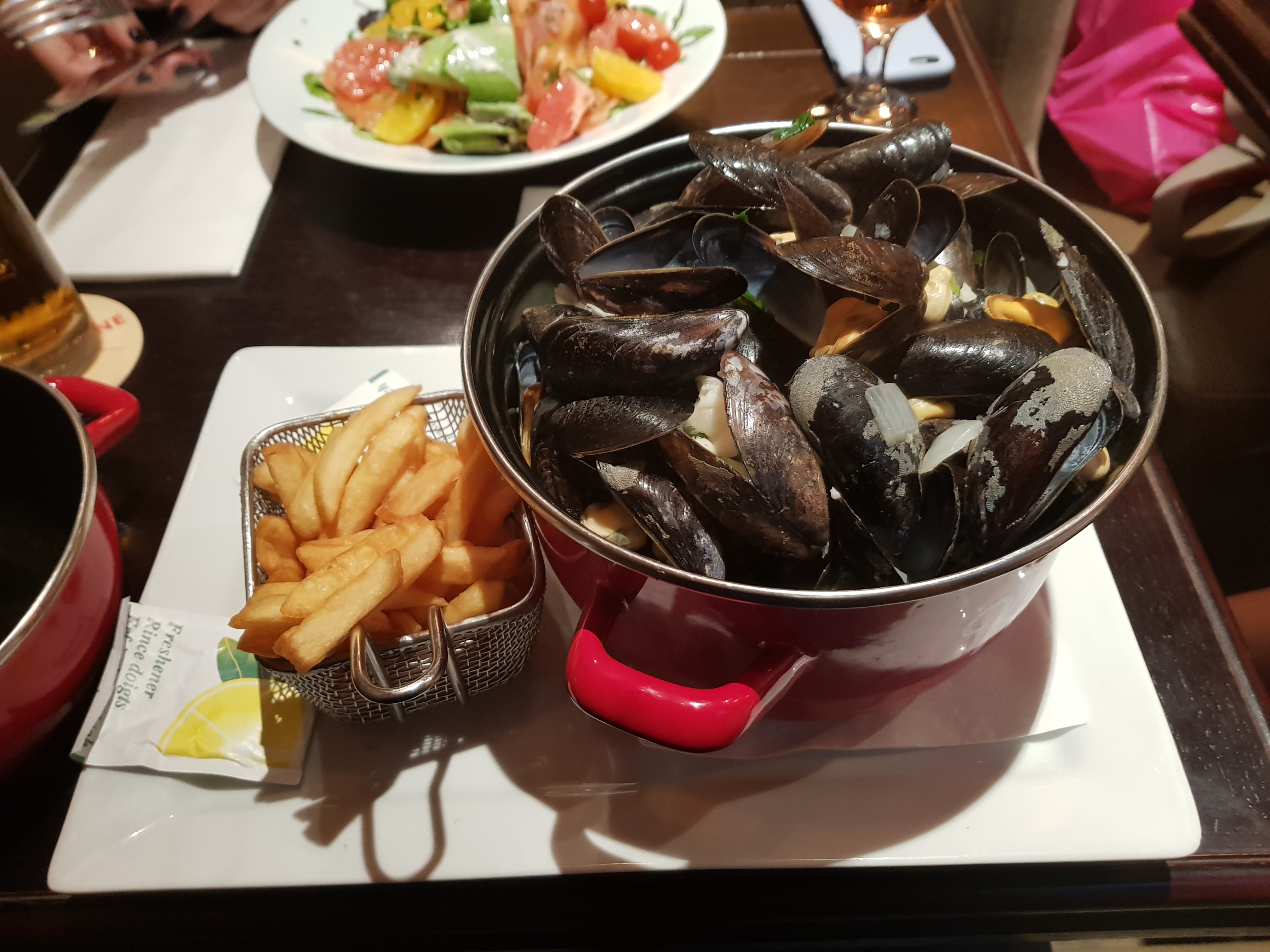 Après notre assiette on s est regarder car nous avions encore faim. nous avons donc repris un plat de moule qu on a partagé a trois. Sur cela le dessert poire Hélène qui m a bien rassasié pour le coup on a bien mangé. Les quantités sont très bien pas de gâchis c est parfait c est juste que nous avions pris un sandwich a midi et qu on avez vraiment faim. Les prix sont corrects, serveurs sont a l écoute et réactif. Nous avons passé une très bonne soirée a ce restaurant. Nous avons bien mangé et je le recommande fortement. Flo