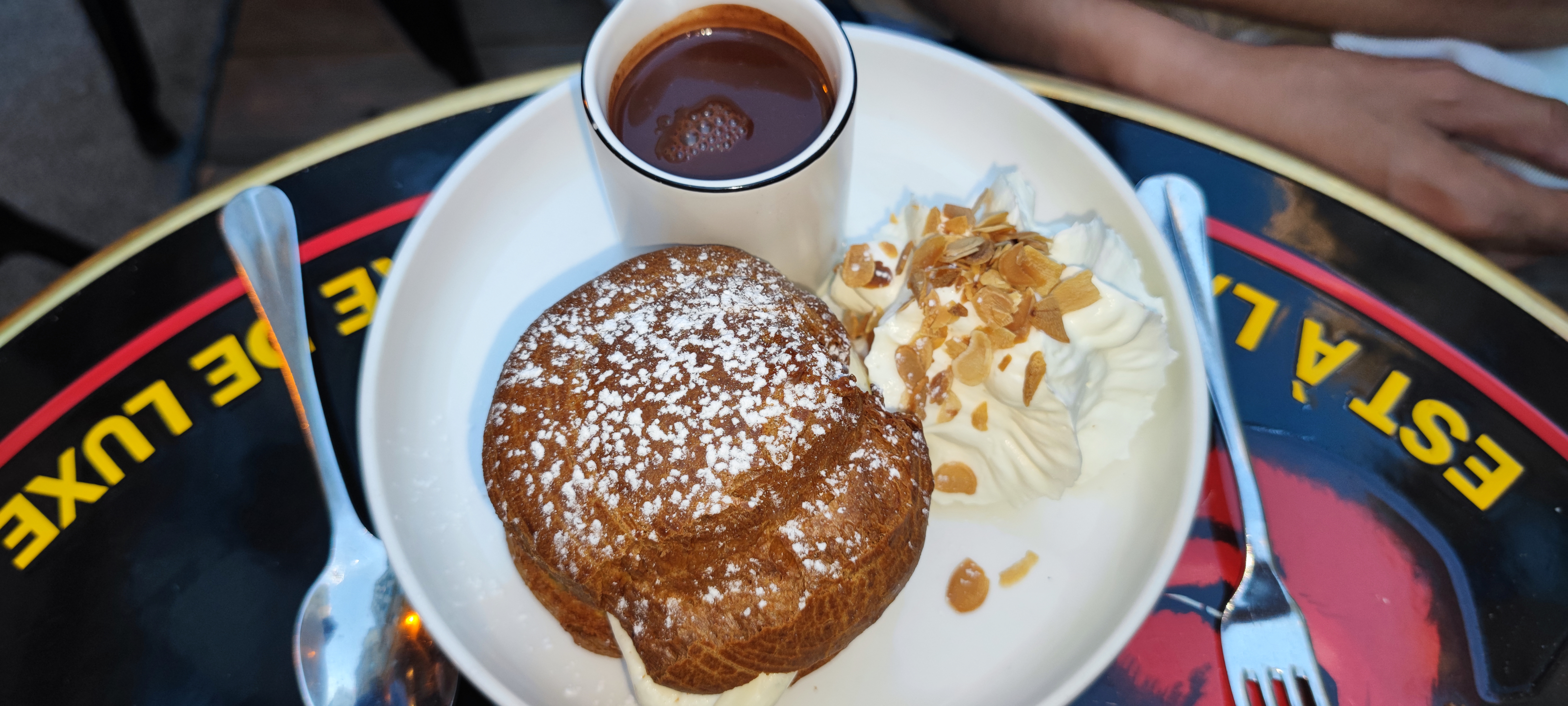 Très bien mangé sur la bien agréable terrasse extérieure. La profiterole géante du dessert est bien gourmande !