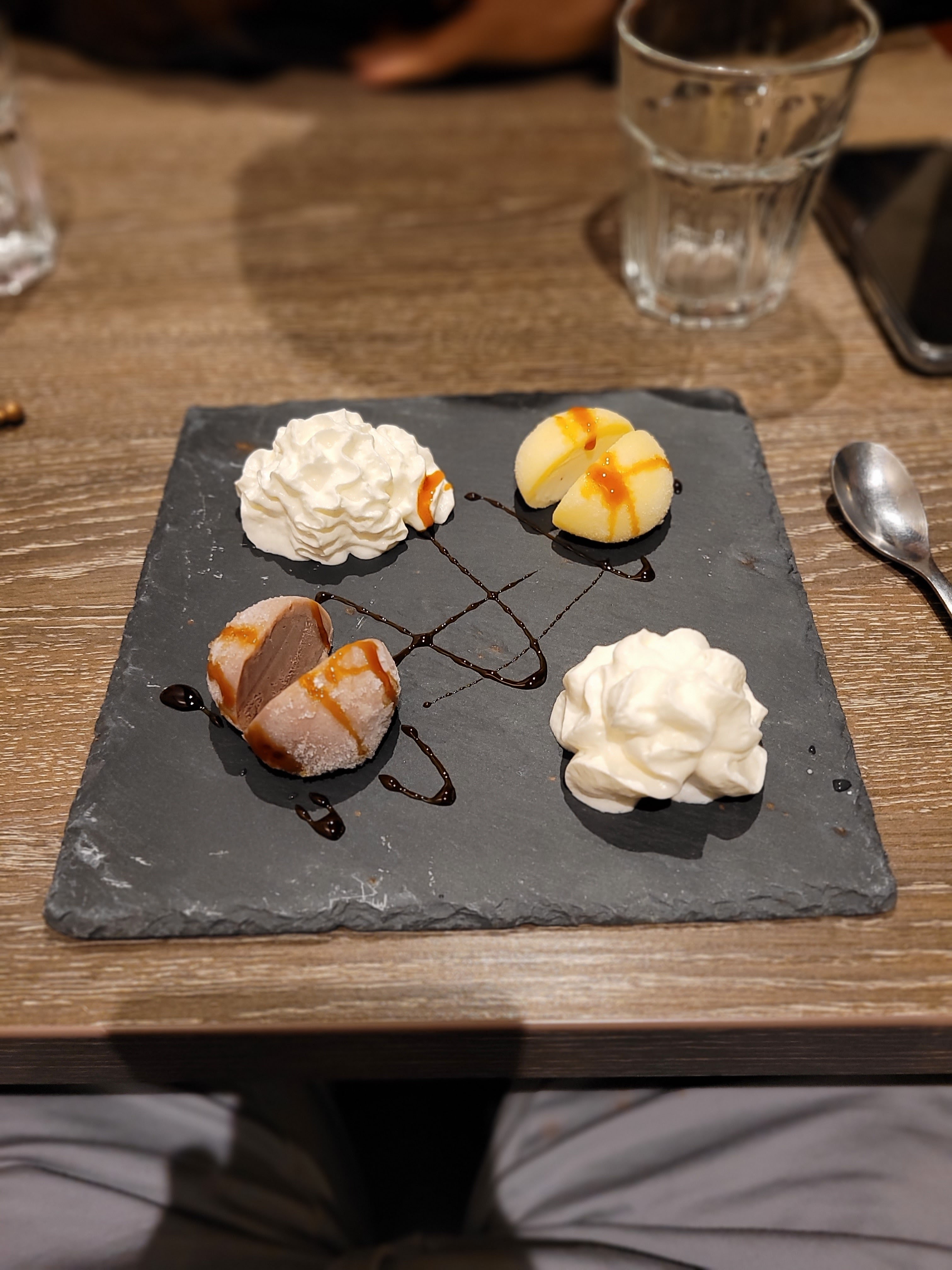 Délicieux et portion fort généreuse, personnel très agréable. Cocktail Réincarnation bon mais assez tonique ! Par contre étant dans la salle près de la porte j'ai eu froid j'aurais dû mettre un pull un peu plus epais. On compte y retourner très vite !