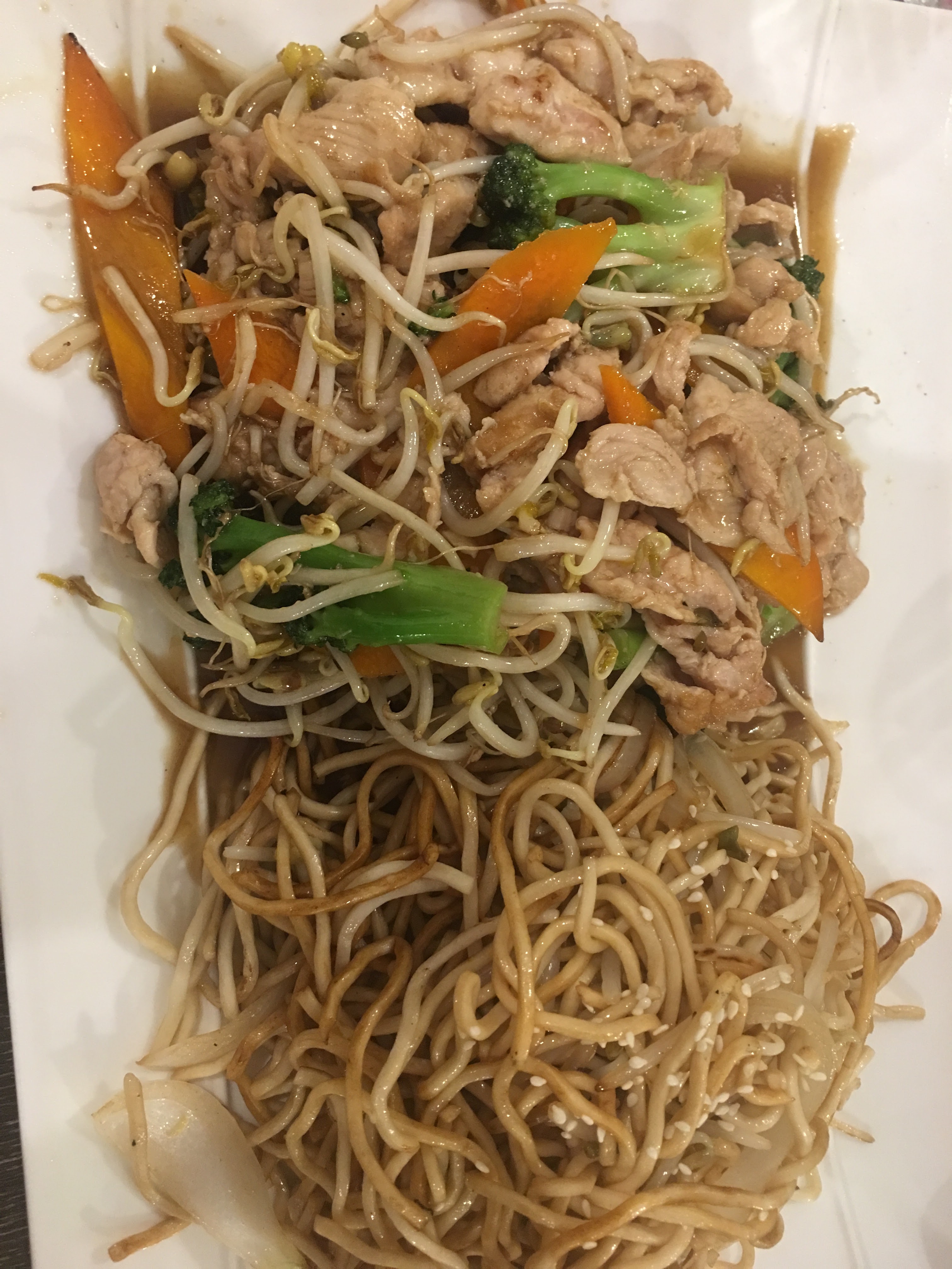 J'ai pris 2 portions de raviolis de bœuf, une grillée et une bouillie et des nouilles sautées au poulet. C'était vraiment bon !