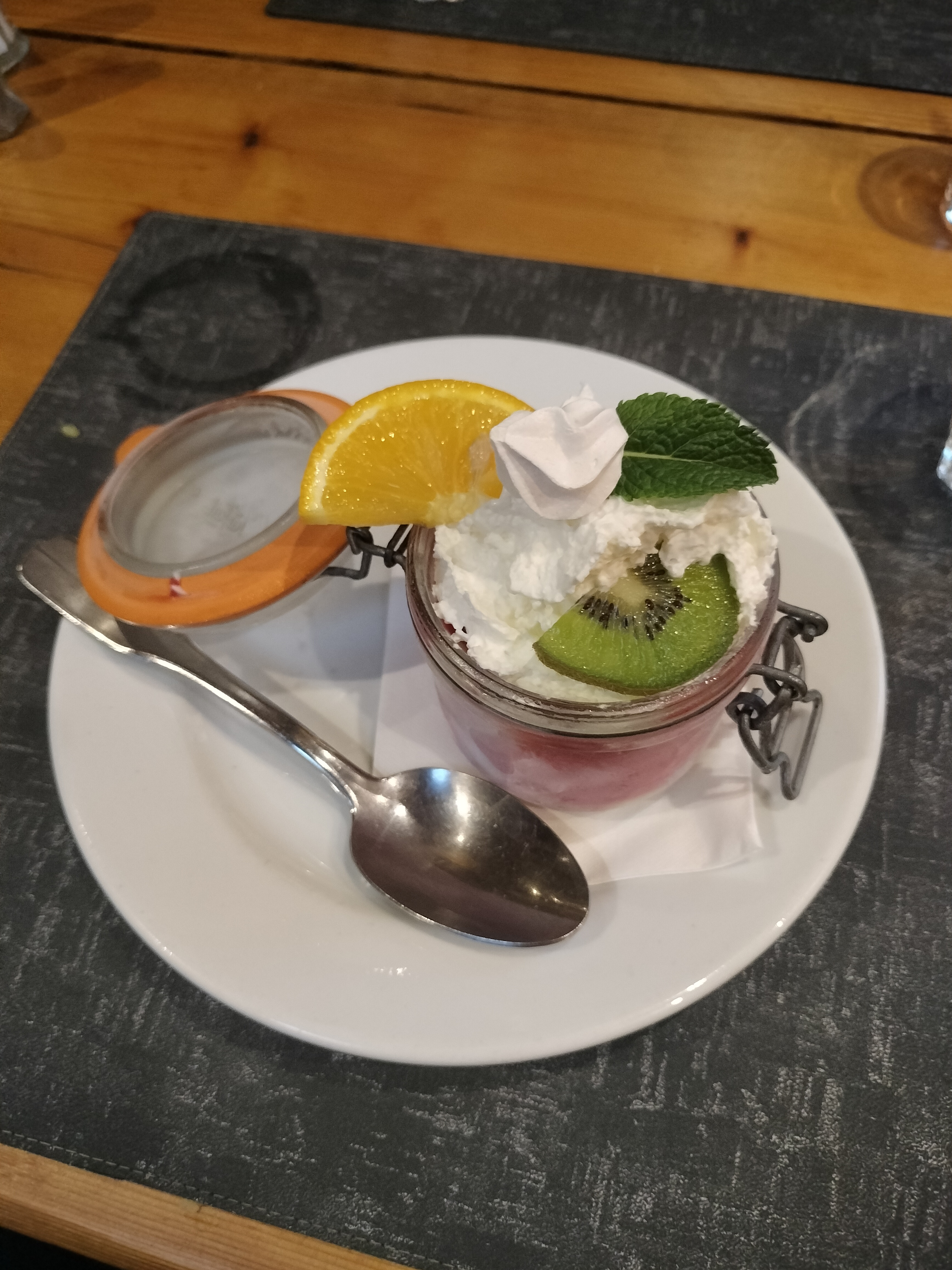 Cadre très chaleureux avec du bois clair.Cuisine simple et dessert des profiteroles revisitées a goûter très bon mariage entre sorbet citron vert et coulis de fraises
