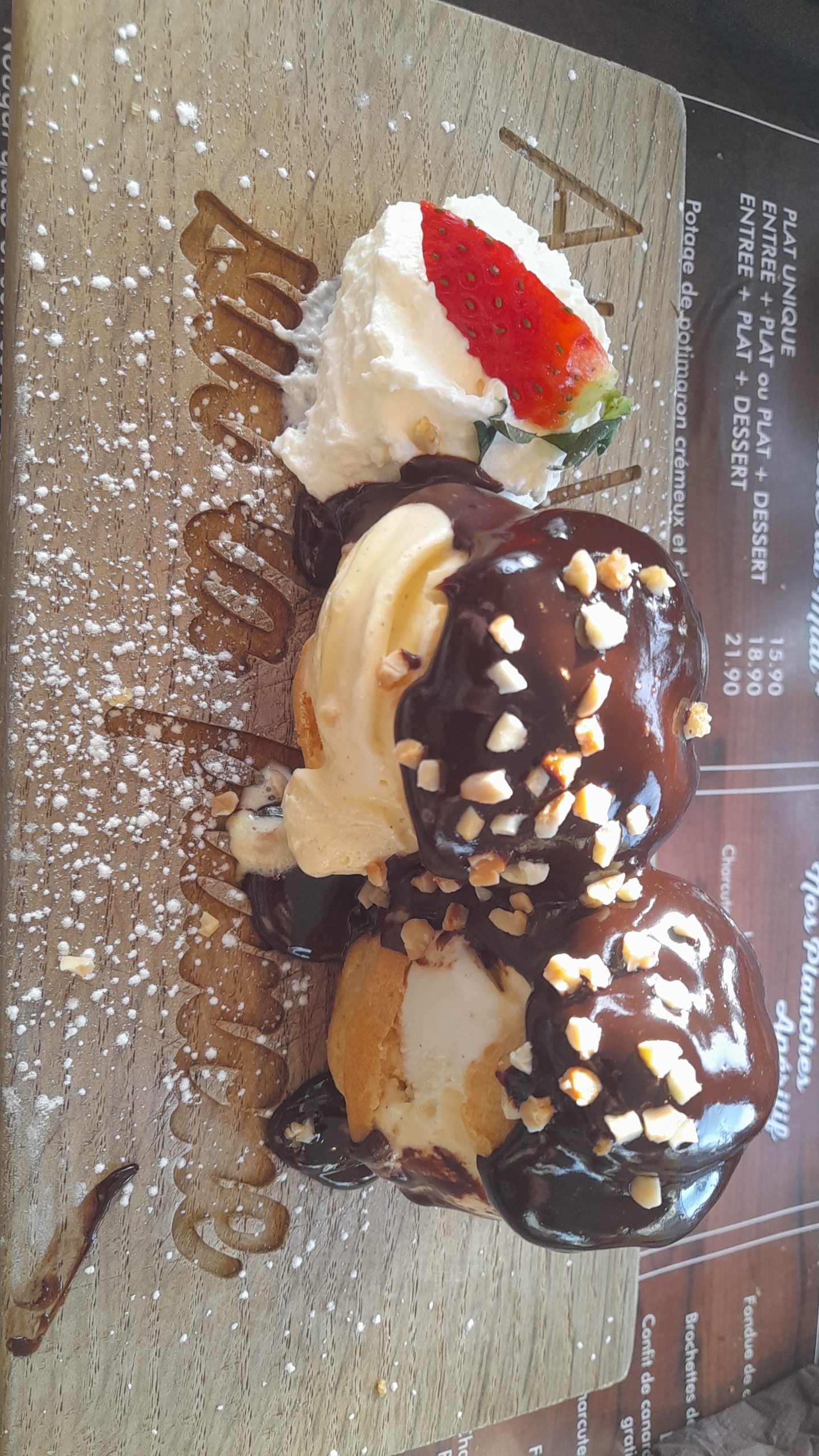 Une prestation correct sans plus . Une côte de bœuf de 400 gr qui en paraissait 250 gr. Un os à moelle vide car trop cuit et enfin les 3 profiteroles en dessert qui arrive sur une planche avec un seul chou immense et 3 boules de glaces avec l'équivalent d'une cuillère à café de chocolat liquide.