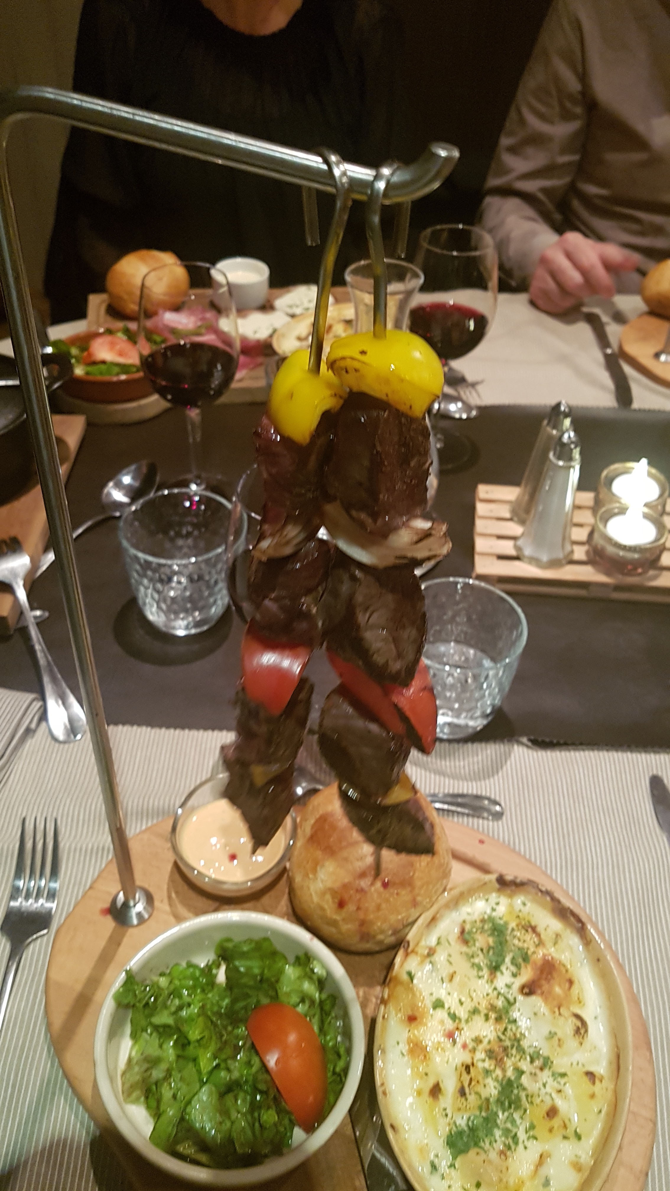 Cuisine à base de fromage, très bon, la viande de bœuf en brochette était très tendre, l’accueil sympathique et chaleureux le prix très raisonnable. À très vite.