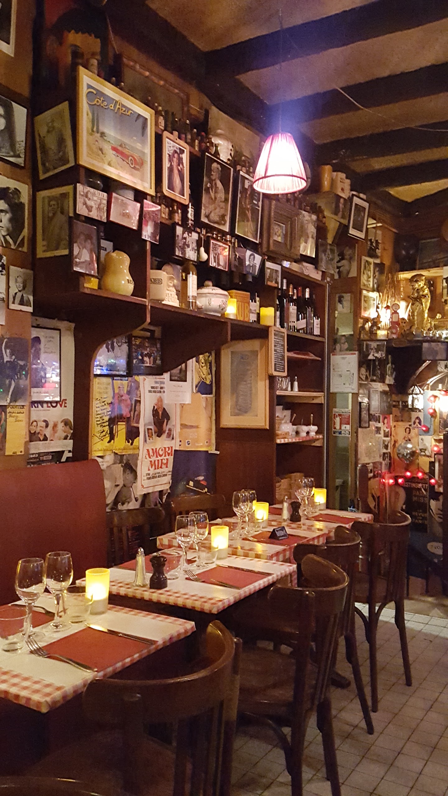 Petit bistro charmant , situé dans un virage rue Lepic, une décoration chargée de photos, de bibelots et d’histoire ! La cuisine est simple et savoureuse, chaleur familiale du service, nous avons passé un bon moment !