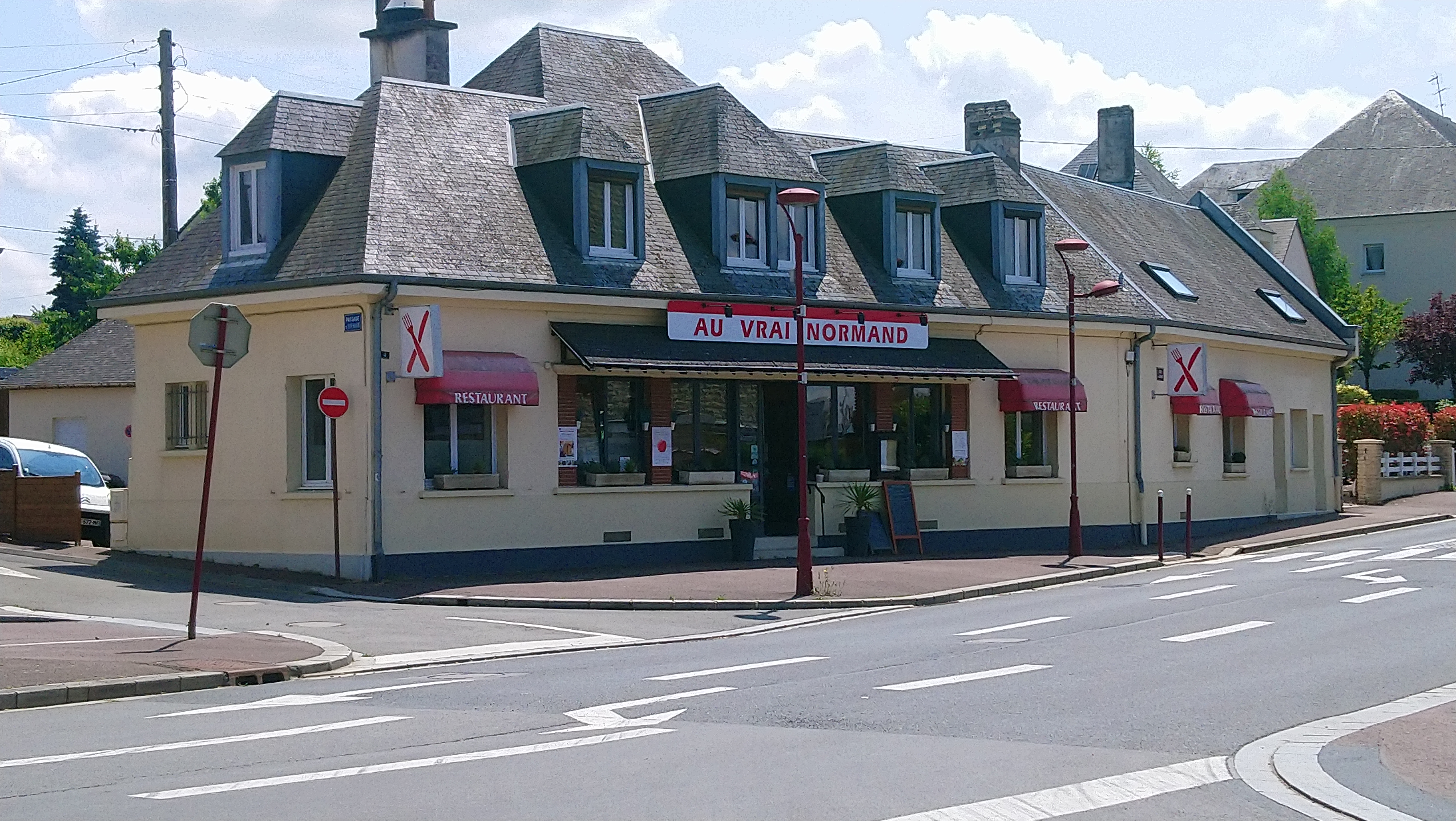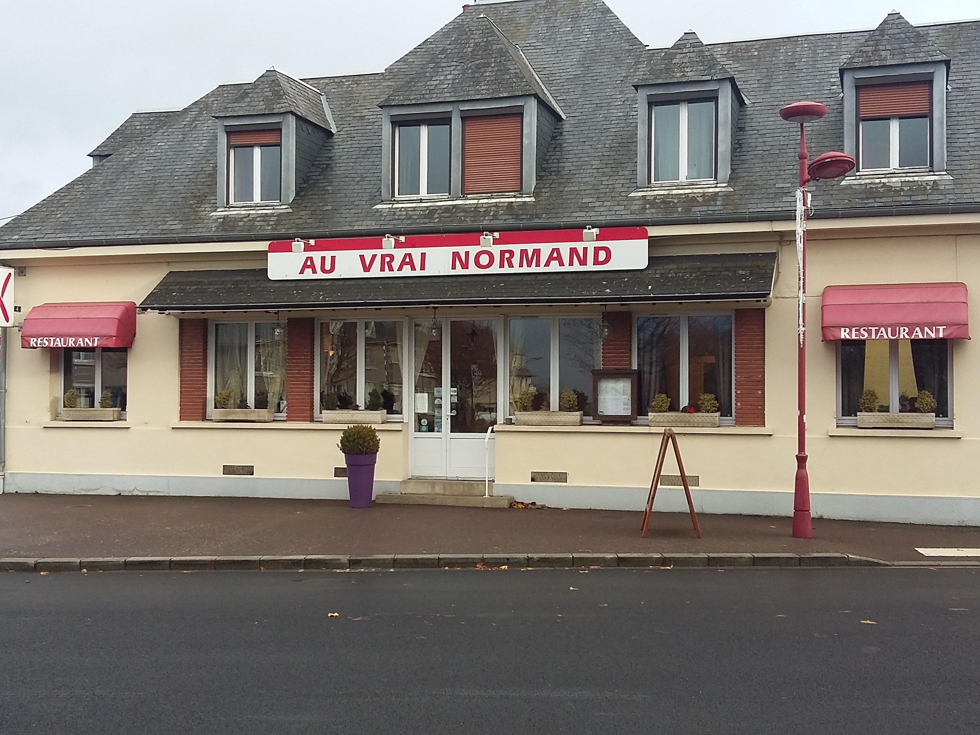 C'était une première visite Au vrai Normand ce lundi soir, et franchement pas déçu. Délicieuse escalope de veau à la crème, frites salade. Rien à redire. Accompagné d'une bière et Clôturé d'un café gourmand. Prix trés raisonnable et personnel sympathique.