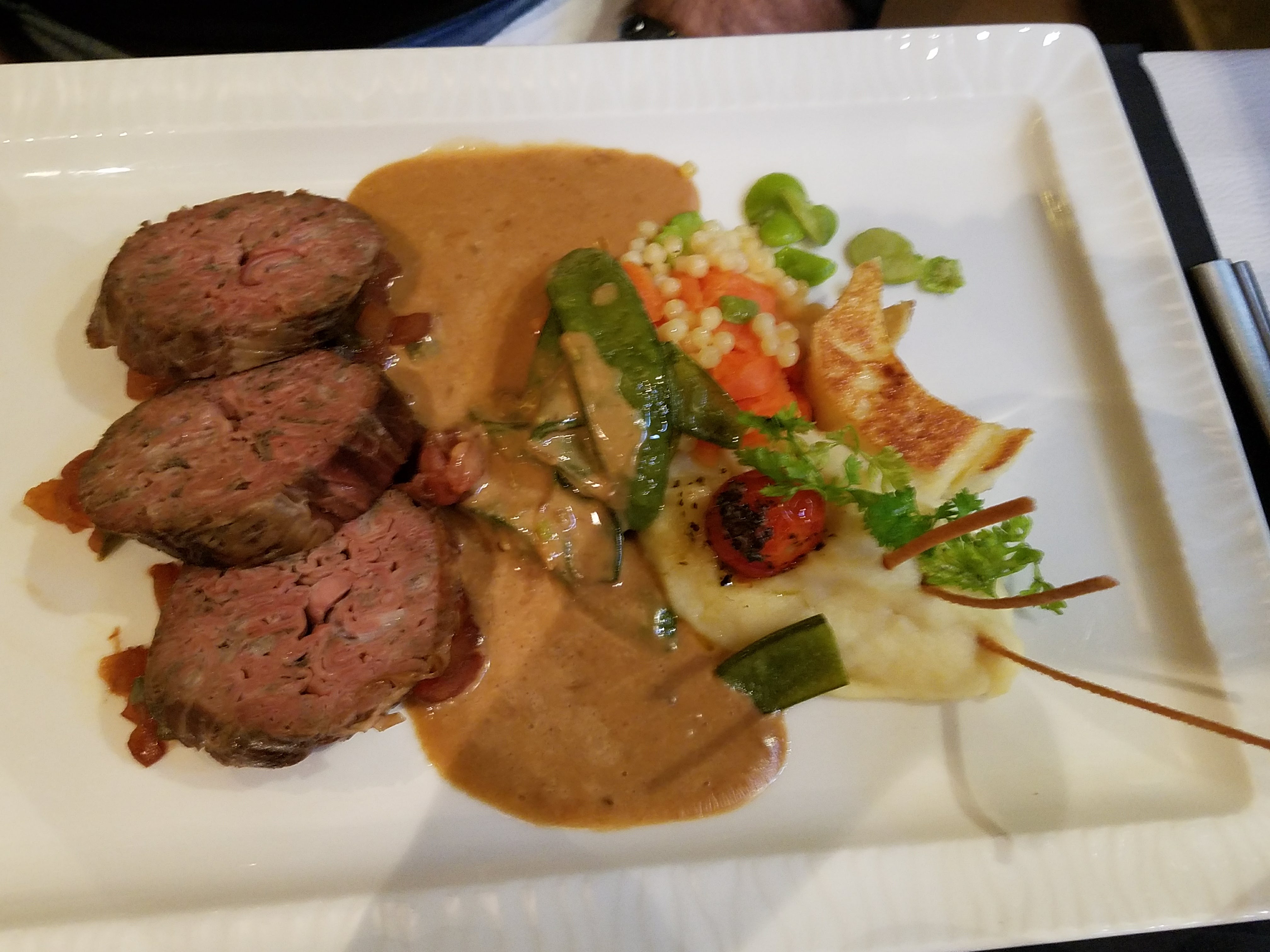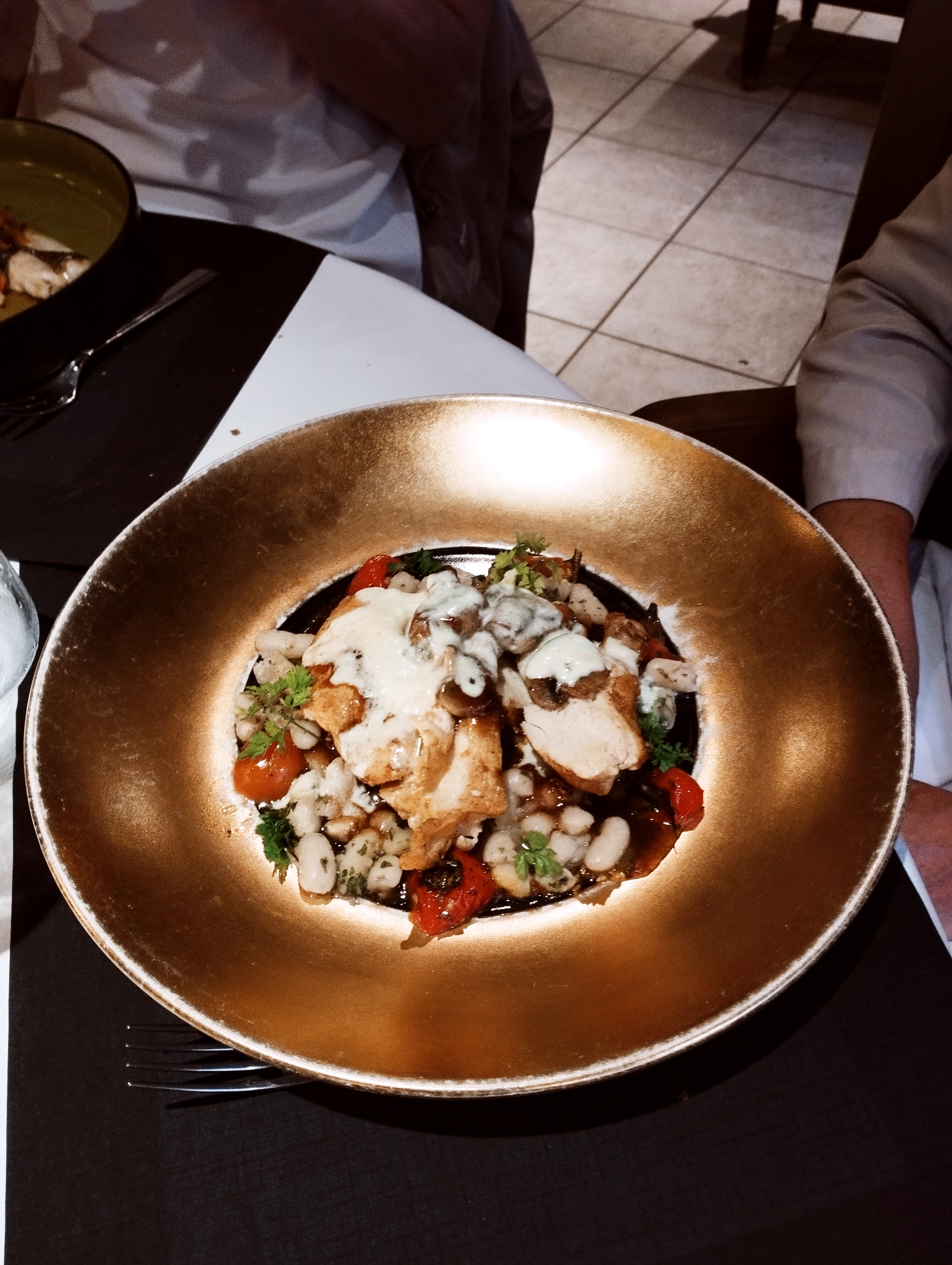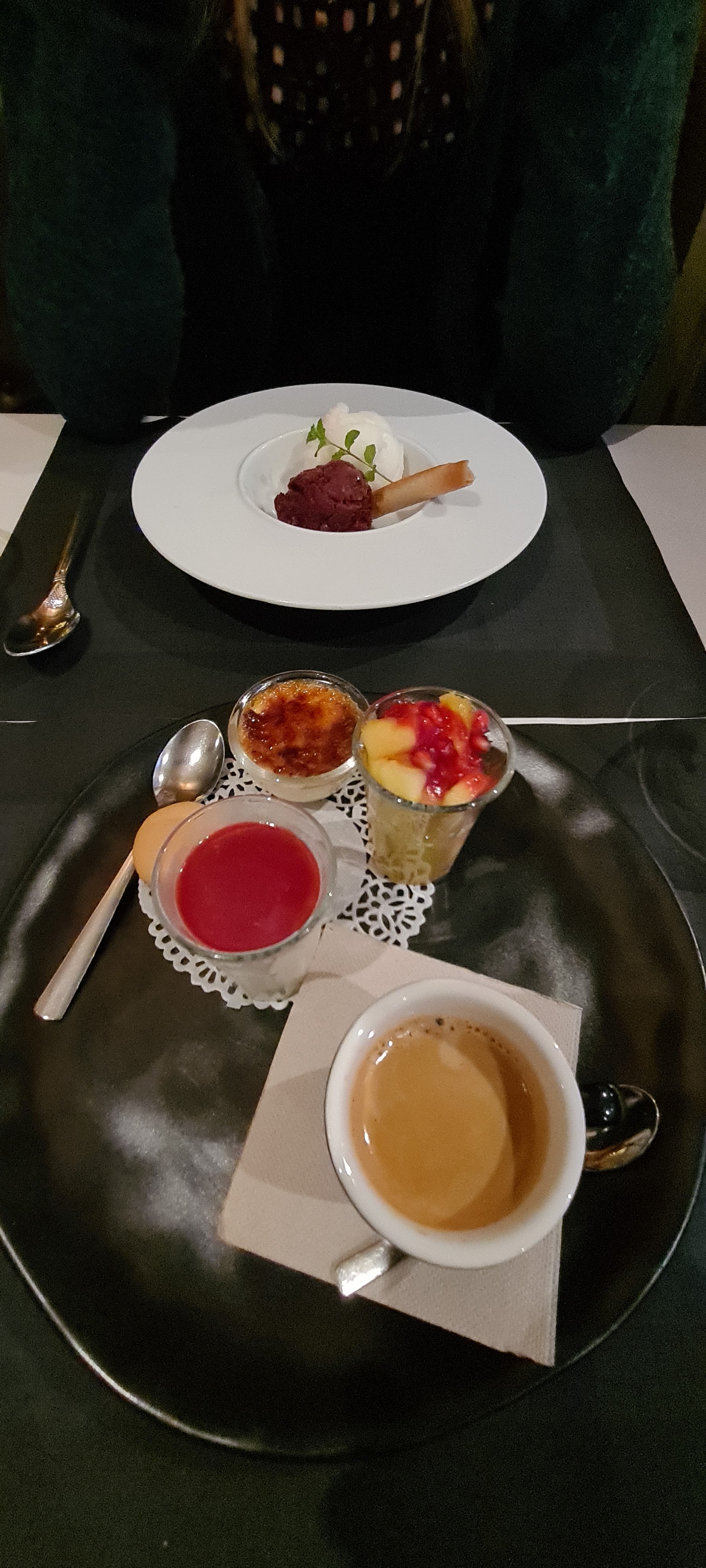 Repas merveilleux, entrées passionnantes, comme masterchef. Poulet et poisson succulents, légumes délicieux. Café avec petits desserts pour finir, belle soirée. Personnel aimable aussi, et cadre charmant. Nous serons de retour.