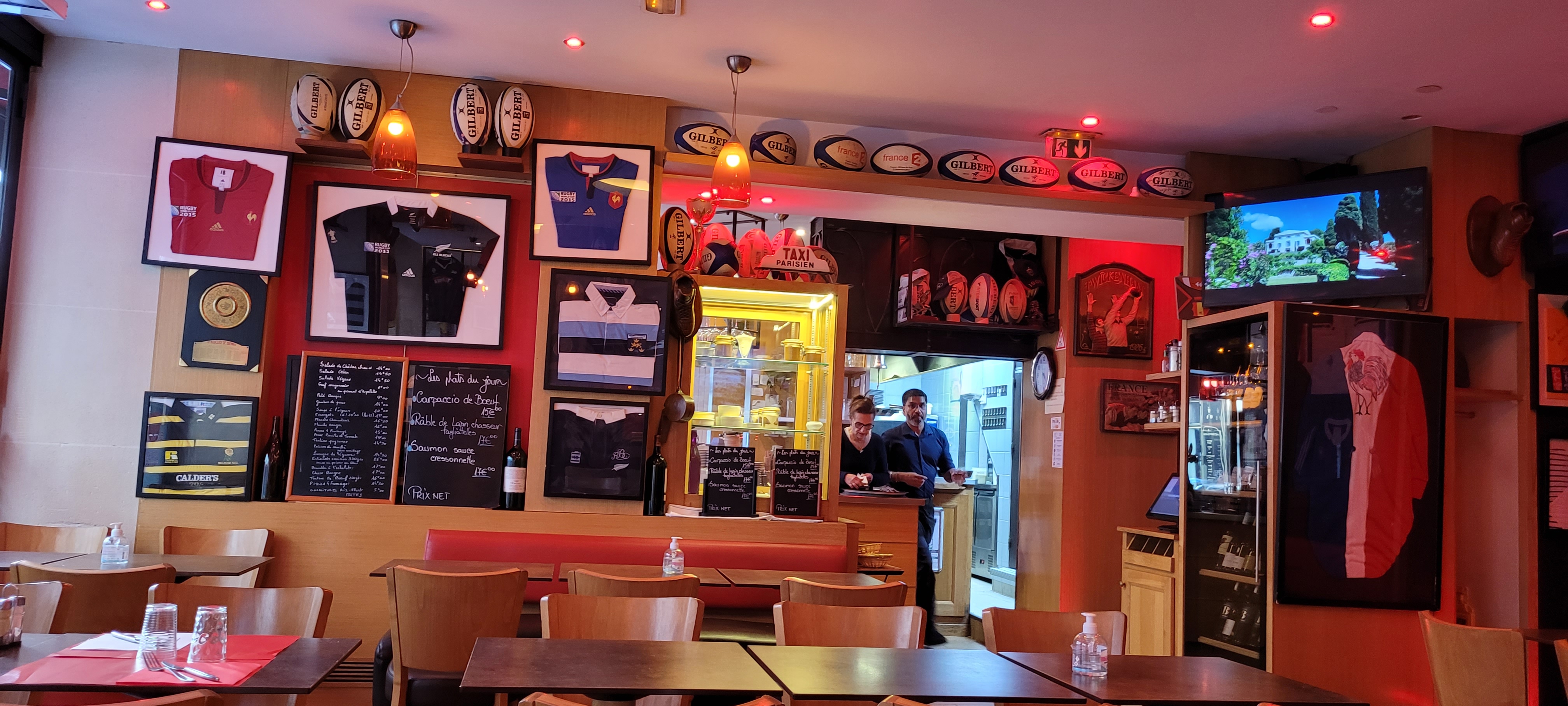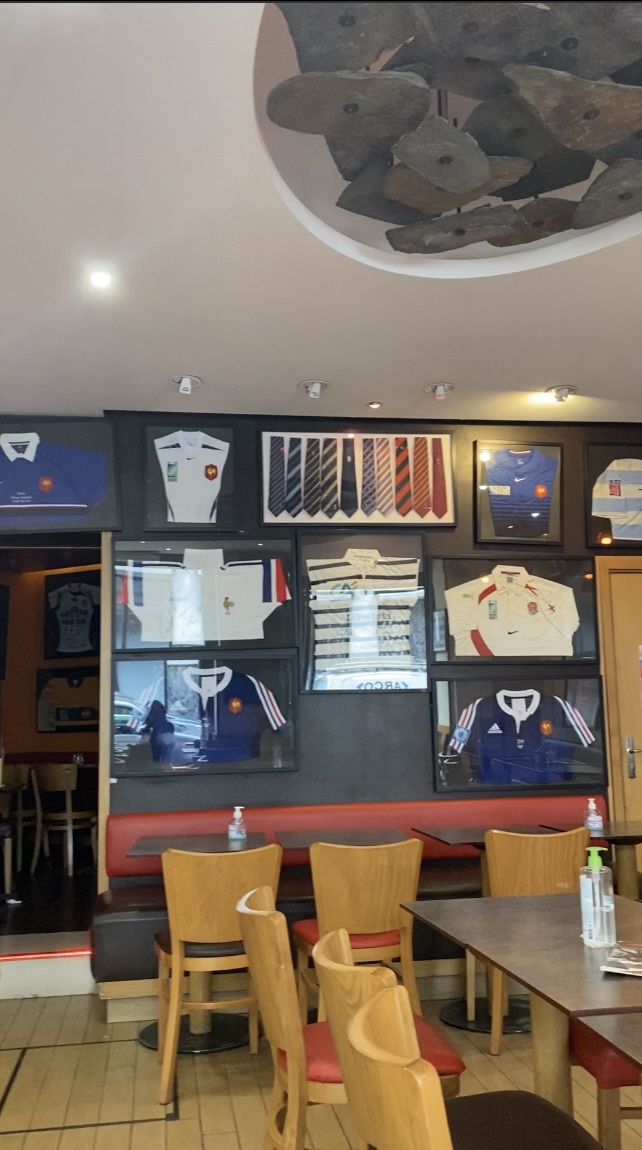 Un autre lieu de prédilection à Paris pour les rugbymens un bar brasserie à deux pas des Champs-Élysées, bonne déco sur le rugby, formule au bar entrée + plat + café + boisson bière où vin à 16,00 EUR correct, carpaccio de boeuf 14,50 EUR...ouais la troisième mi-temps à faire mais en costard cravate.