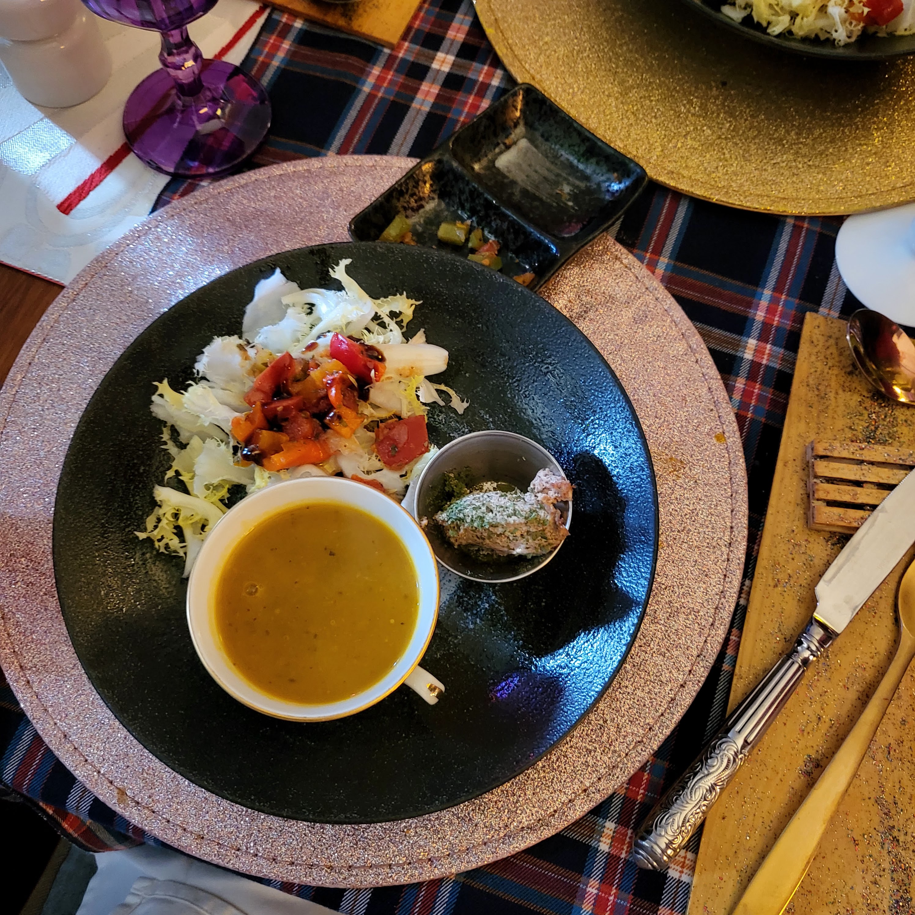 Une soirée et une nuit féérique dans ce magnifique endroit! Dès la poignée de porte pailletée, on sait que l’on va pénétrer dans un univers merveilleux tel Alice passant à travers le miroir. Merci à nos deux hôtes qui nous ont si gentiment reçu, ont émerveillé nos papilles, nos pupilles et nos oreilles avec leurs histoires de vie hors du commun.