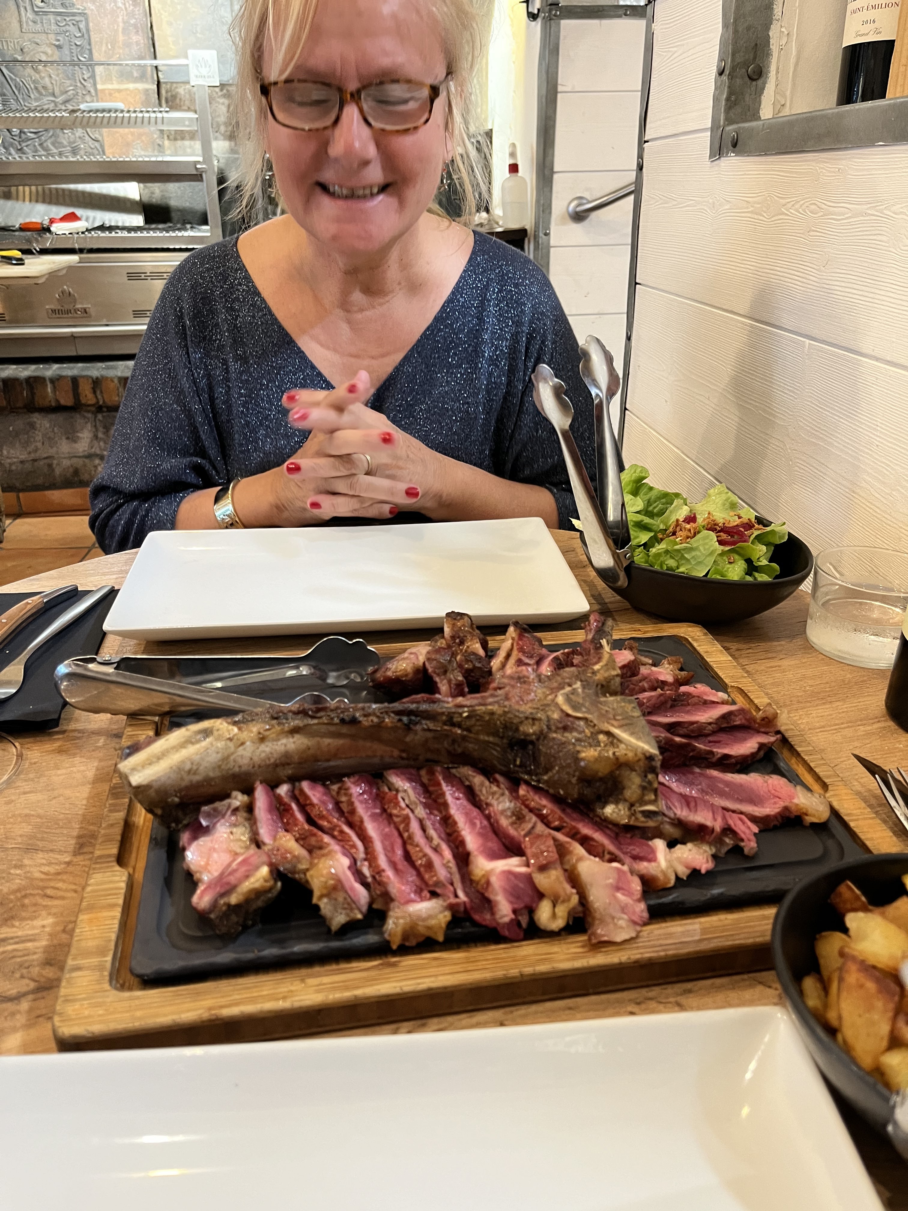 Super moment dans ce restaurant ! La côte de bœuf Galice, Rubia maturée 45 jours est divine... Accompagné d'un Margaux de Château La Tour Bessan (2016)...