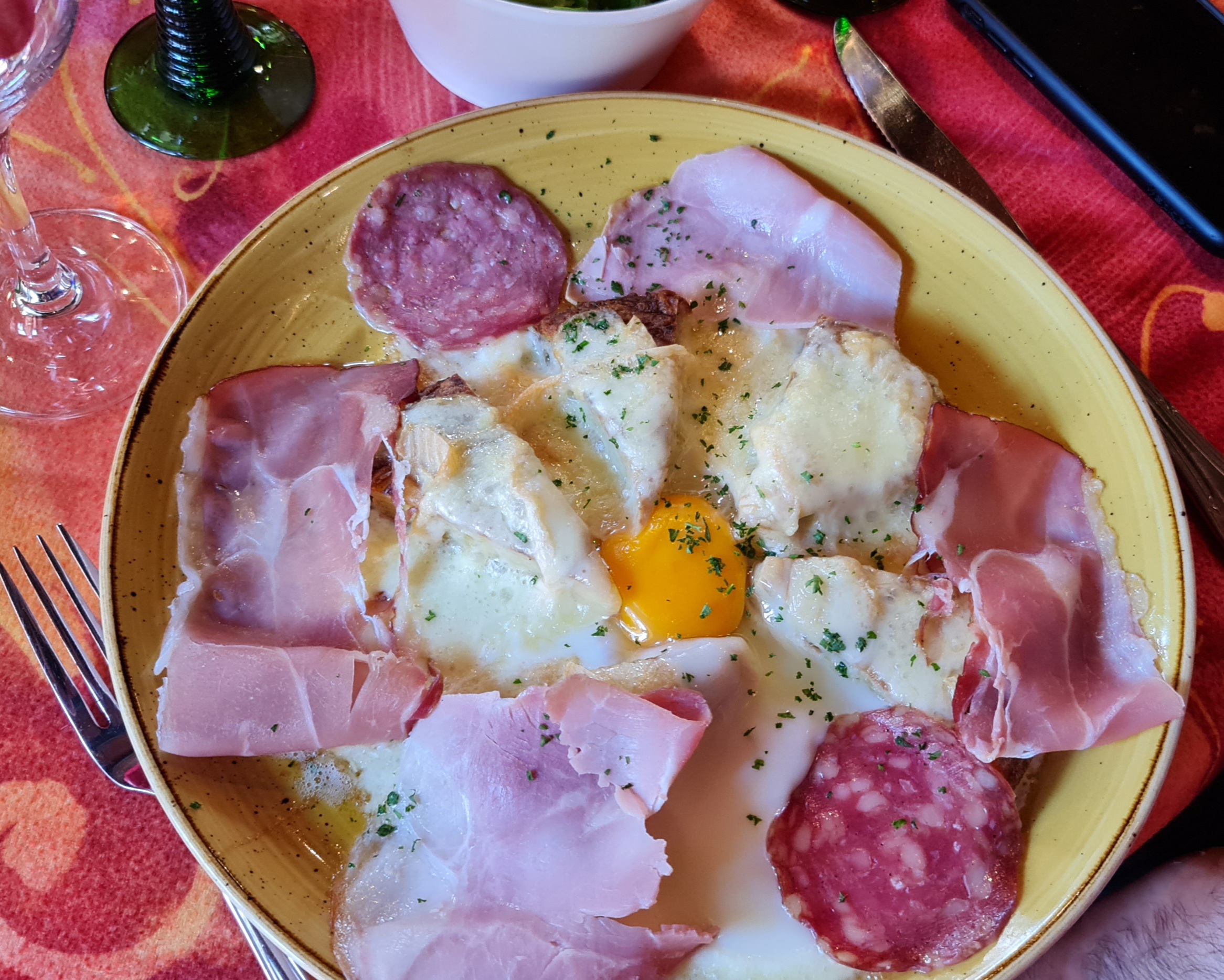 Salade 3 fromages, sur toast grillés plus jambon de pays, 14€, vraiment très correcte