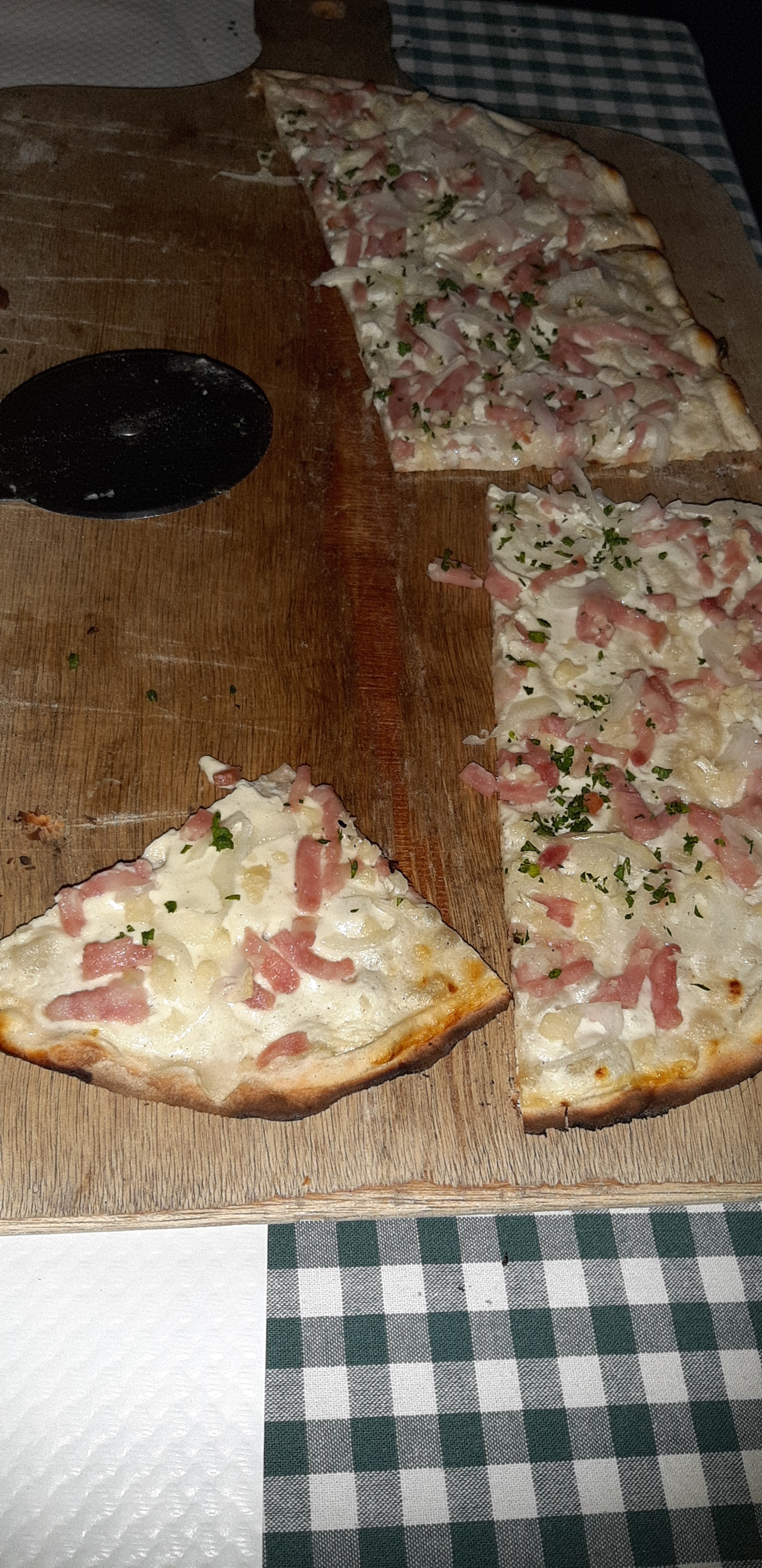 Très bonne tarte flambée, dommage,la météo nous a privé de la terrasse.