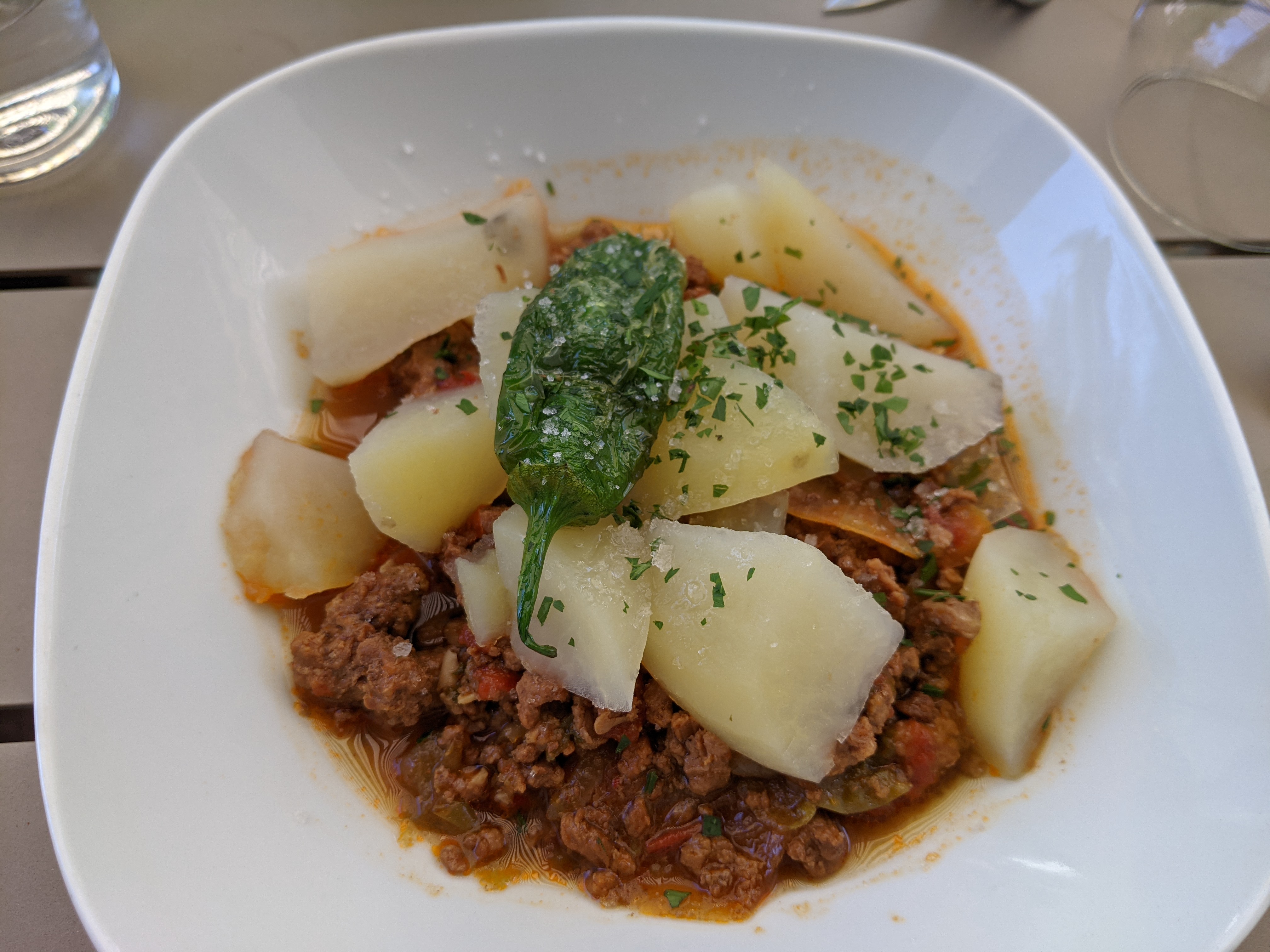 Un des rares restaurants de ce petit village et une faim soudaine. Voilà le cocktail qui nous a fait nous arrêter dans ce restaurant où nous avons bien mangé. La bavette était tendre et le chipiron bien préparé. L’accueil y est souriant et sympathique et le tarif plutôt correct. Un autre bon cocktail qui participe au bon déroulement de notre séjour.