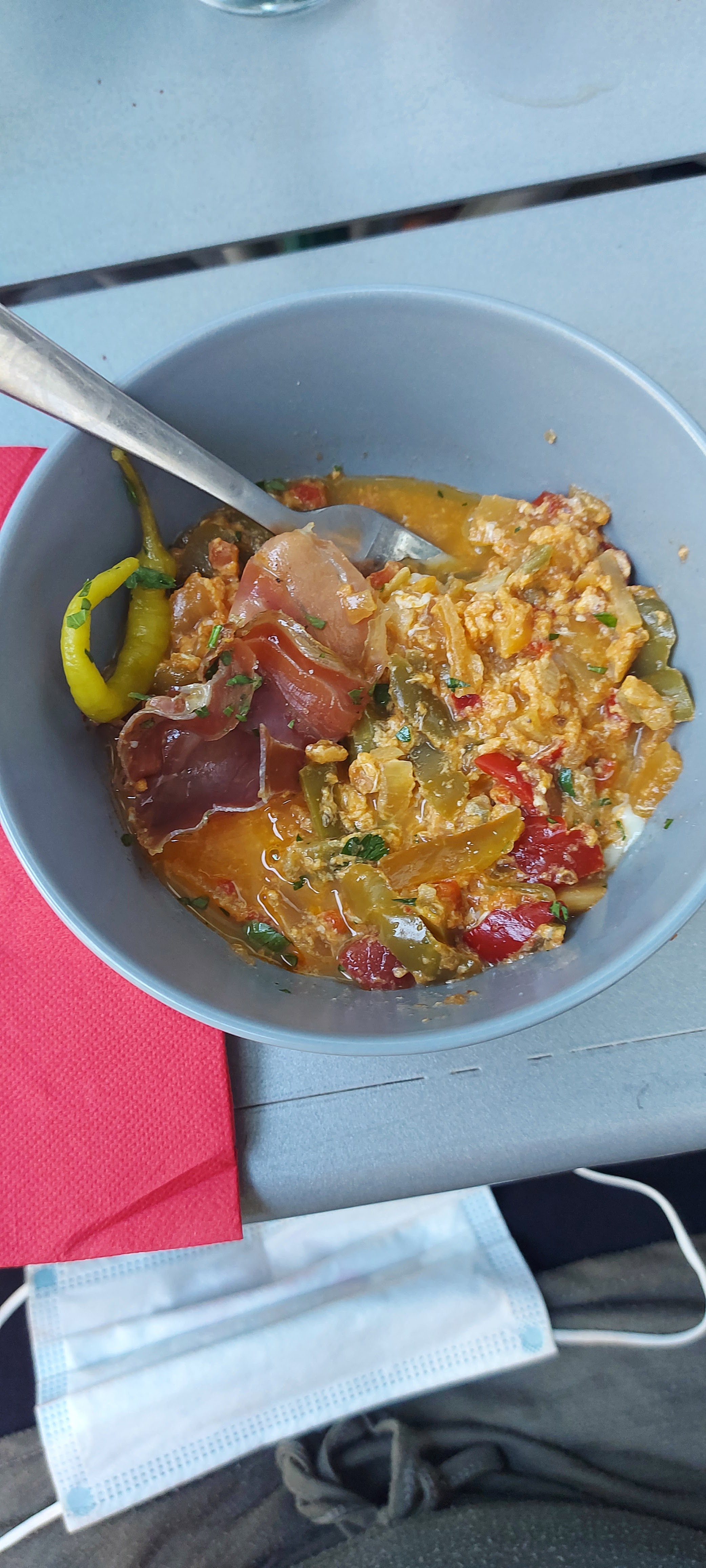 Repas impromptu. Au hazard de notre randonnée, nous avons decouvert cet endroit. Très bons produits.