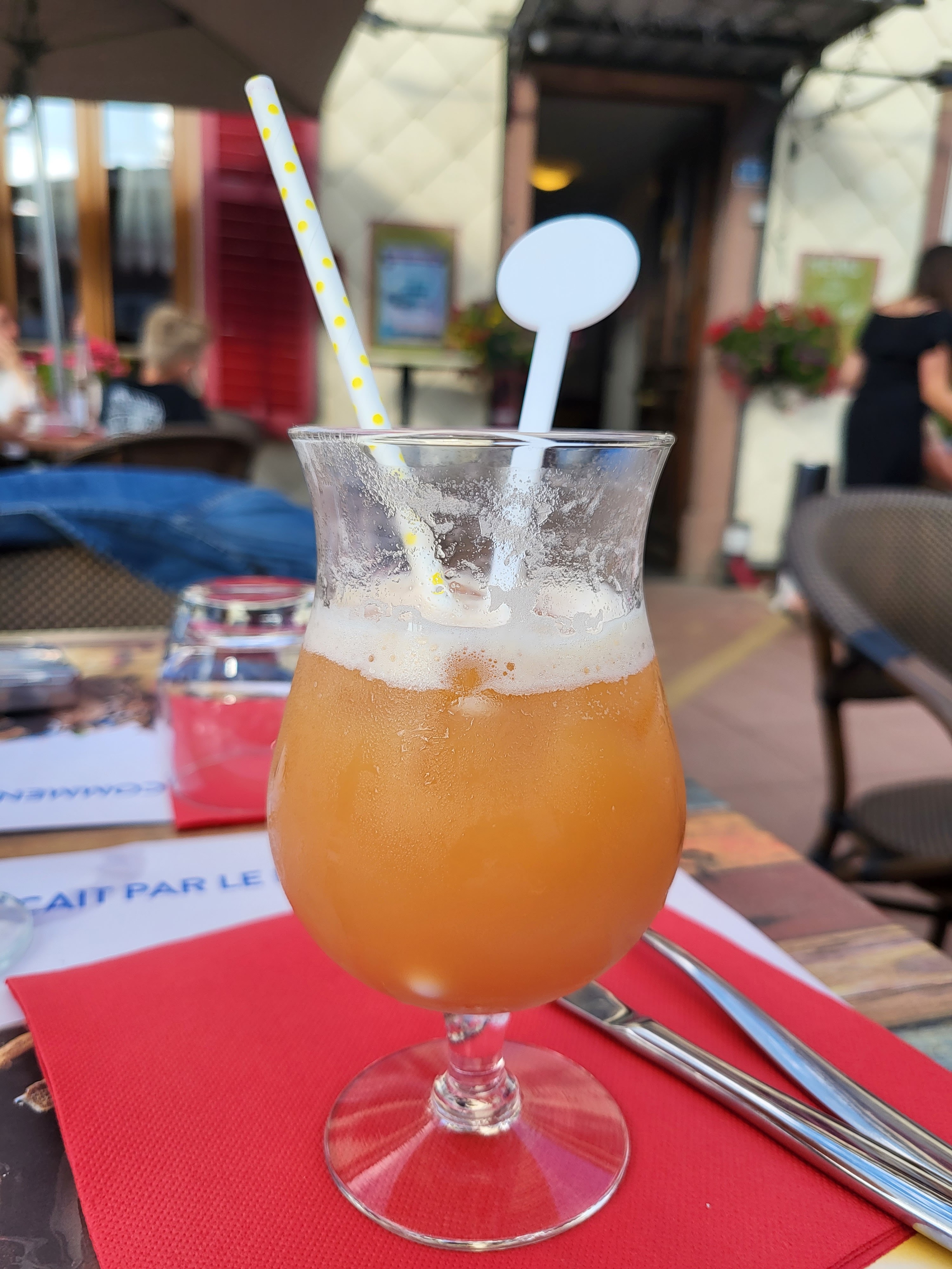 On était assis en terrasse juste à côté de l'extraction d'air de la cuisine on avait toutes les odeurs. Ils n'ont pas voulu nous changer de place malgré des tables libres. 30min d'attente pour commander 30 pour avoir l'apéritif. Ils avaient oublié un verre qu'il a fallu réclamer et reçu en même temps que les plats très loin d'être fameux. La terrasse était quand même sympa.