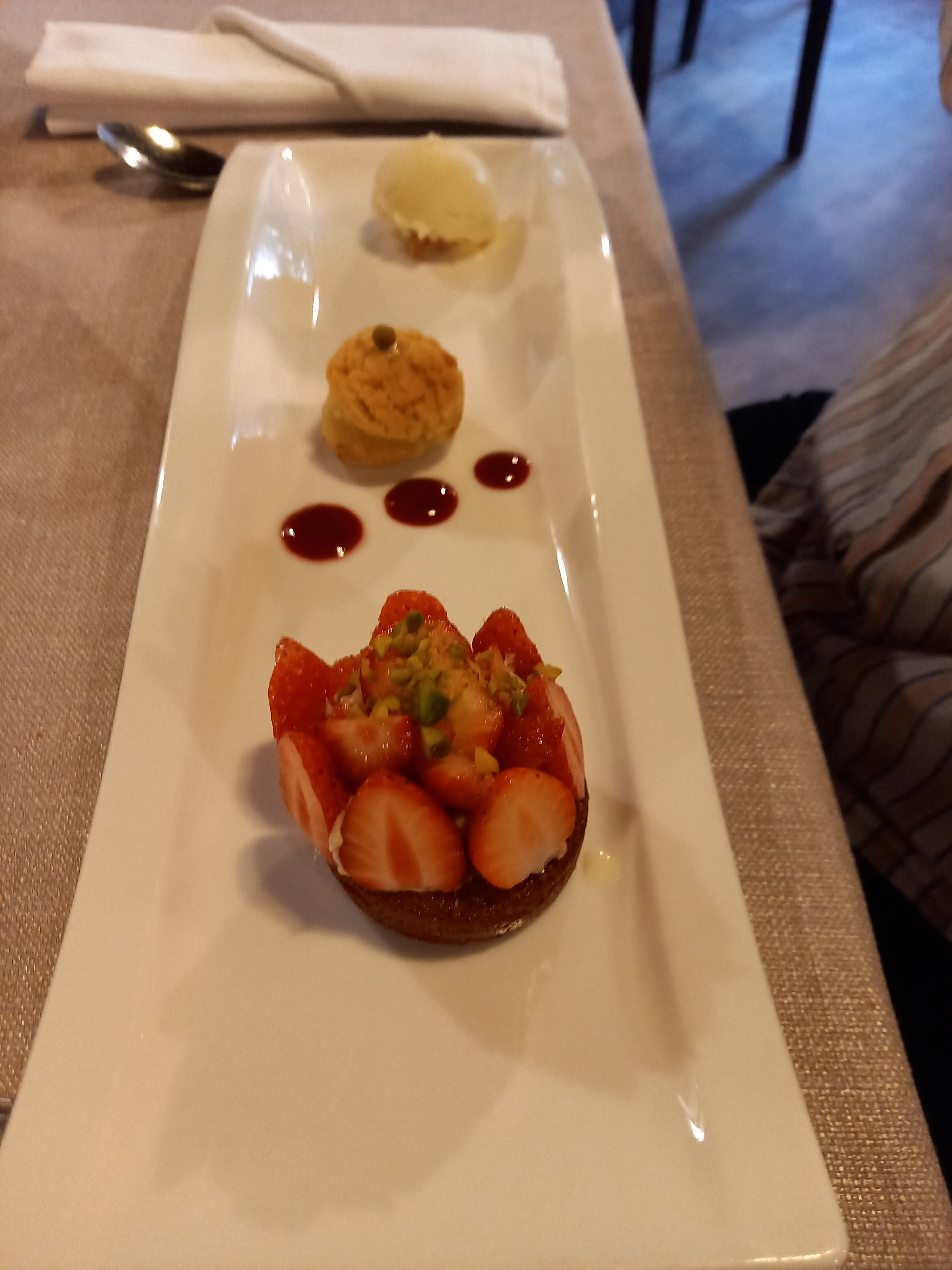 Très bonne cuisine, belle découverte avec le menu trilogie qui donne envie de revenir mais sans enfant car légère impression qu'ils dérangent