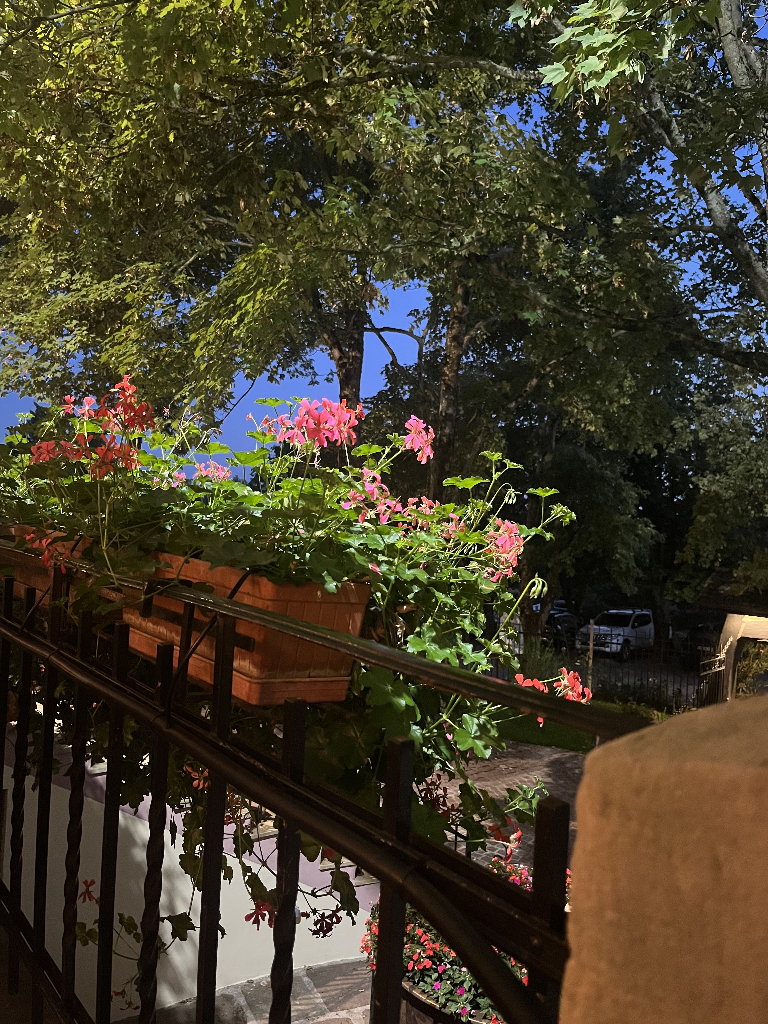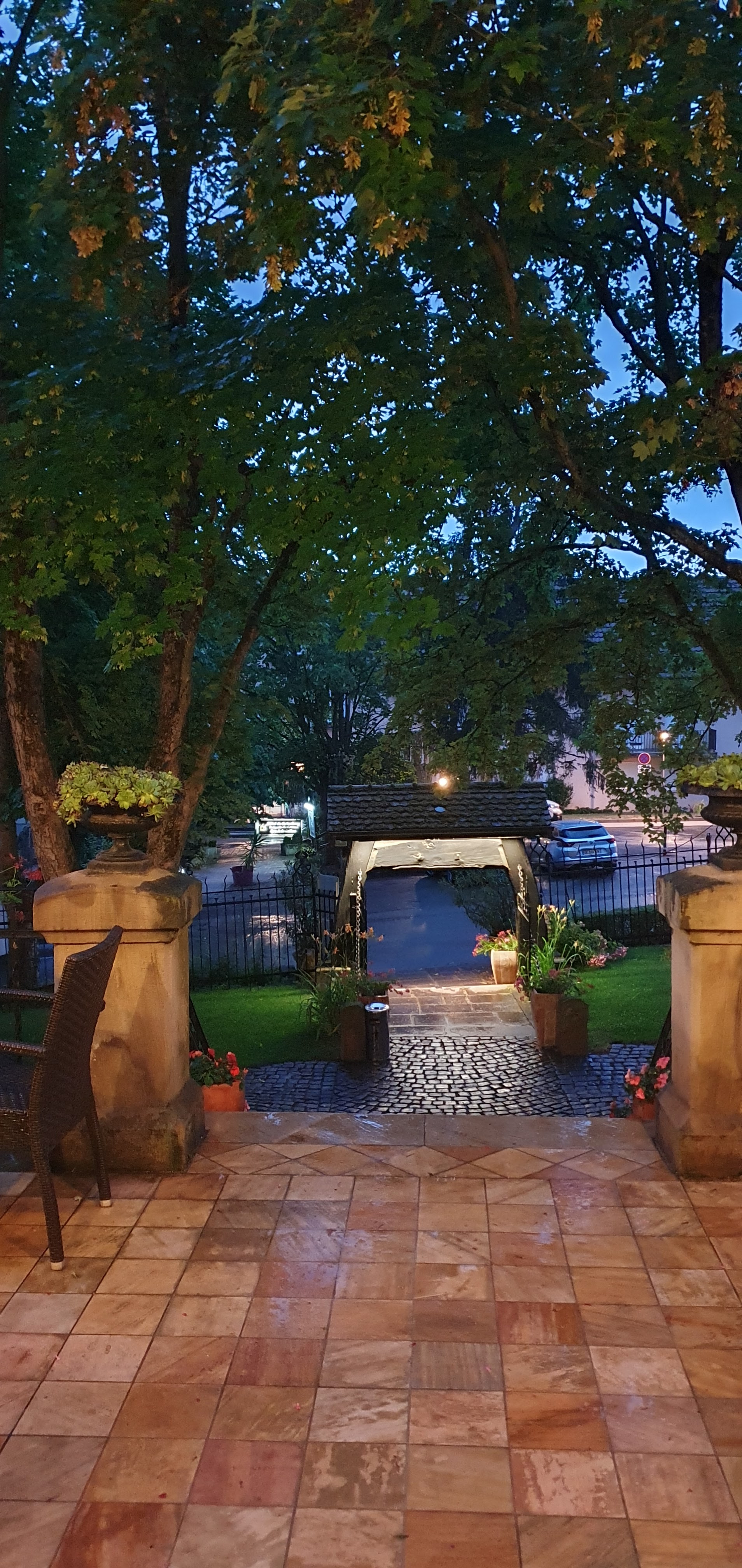 Léger pour les petites faim et parfait pour les adeptes de sucré salé (foie gras et salade paysanne), assez raffiné, le personnel a été très agréable à mon sens (la dame blonde très humaine la dame typée asiatique très souriante et le monsieur d’un certain âge à vous sortir des phrases qui vous font sourire malgré vous, très sympathique) irish café bien servi qui tient longtemps, le cadre est joli difficile d’accès éventuellement si on ne connait pas, mais après on s’en souvient. N’est pas compatible avec tout les budgets mais cela fait des beaux souvenirs si l’on a tenté l’expérience. La terrasse surélevée donne sur l’escalier fleuri, des arabesques d’arbres, et des fers forgés ce début septembre, et l’intérieur allie le côté traditionnel souvenirs du passé avec sanitaires modernes. L’arche d’entrée fait un peu passage vers l’au delà et la bâtisse semble protégée car un élément de décors surplombe la porte.