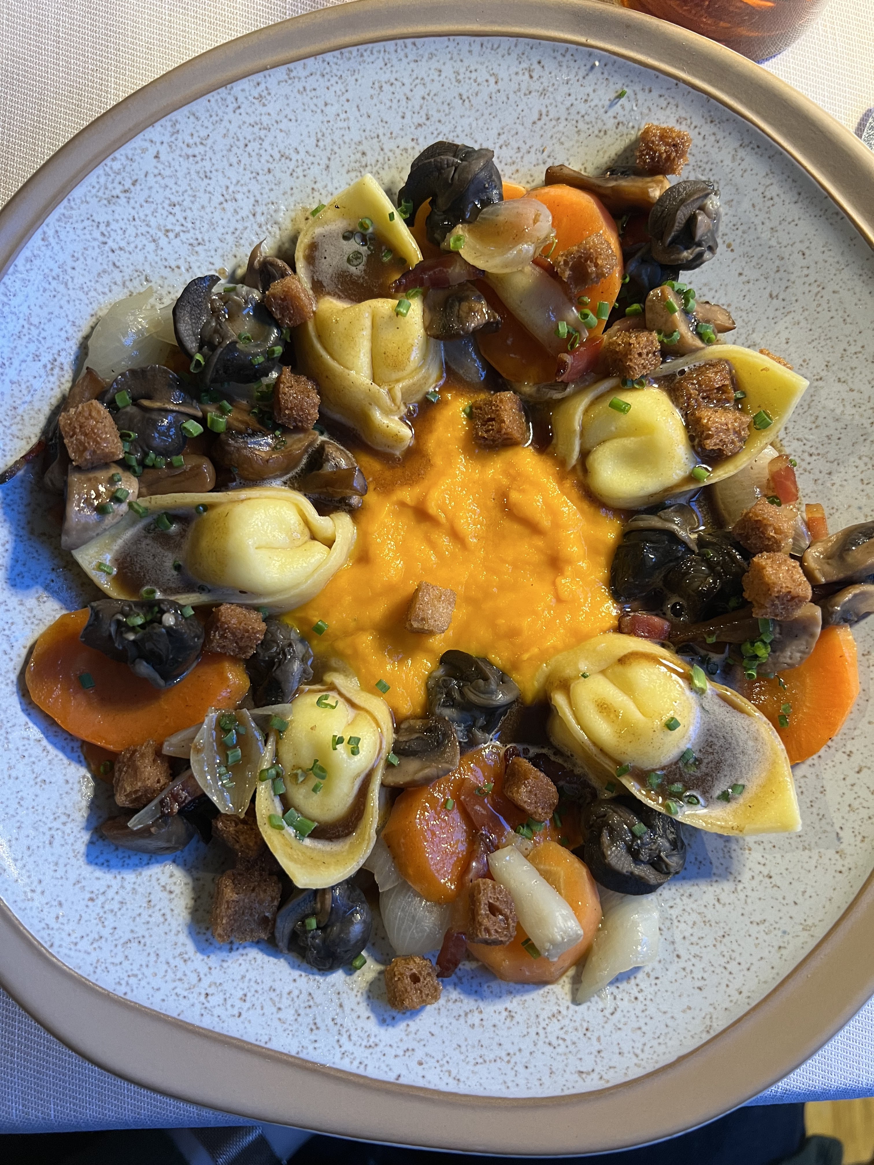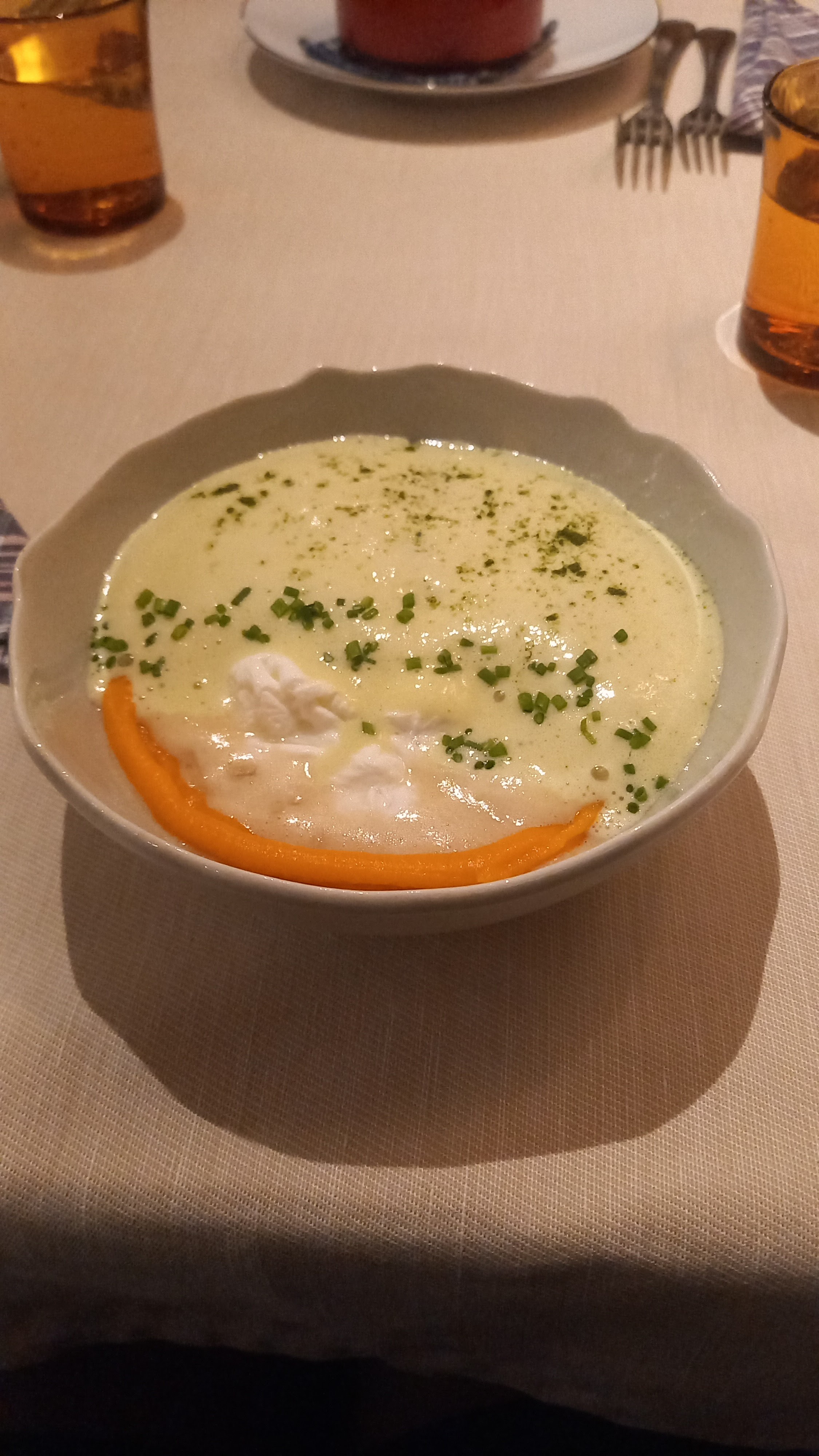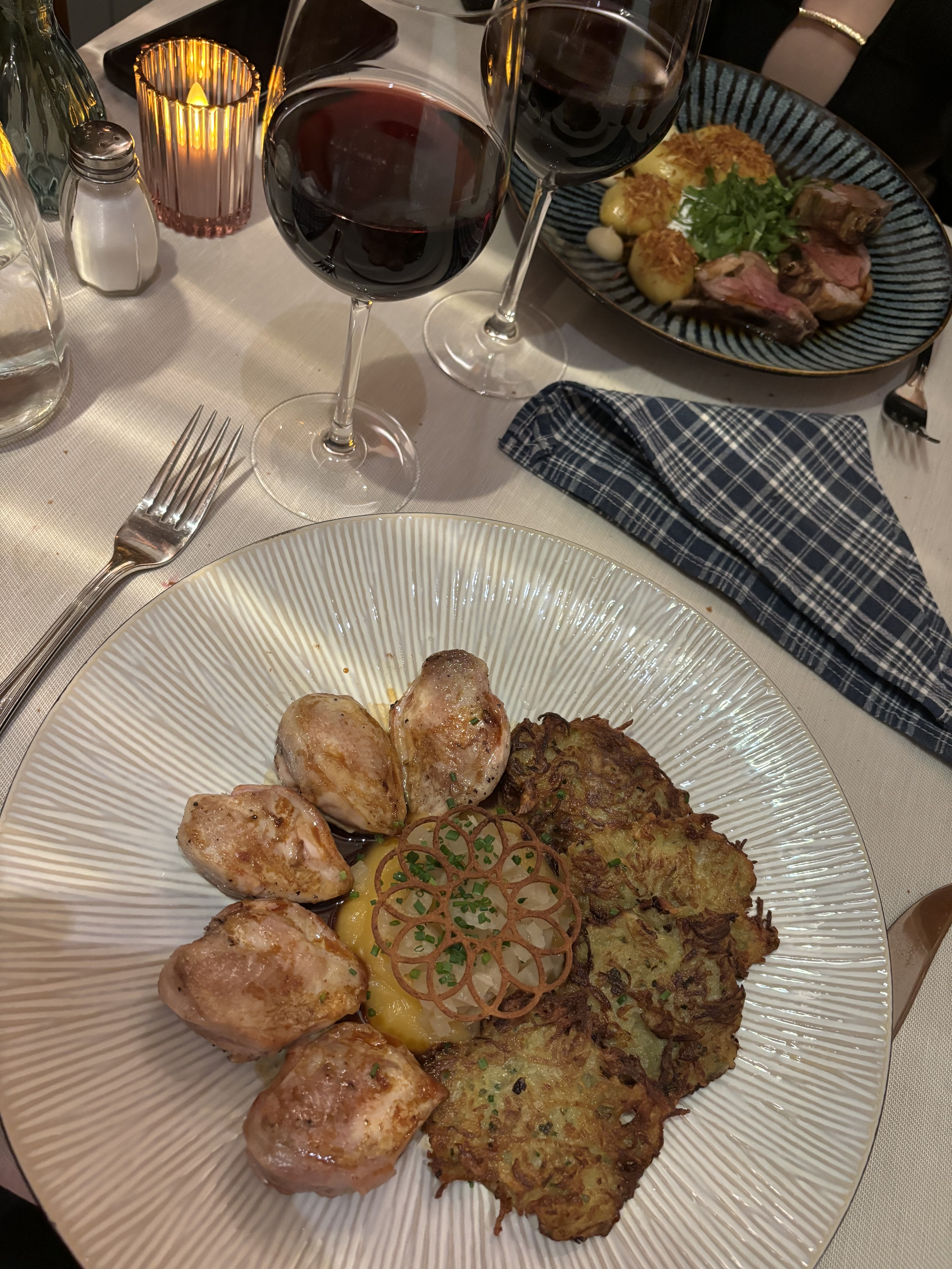 Incroyable œuf poché au céleri - je suis incapable de décrire correctement les merveilleuses saveurs que j'ai goûtées avec des mots, sauf pour dire que ma fille de 12 ans a englouti le plat en une minute ! Nous n’avons certainement pas beaucoup parlé pendant que nous dégustions le plat, sauf pour dire à quel point nous l’aimions. Le canard et le poisson accompagnés de choucroute et de gnocchis maison étaient également excellents. Je recommande vivement ce restaurant « simple » et terre-à-terre.