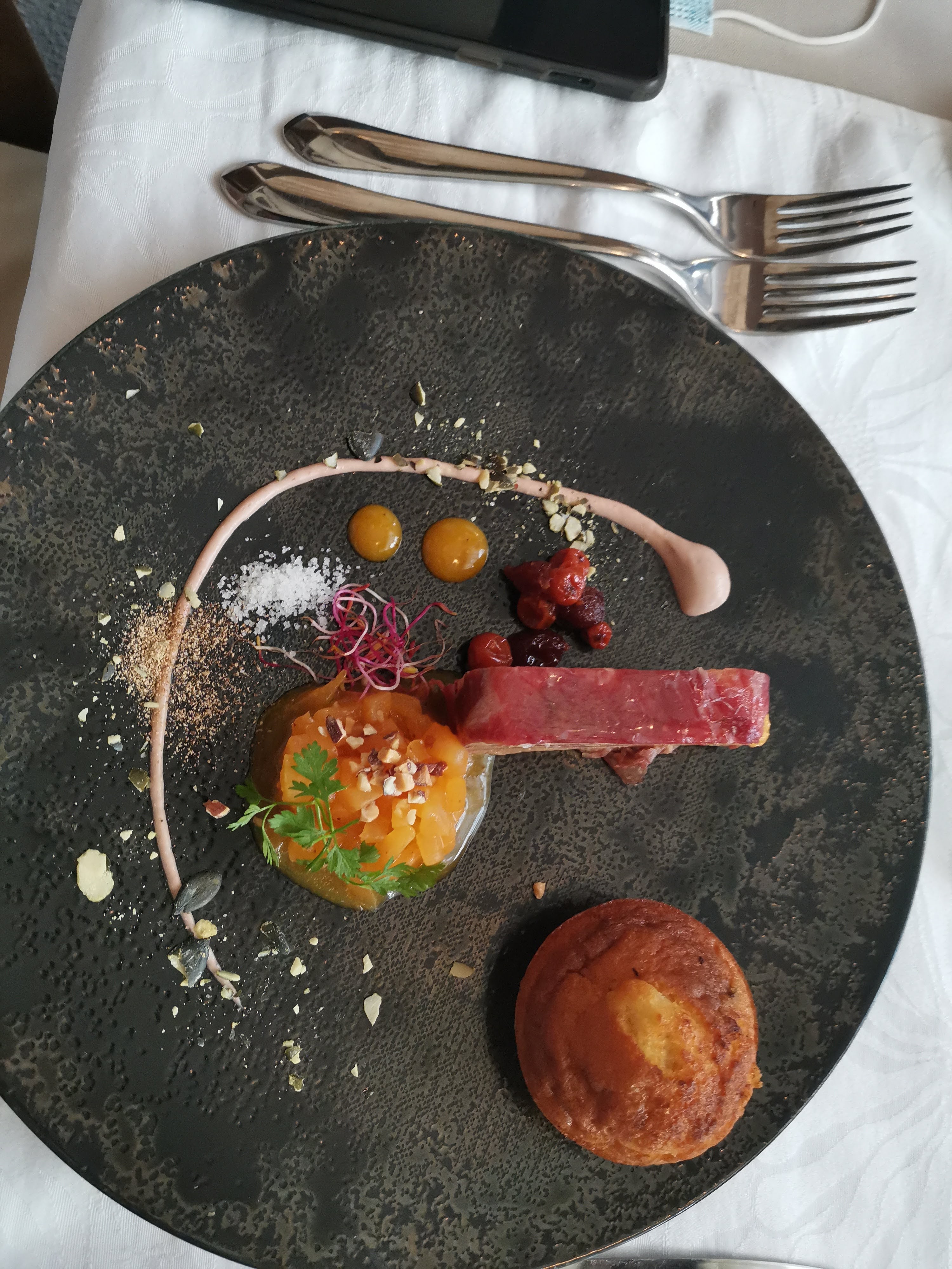 Repas excellent. Des assiettes savamment dressées Le service impeccable et attentionné