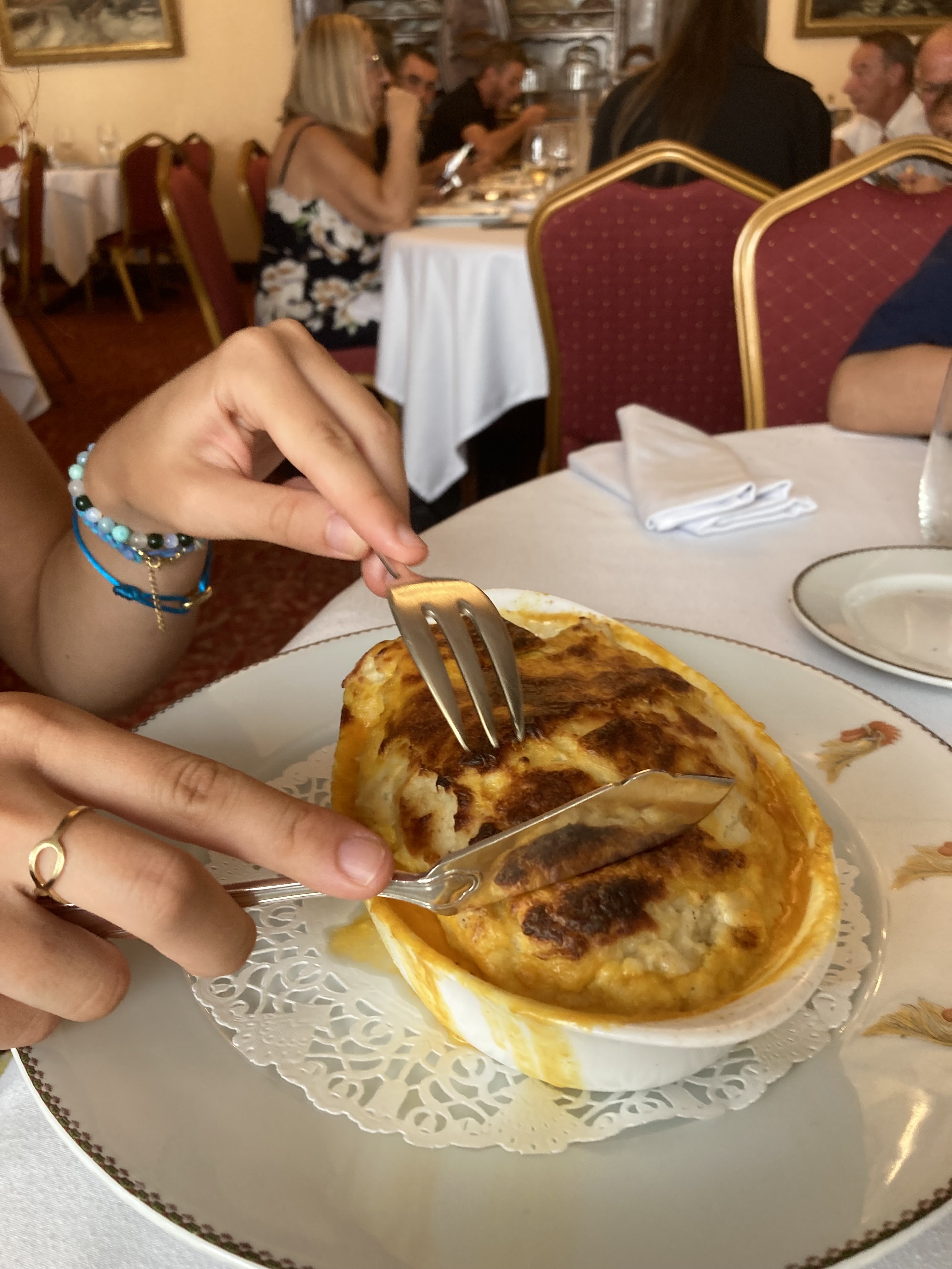 Très vieillot,très cher.la poularde était sèche,rien de raffiné, très déçue. On y retournera pas.nous n’avons pas eu les toasts pour le foie gras.68 euros un repas,on s’attends à autre chose.1 heure d’attente pour avoir le dessert.je me demande encore comment ils peuvent avoir des clients.trop cher ,patronne pas sympathique. Jeune serveuse très bien.c’est une arnaque ce restaurant.