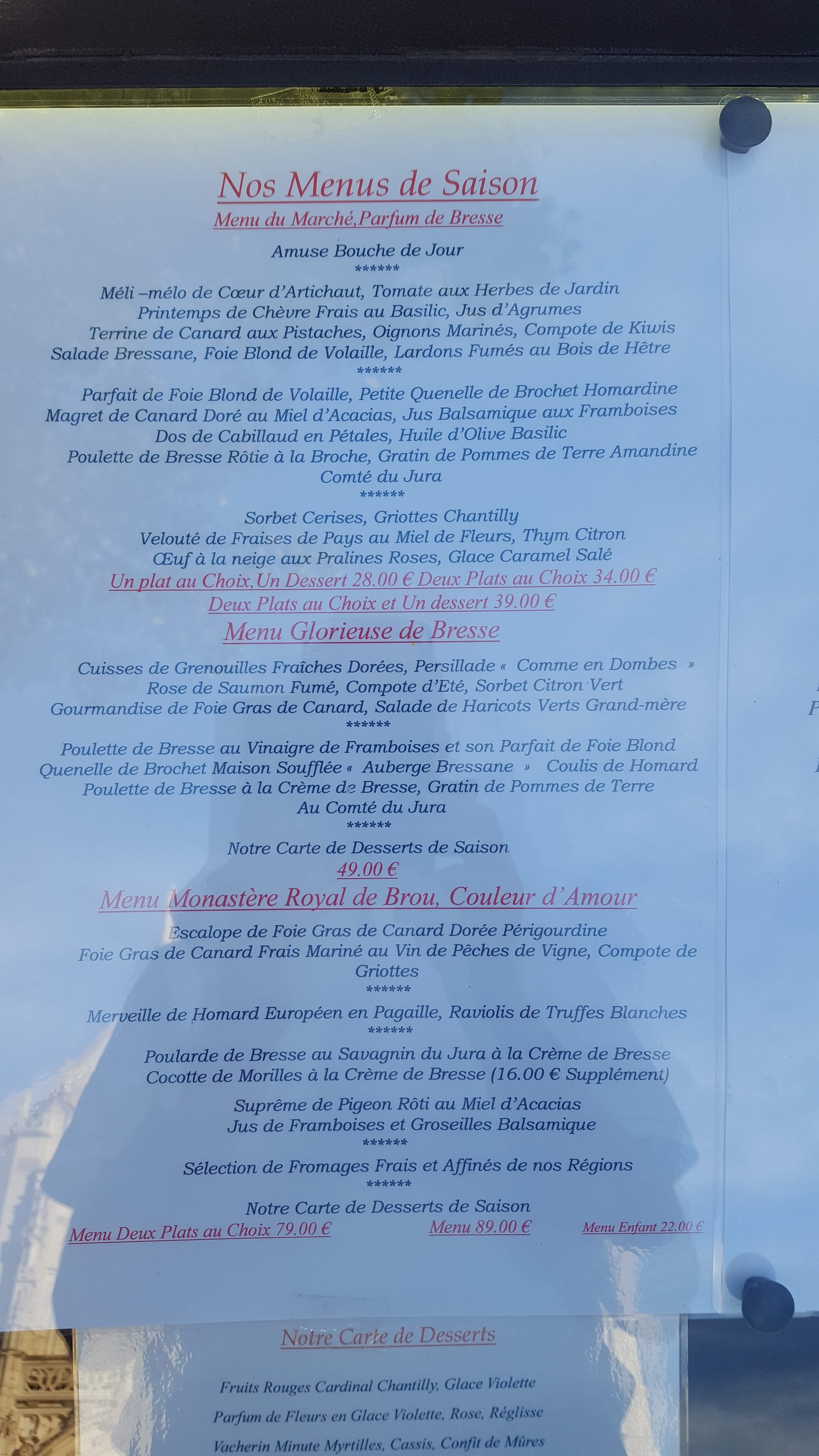 Une heureuse expérience en face du sublime monastère de Brou ! L'Auberge Bressane est une belle adresse : cadre chaleureux et raffiné , service impeccable, cuisine de haute qualité et pour ne rien gâcher un rapport qualité-prix assez exceptionnel. Ne changez rien !