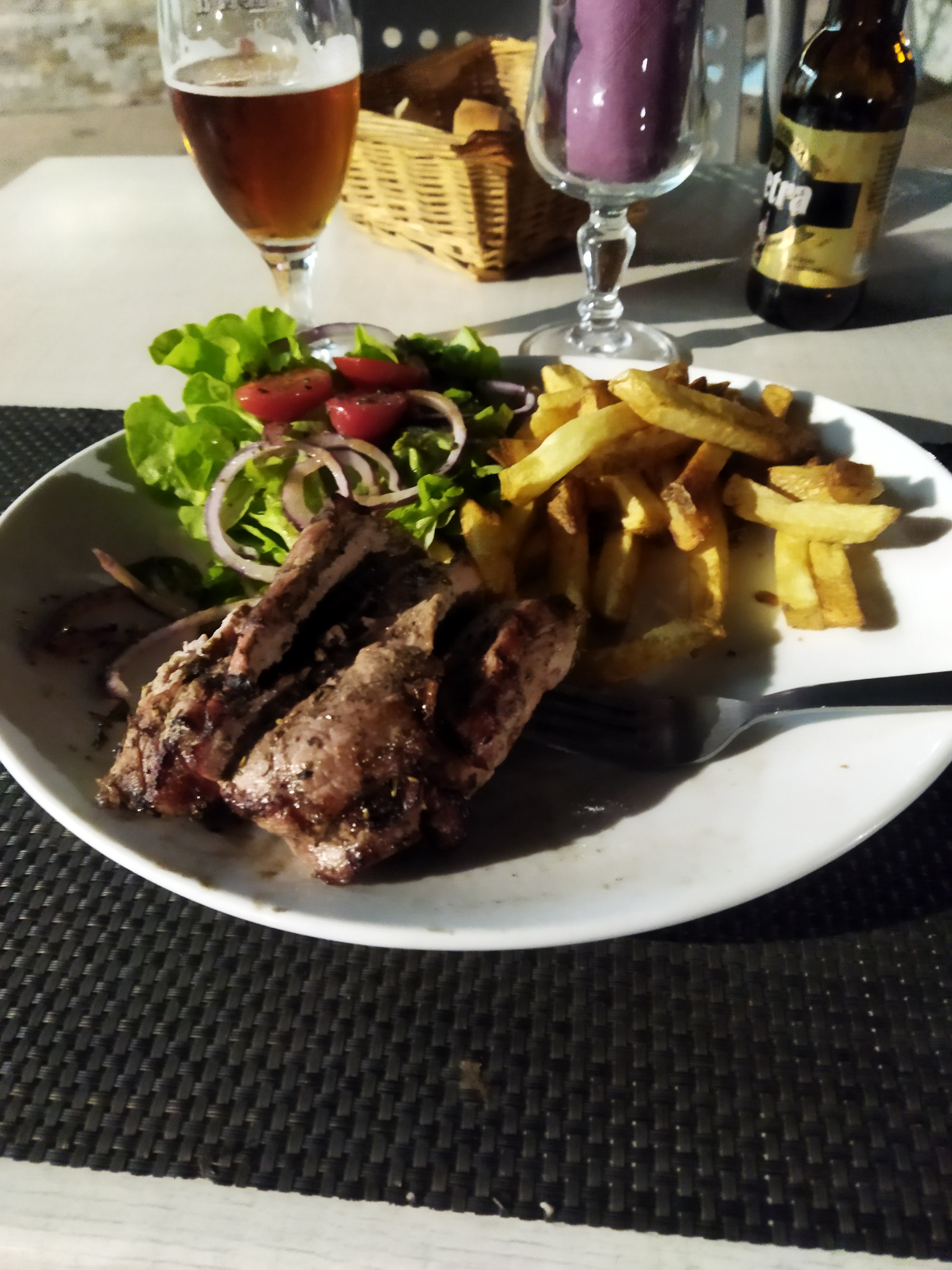 J ai adoré les viande sont cuites au feux de bois , les frites sont maison et très bonne . Et le prix très raisonnable 18€ la viande de porc avec ses frites ( l assiette est généreuse) J y suis allé plusieurs fois et je n ai mangé que les viandes et elles sont délicieuses . Et les propriétés sont très accueillant.