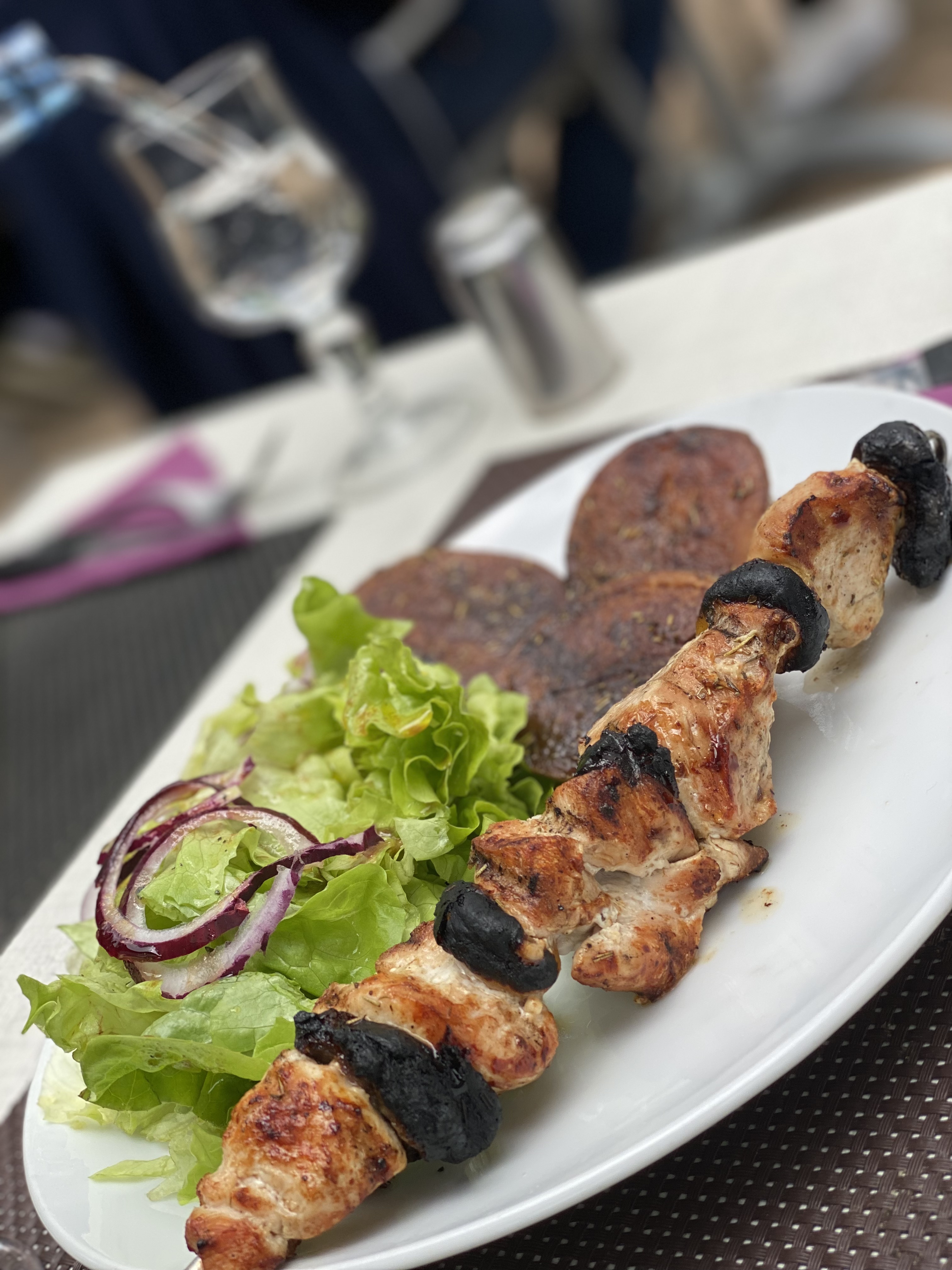 Très bon accueil, le service c'est fait sur une jolie petite terrasse, le repas était très bon (brochette de poulet accompagnée de frites maison et d'une petite salade avec une très bonne vinaigrette) Prix correct Bémol sur les toilettes celui des femmes en panne (je fais la remarque surtout après avoir vu que cela était déjà mentionné dans d'autres commentaires donc ça ne datait pas que de ce soir), pas de savon, WC pas très propre