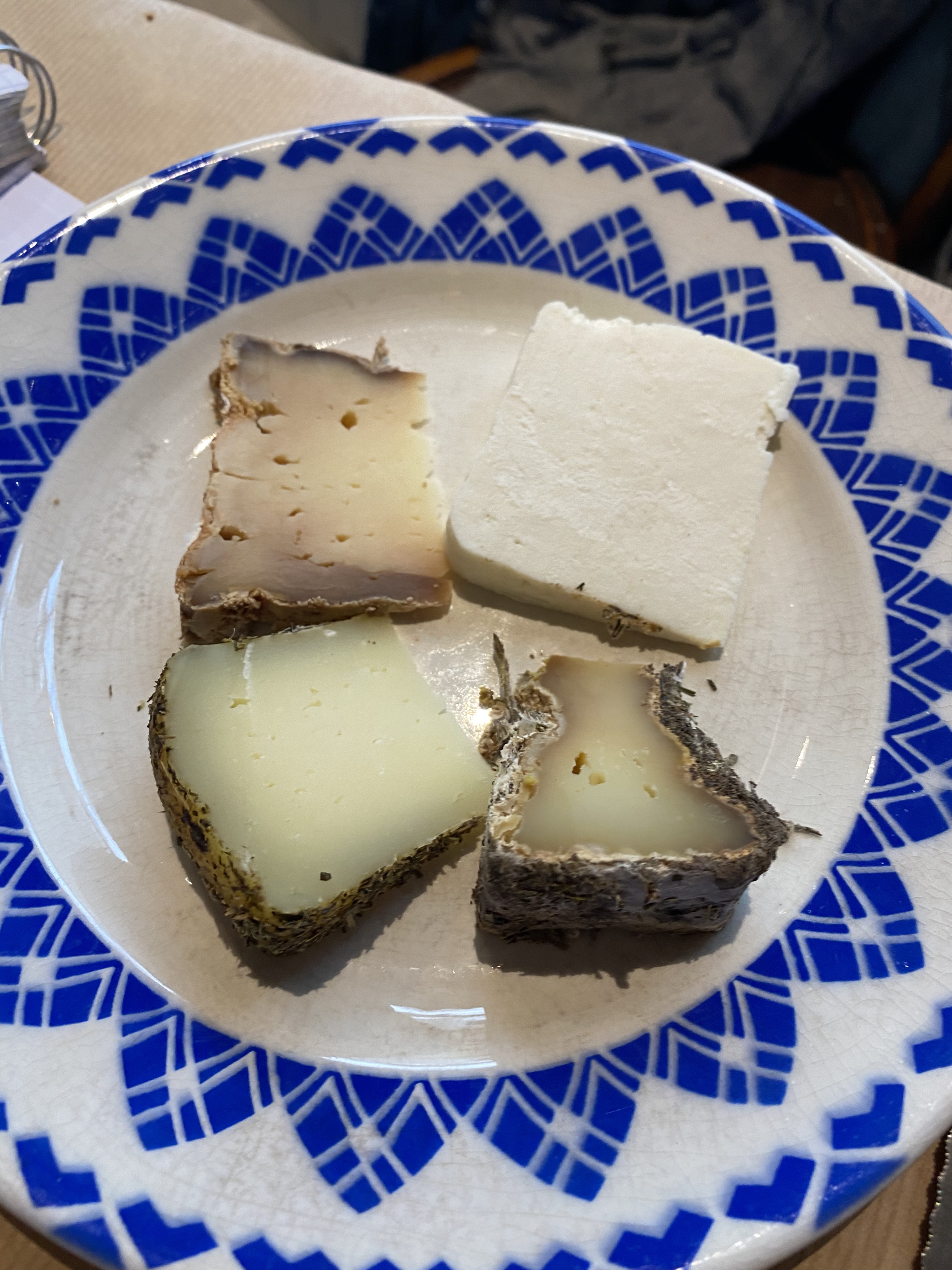 Un excellent déjeuner composé de poisson frais et d'un délicieux faisan rôti, accompagné d'une soupe de poisson maison et d'une belle salade de tomates et de chèvre corisan. En dessert, le flan au caramel était génial.