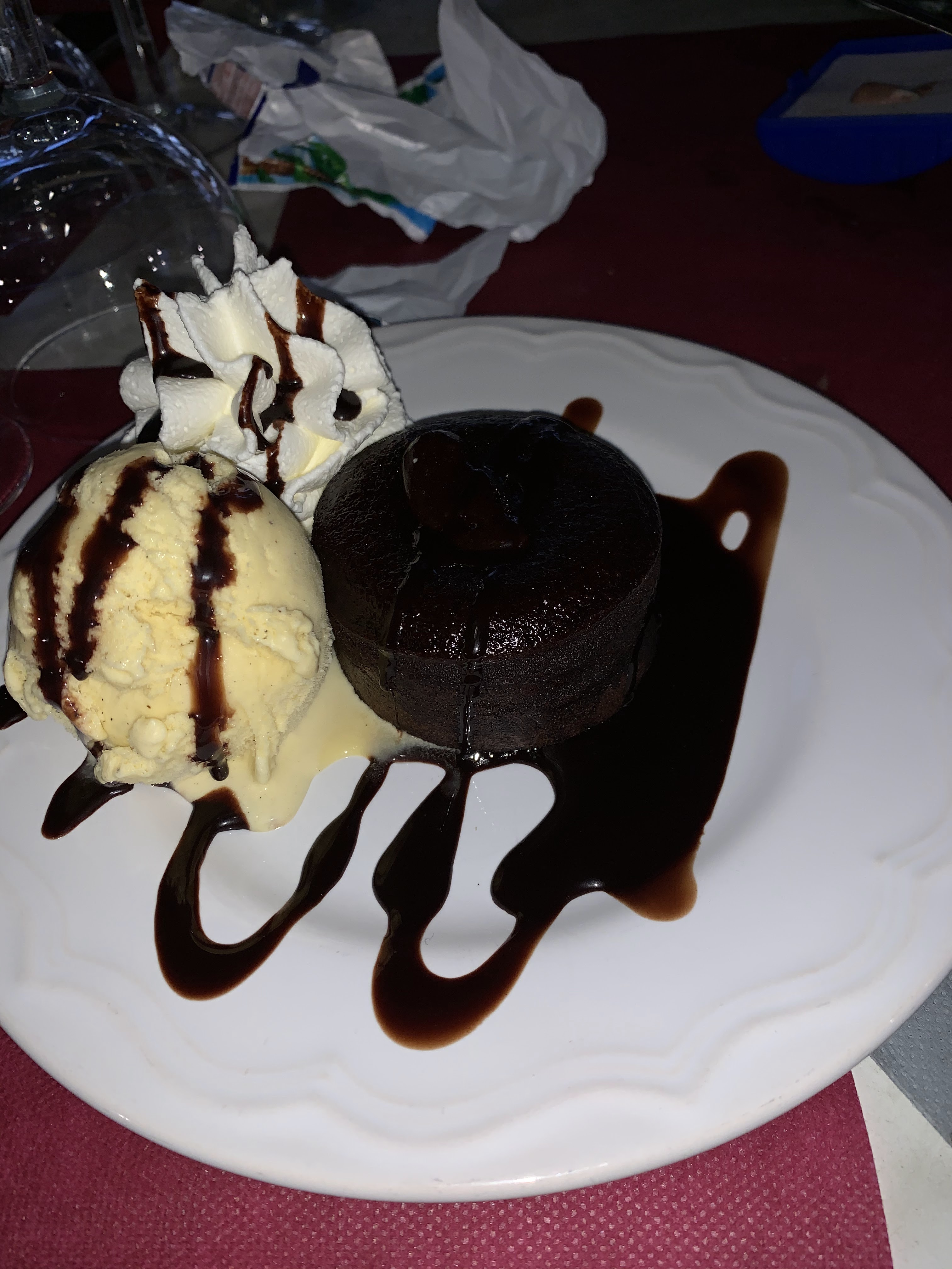 AVOID THIS PLACE! A EVITER! On est arrivé suite aux avis sur Google maps mais grosse déception. Le restaurant fait passer ses plats pour de la nourriture faite maison mais tout est de l'industriel réchauffé. Les entrées étaient à peu près bonnes mais on a du attendre 1h30 avant de recevoir nos plats principaux. Dès que la nourriture arrive vous vous retrouvez attaqués par des dizaines de mouches ce qui rend le repas extrêmement désagréable. En plus de ça, les pâtes aux pesto sont arrivées froides et le veau m'a été décrit par ma copine comme ayant goût de pâté pour chien. Les desserts sont vraiment à éviter, aucun goût, aucune texture.