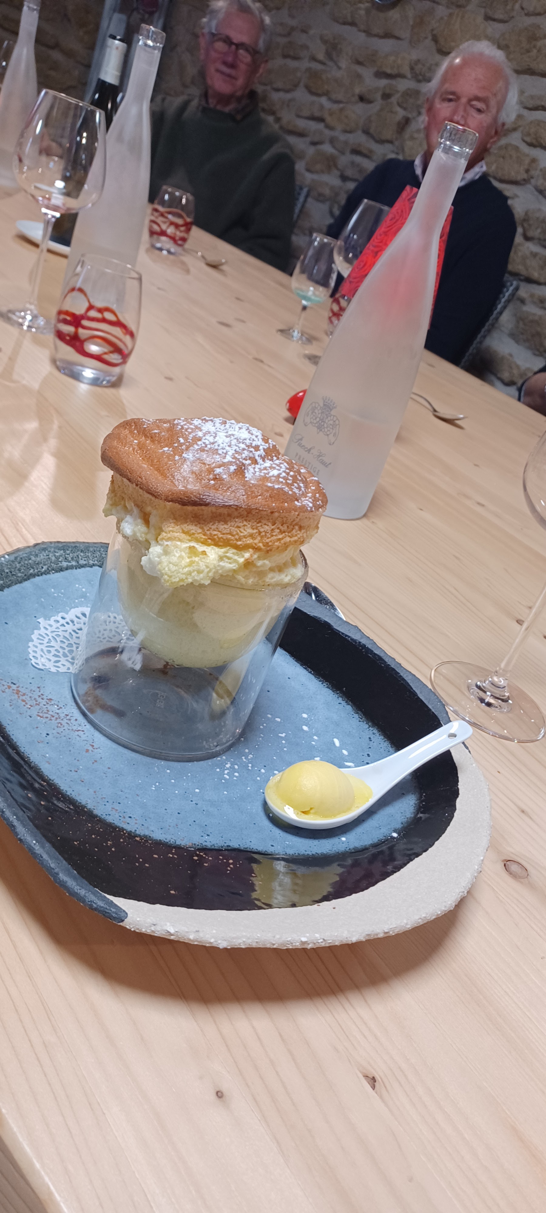 Ce sont des amis qui avaient réservé le déjeuner et n'avons donc pu donner de vive voix nos remarques : Prix excessifs au regard de ce qui est proposé en plats et vins. Service minimaliste sans présentation des plats (la serveuse n'en connaît pas la composition !) Le coup de fusil ! On trouve facilement moins cher et meilleur dans le coin.
