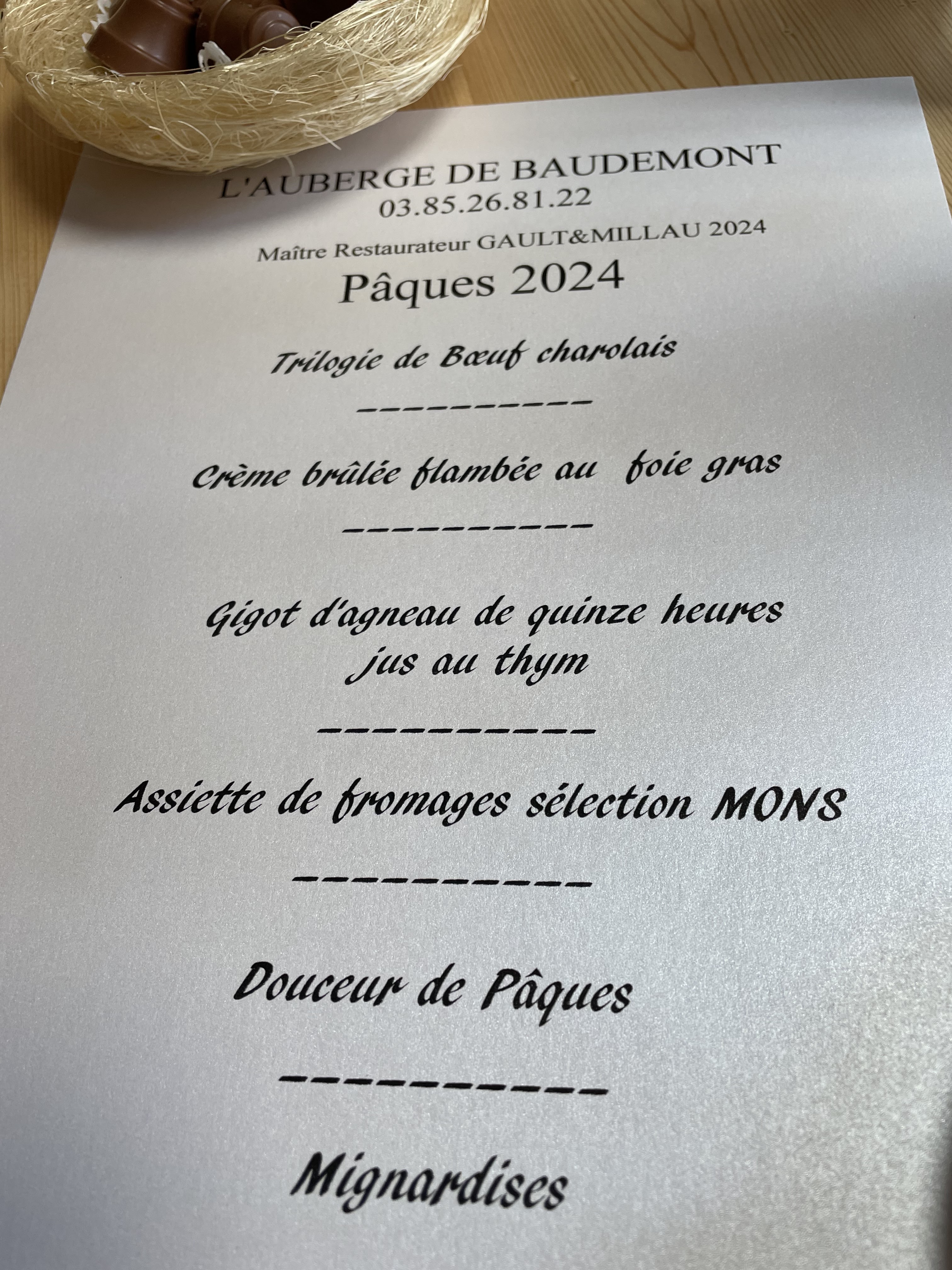 Passage pour le repas de Pâques 🐣 mais déçu du contenu des assiettes, hormis le gigot d’agneau qui était bien. À refaire mais peut être hors menu spécial !