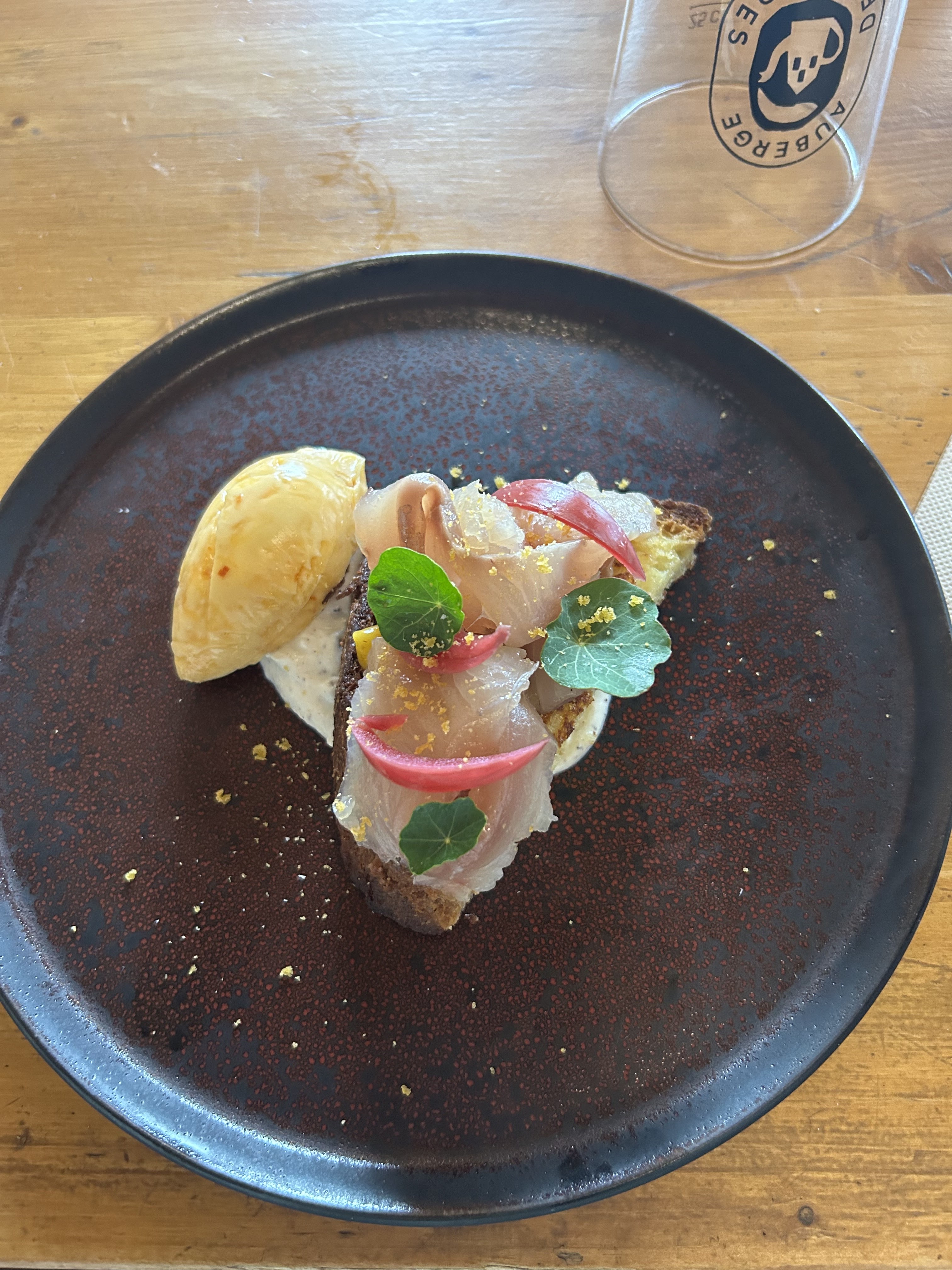 Je ne sais pas par où commencer tellement nous nous sommes régalés. Nous cherchions une auberge pour manger quelque chose de simple et local et alors là !😊 La cuisine paraît simple mais lorsque vous commencez à manger, il se passe énormément de choses. On sent très bien la recherche et le travail derrière ces mets si fins et si bons. Le produit, local bien sûr, est respecté et cuisiné de manière incroyable . La serveuse est à l'image de la cuisine, superbe équipe. Merci pour tout, ne changez rien.