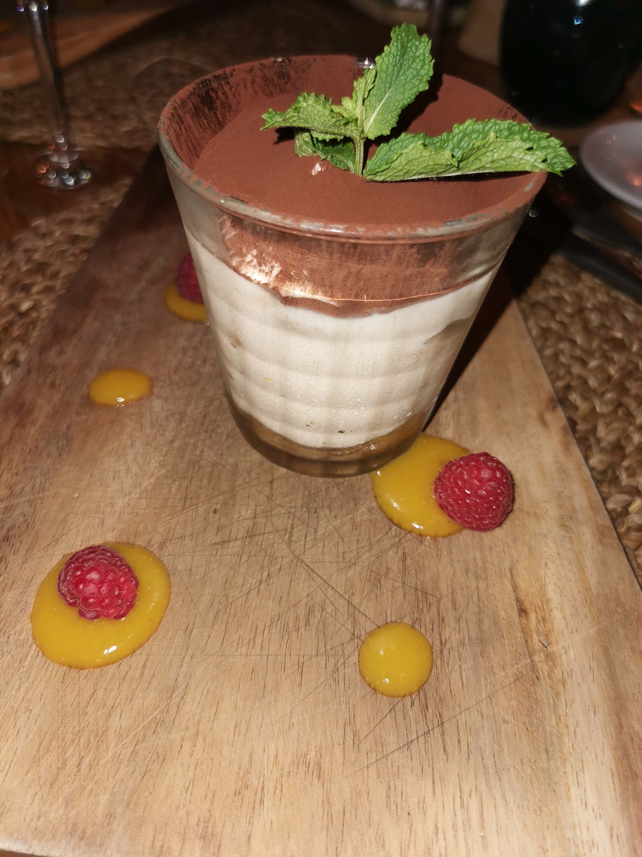 Super présentation des plats cuisine raffinée le patron est super sympa Et la cerise sur le gâteau c'est le folie Missou base de tiramisu avec petite surprise