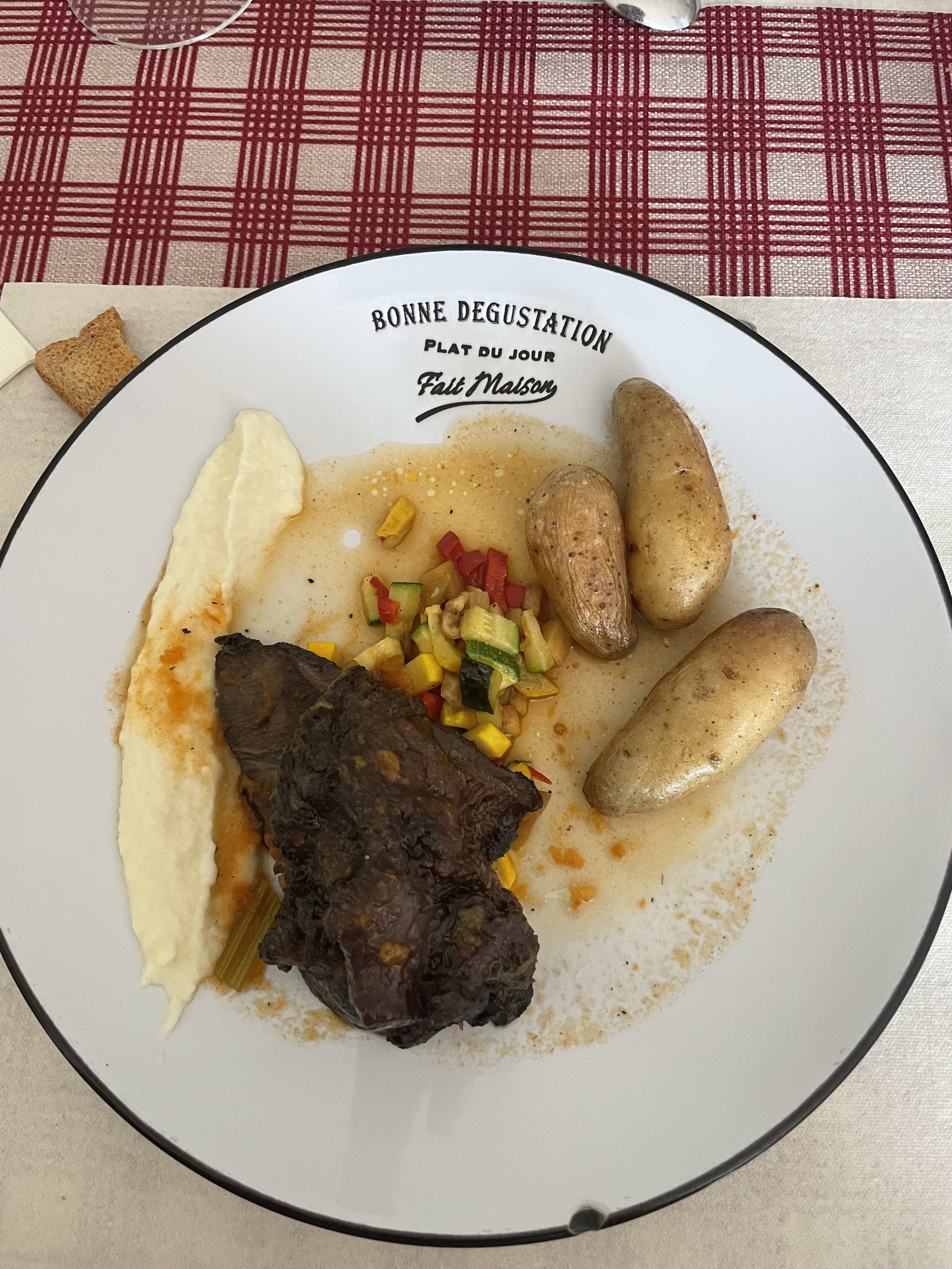 Plat du jour super la serveuse ou patronne debordee pas assez chaud