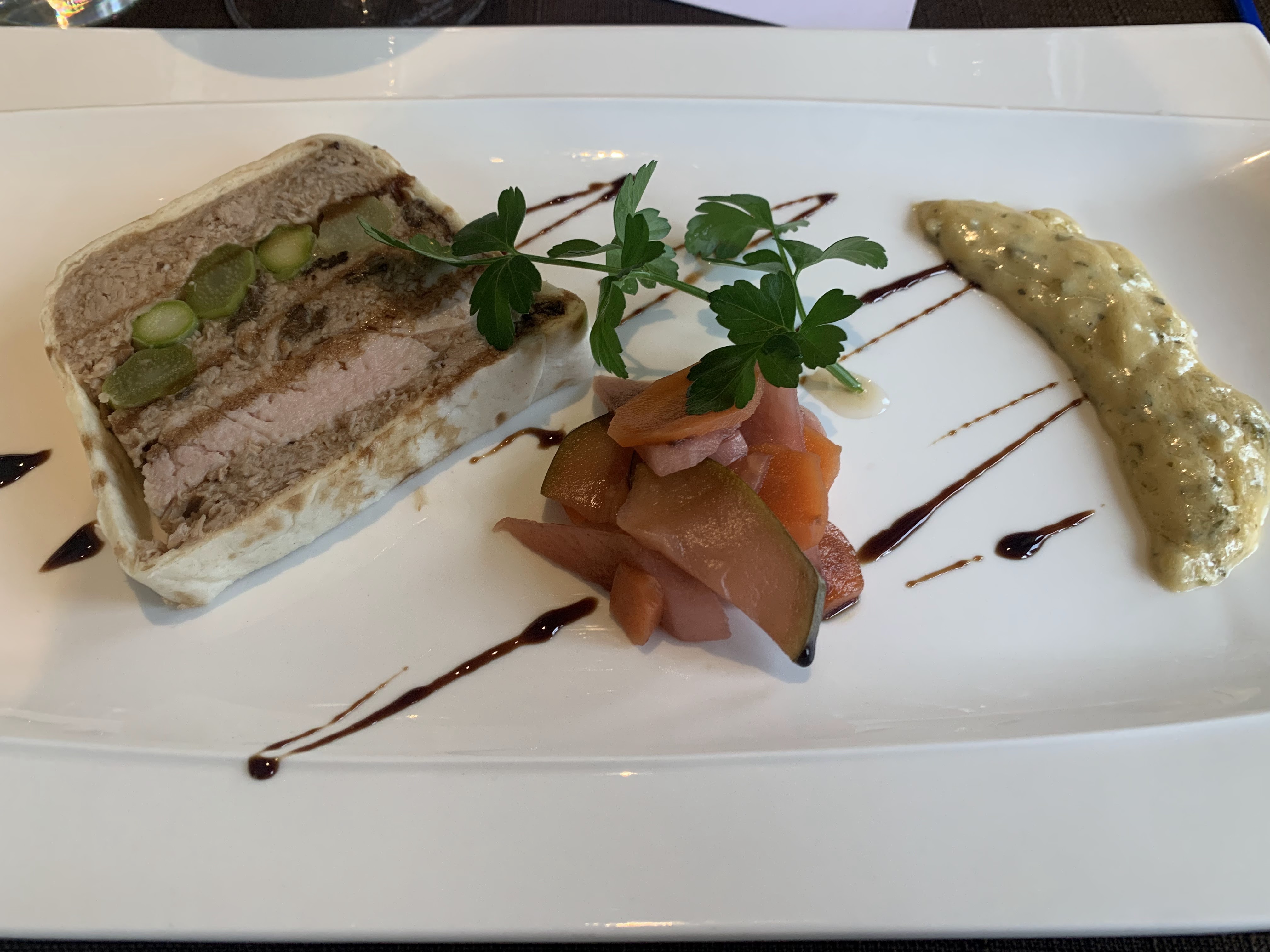 très bon accueil, j'ai trouvé la terrine un peu fade mais l'accompagnement la relève bien malgré tout. Le poisson était excellent et l'épeautre très bien cuit. Les trois fromage aussi.J'ai bien aimé le dessert le croquant avec la pomme. Coté vin nous avons accompagné tout ça d'un rosé du bugey qui s'est avéré un peu léger mais bon quant même.J'ai apprécié les petites gourmandises avec le kir et avec le café.La serveuse a été très sympathique ainsi que sa petite main. Je recommande