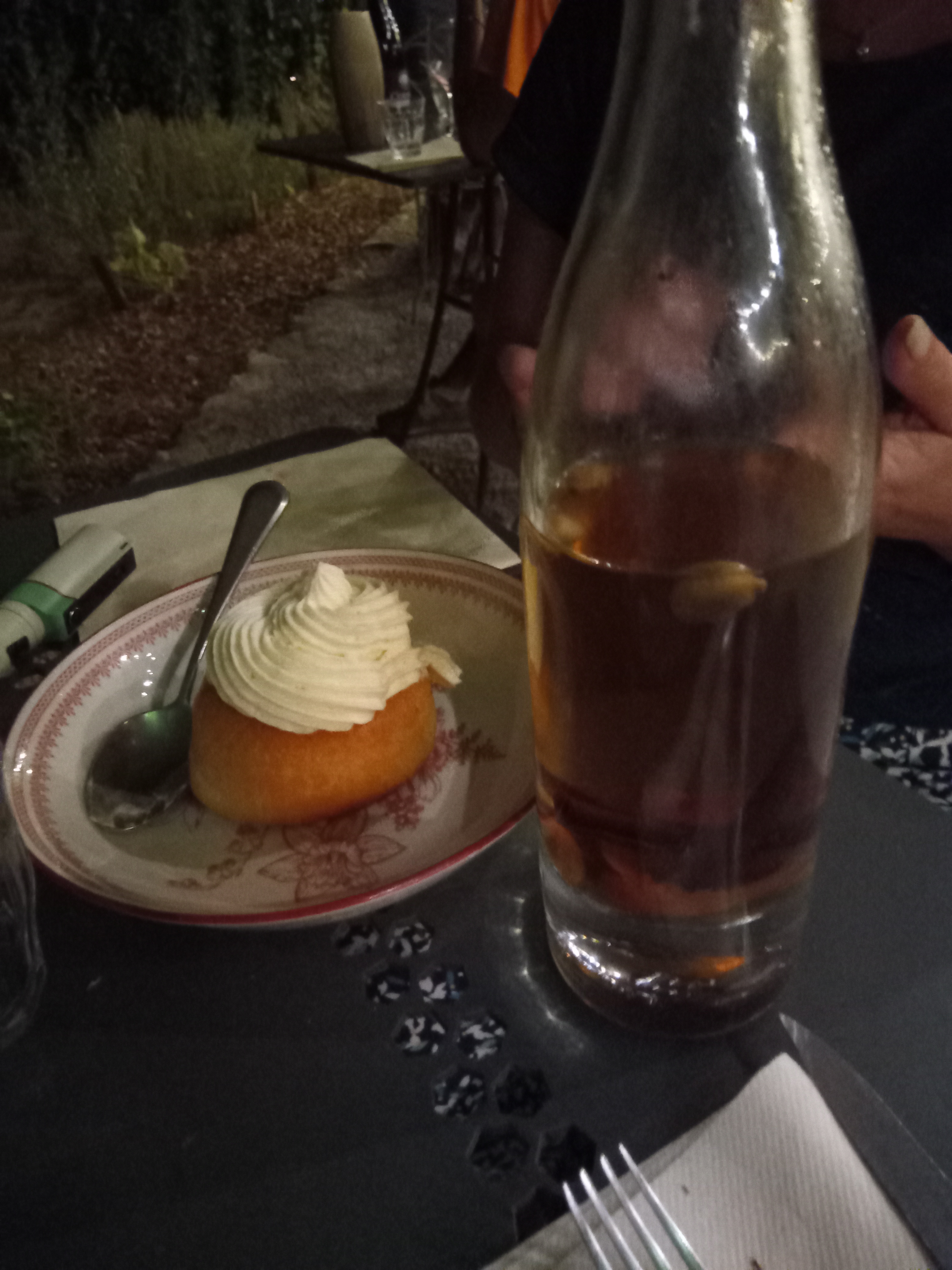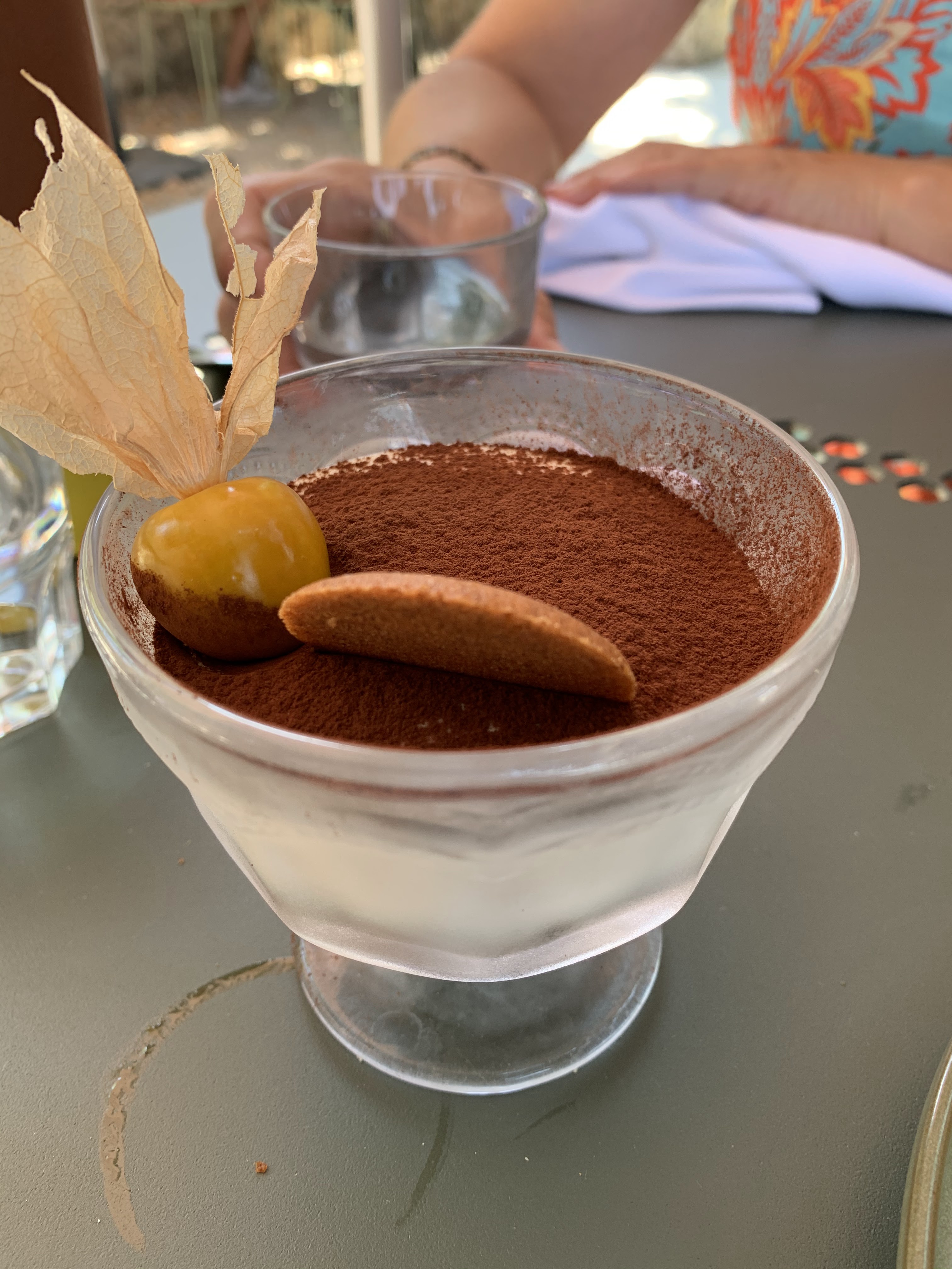 Un beau dimanche pour un déjeuner gourmand en famille... sous les arbres (et les parasols)...un service souriant et attentionné, on a aimé les cocktails maison à consommer avec modération ! Délicieuse tarte myrtilles. On reviendra en soirée, vue et site d'exception. Merci
