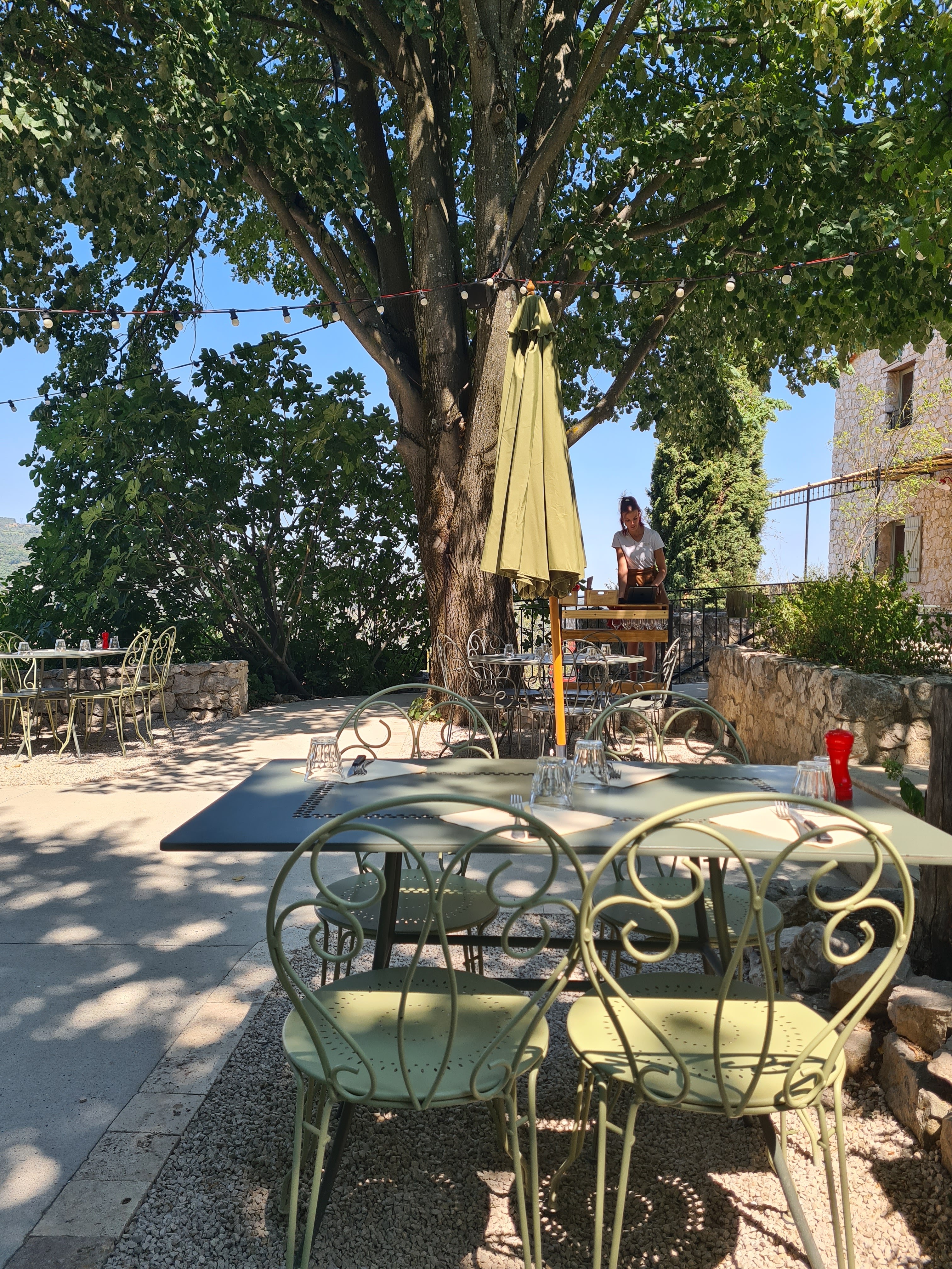 Cadre magnifique, terrasse ombragée et très agréable. Serveuse souriante et accueillante, on s'est régalés et avons passé une très belle soirée !
