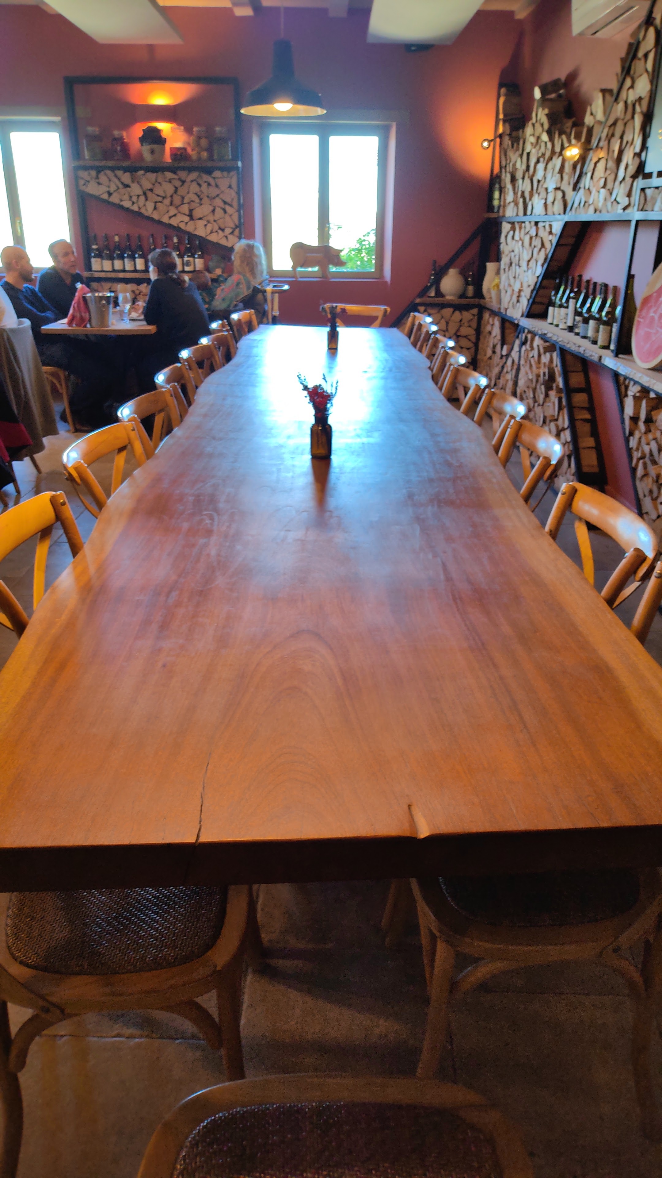 Personnel très accueillant, vue sympa de la mezzanine sur la cuisine avec cuisson au feu de cheminée, un vrai régal pour les viandards. Je conseille pour les amateurs de vins et viandes au feu de bois. Le pâté en croûte d'Aurelien est un délice. Pour ceux qui veulent des privatisations sont possibles.