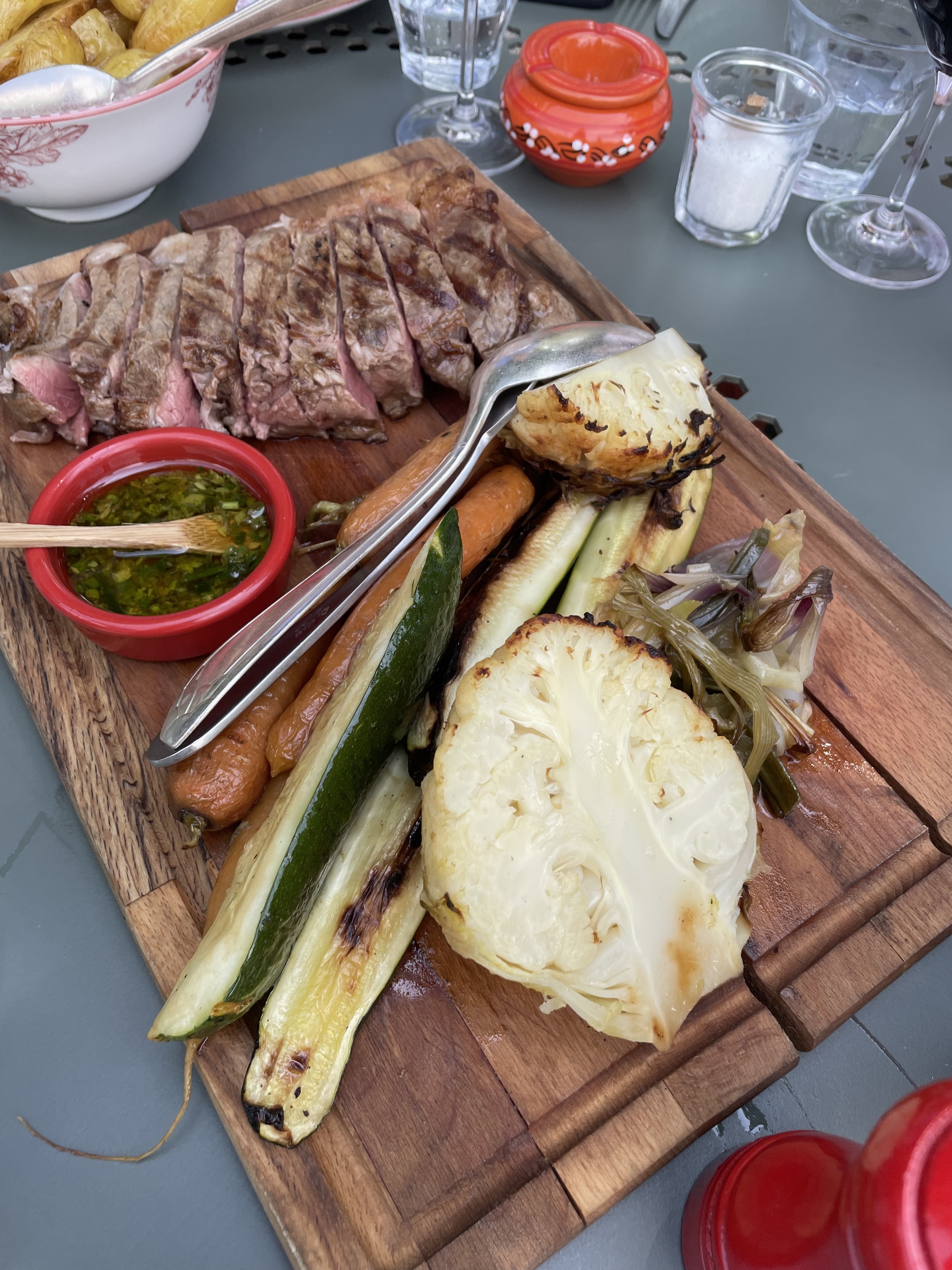 Ambiance et accueil chaleureux. Grillades au feu de bois parfaites. Légumes de saison grillés comme il faut même pour celui qui doute qu'on peut se régaler en mangeant des légumes Une carte des vins tentantes et bien fournie Bref, tout pour passer un délicieux moment
